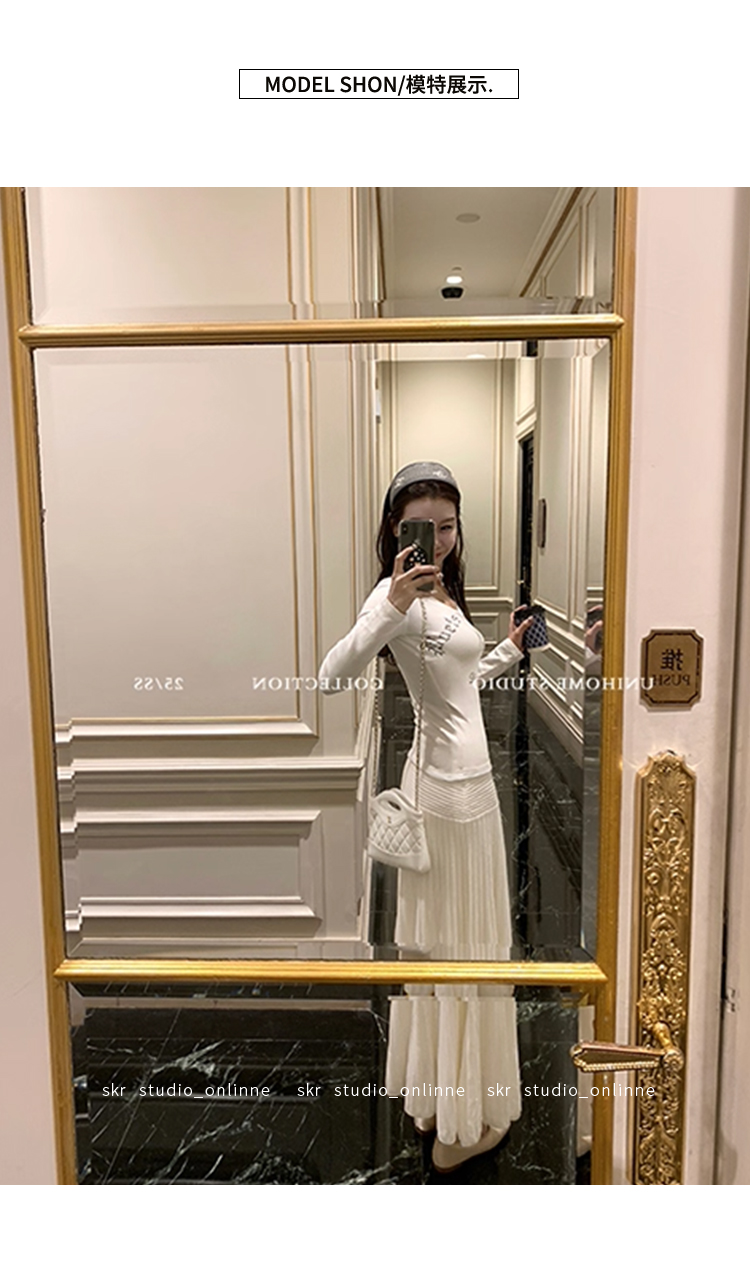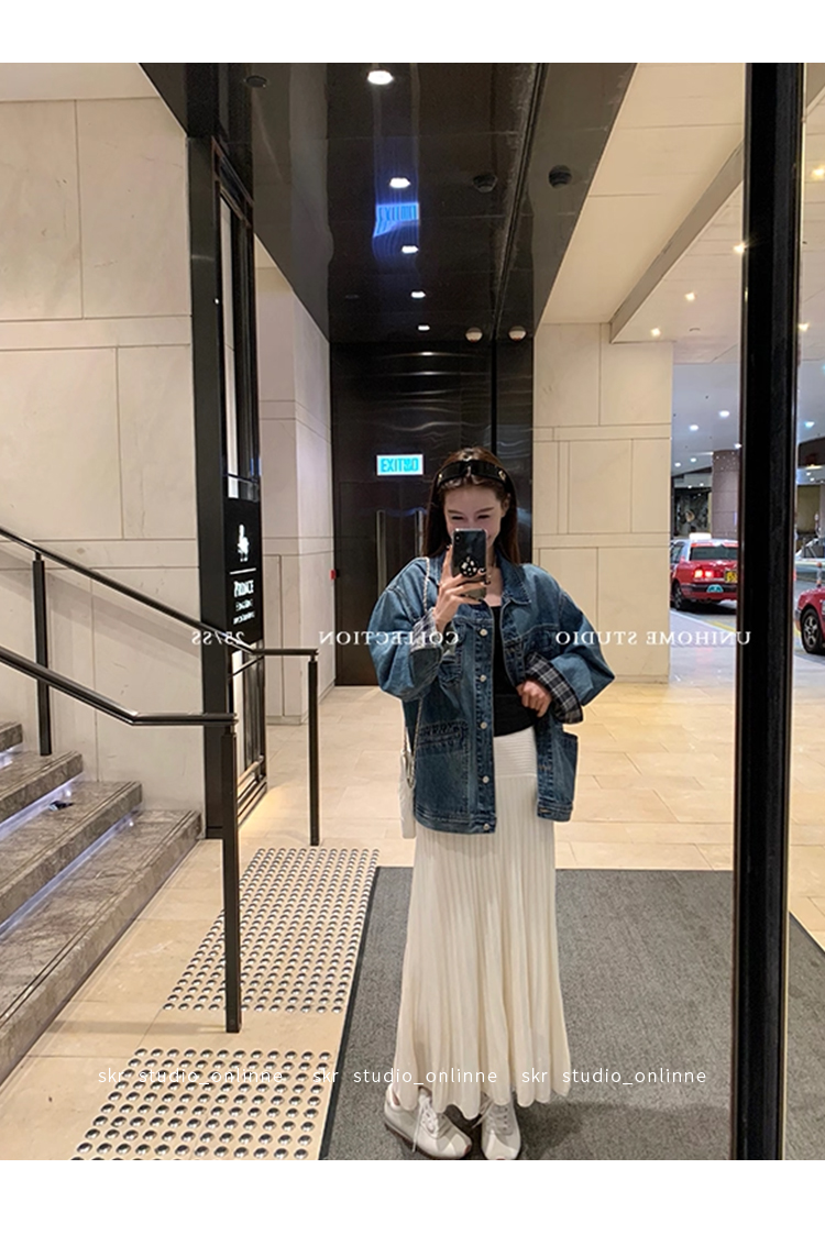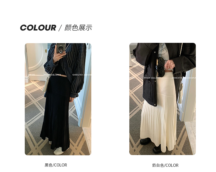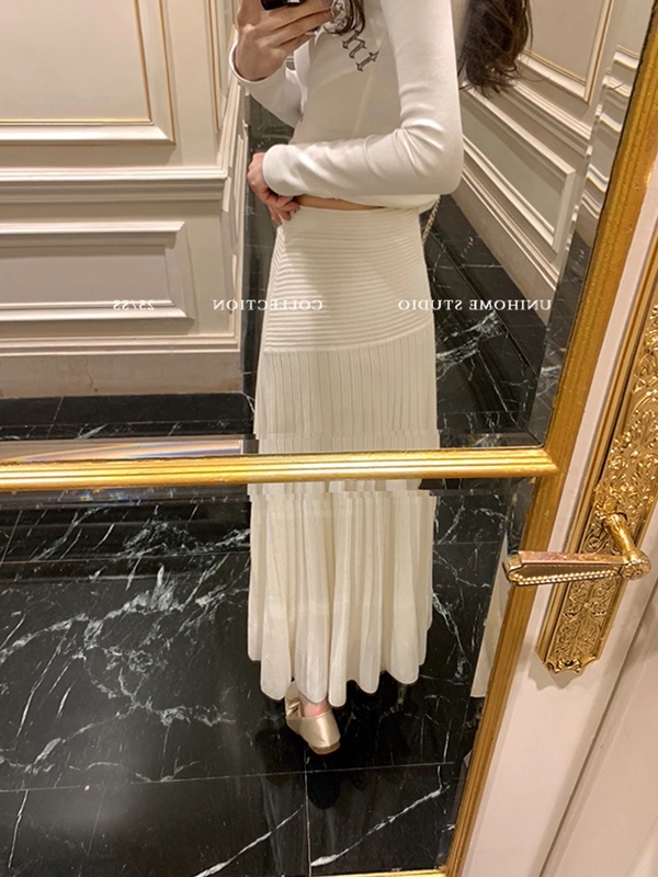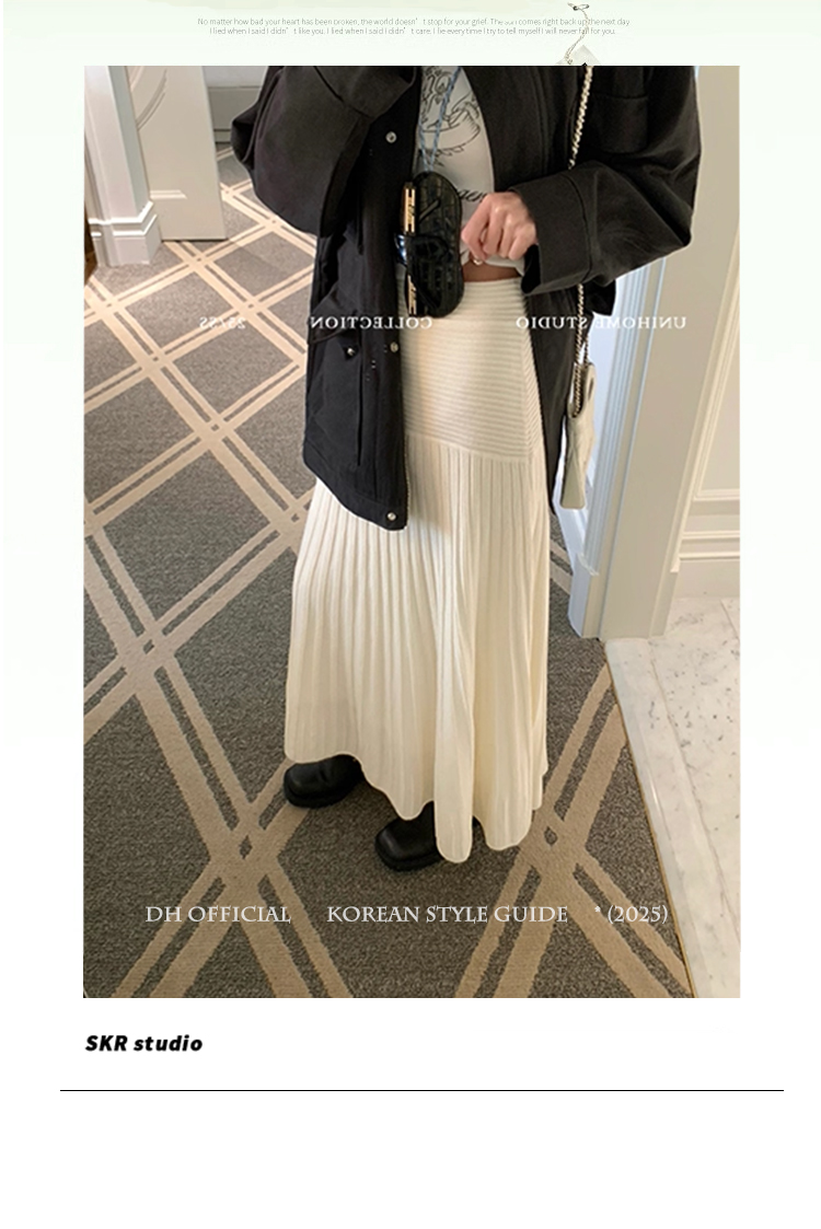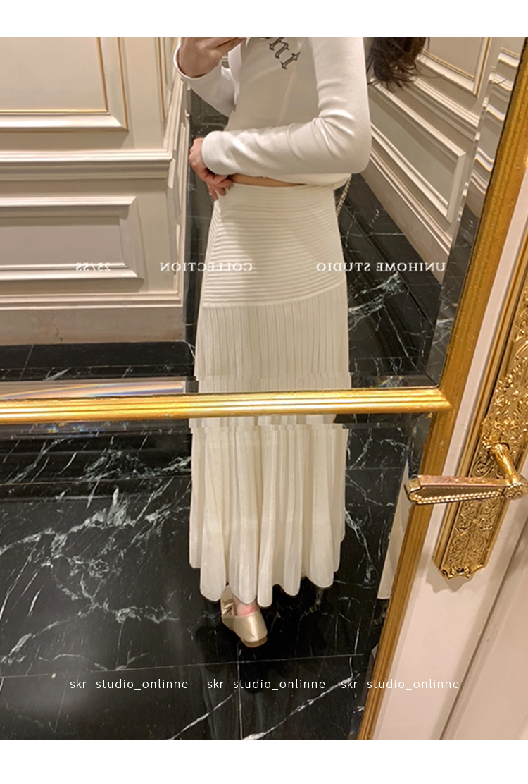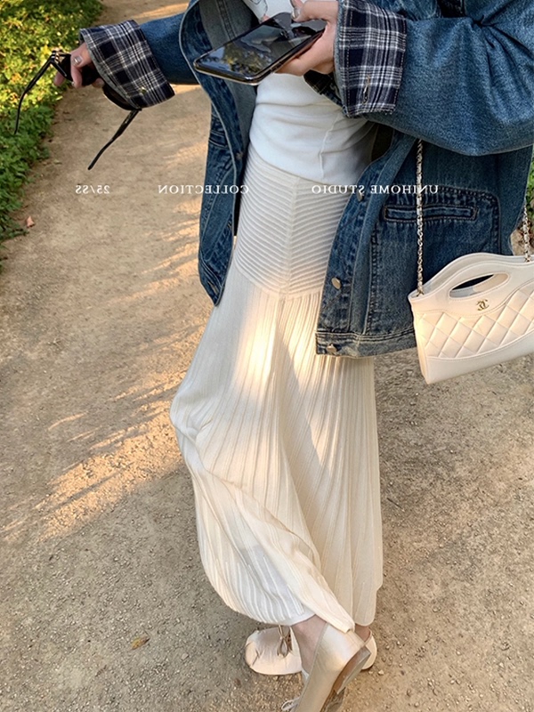 새로운 2025 가을 겨울 품격 우아함 부드러운 부서 도루 센스 다용도 슬림해 보이는 털실 니트 반신 스커트 여성