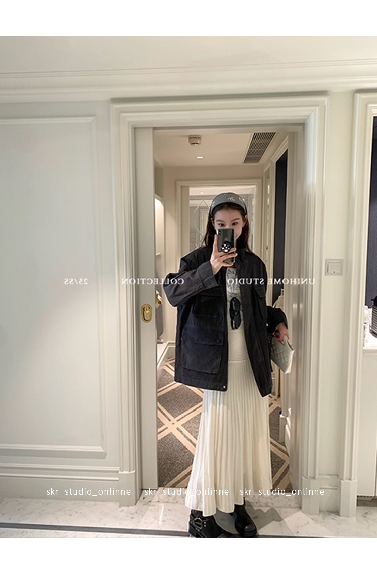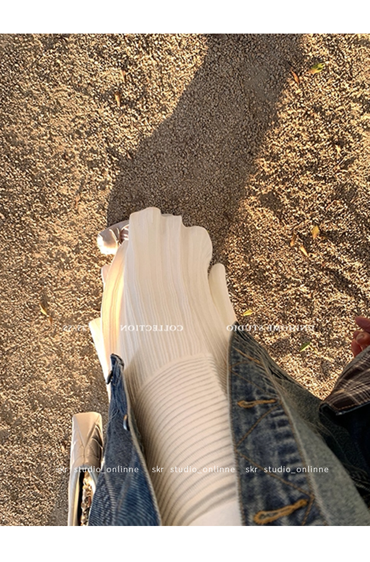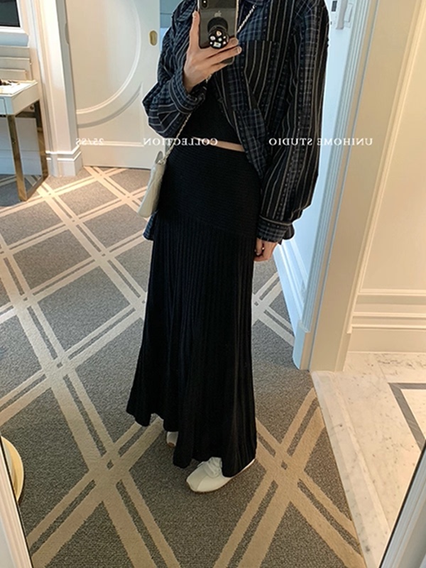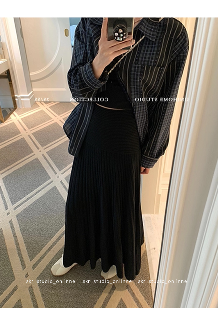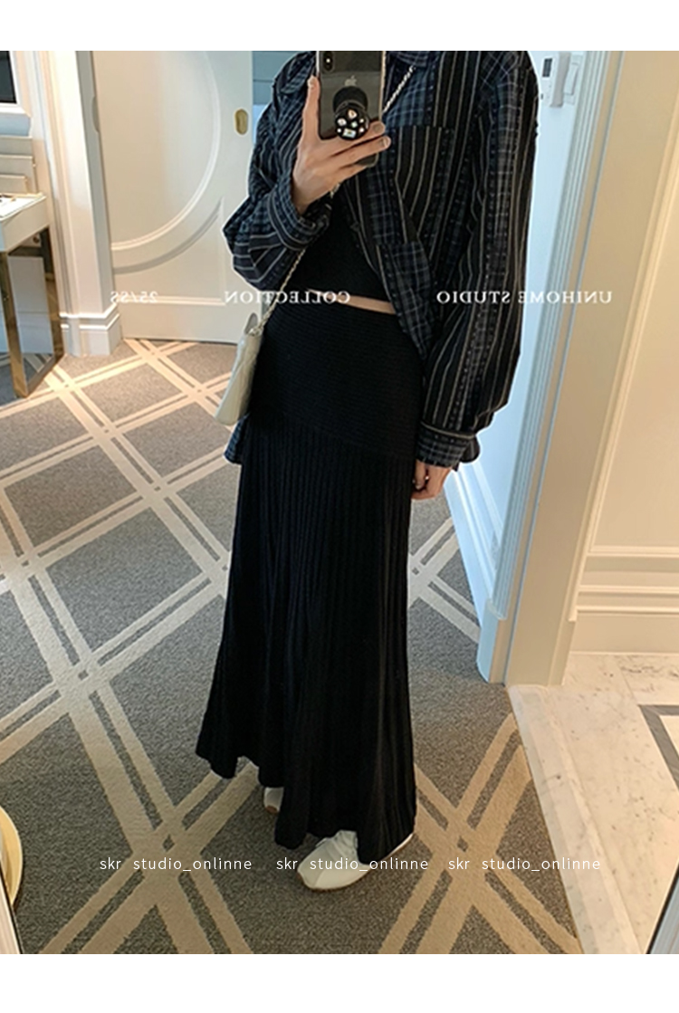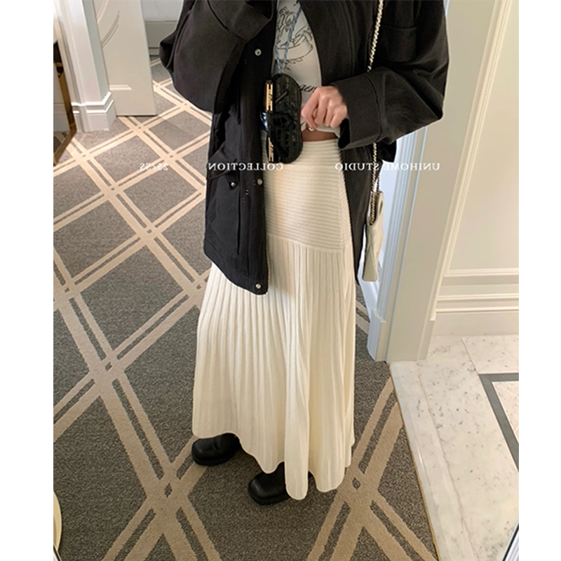 가을 겨울 두꺼운 2025 한국 스타일 다용도 슬림해 보이는 도루 센스 표지 십자가 부드러운 플리츠 털실 니트 반신 스커트