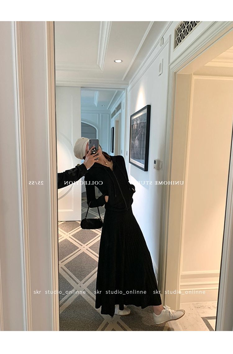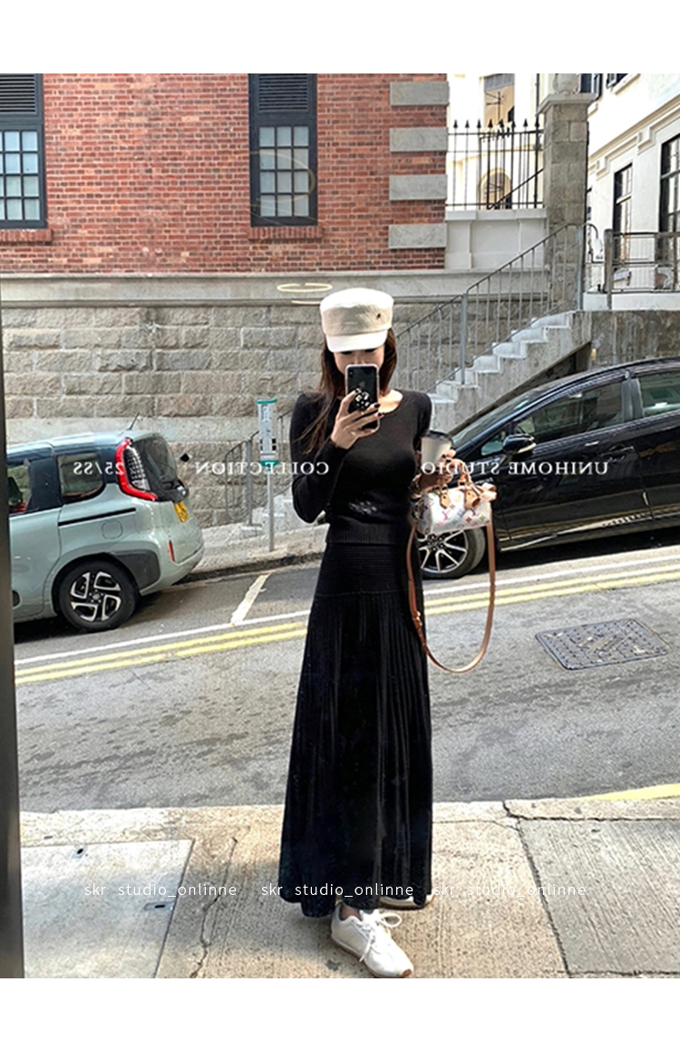 한 부서 이른 가을 착용 가져 가라. 부드러운 찹쌀 스웨터 니트 기본 셔츠 맨위 캐주얼 반신 스커트 자이언트 잘 생긴 ~ 중 투피스 세트
