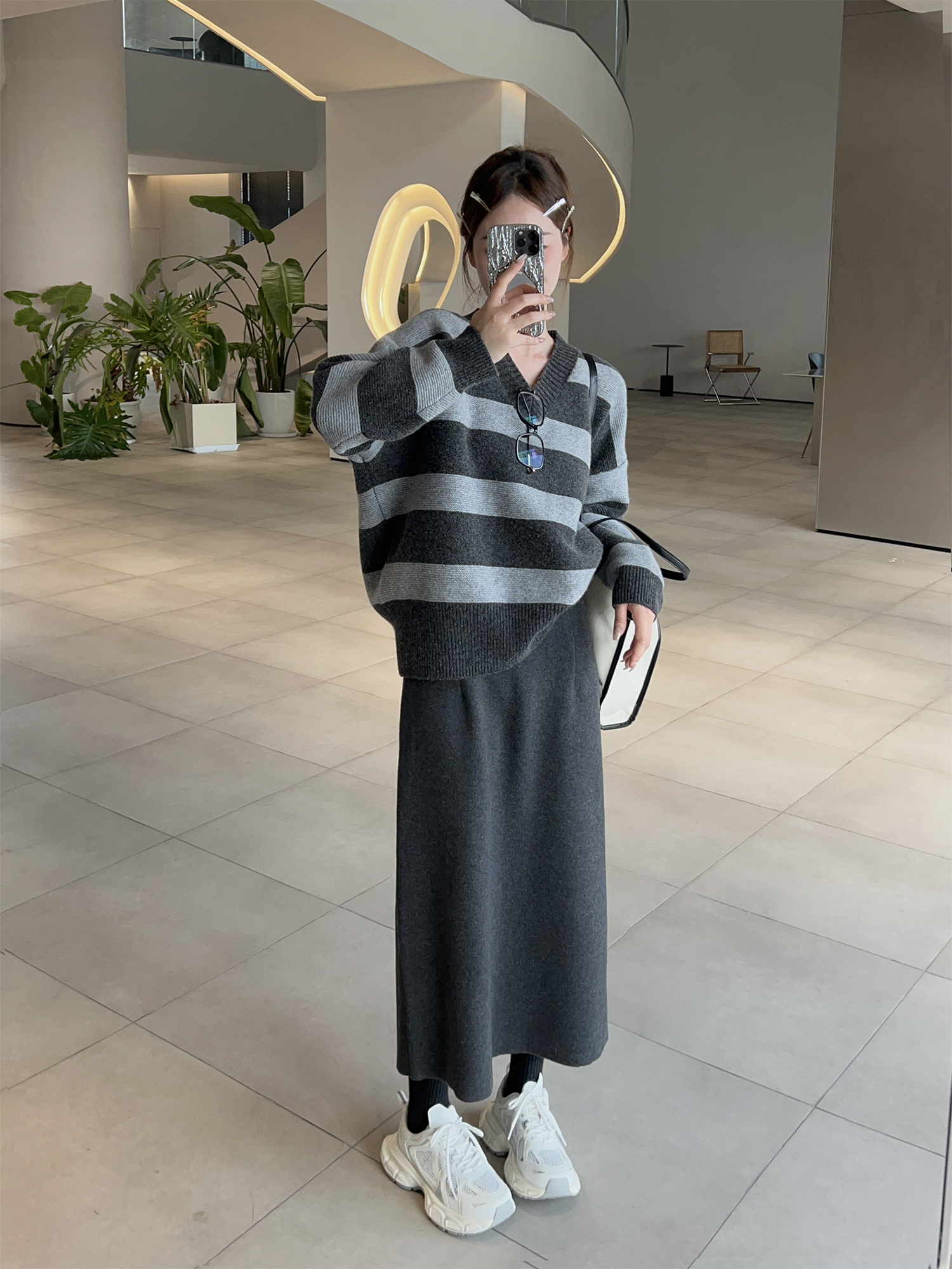 한 부서 이른 가을 착용 가져 가라. 부드러운 찹쌀 스웨터 니트 기본 셔츠 맨위 캐주얼 반신 스커트 자이언트 잘 생긴 ~ 중 투피스 세트