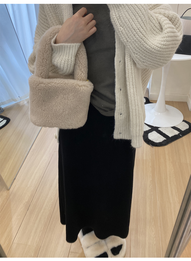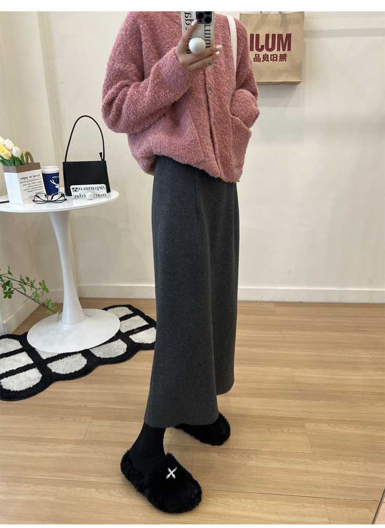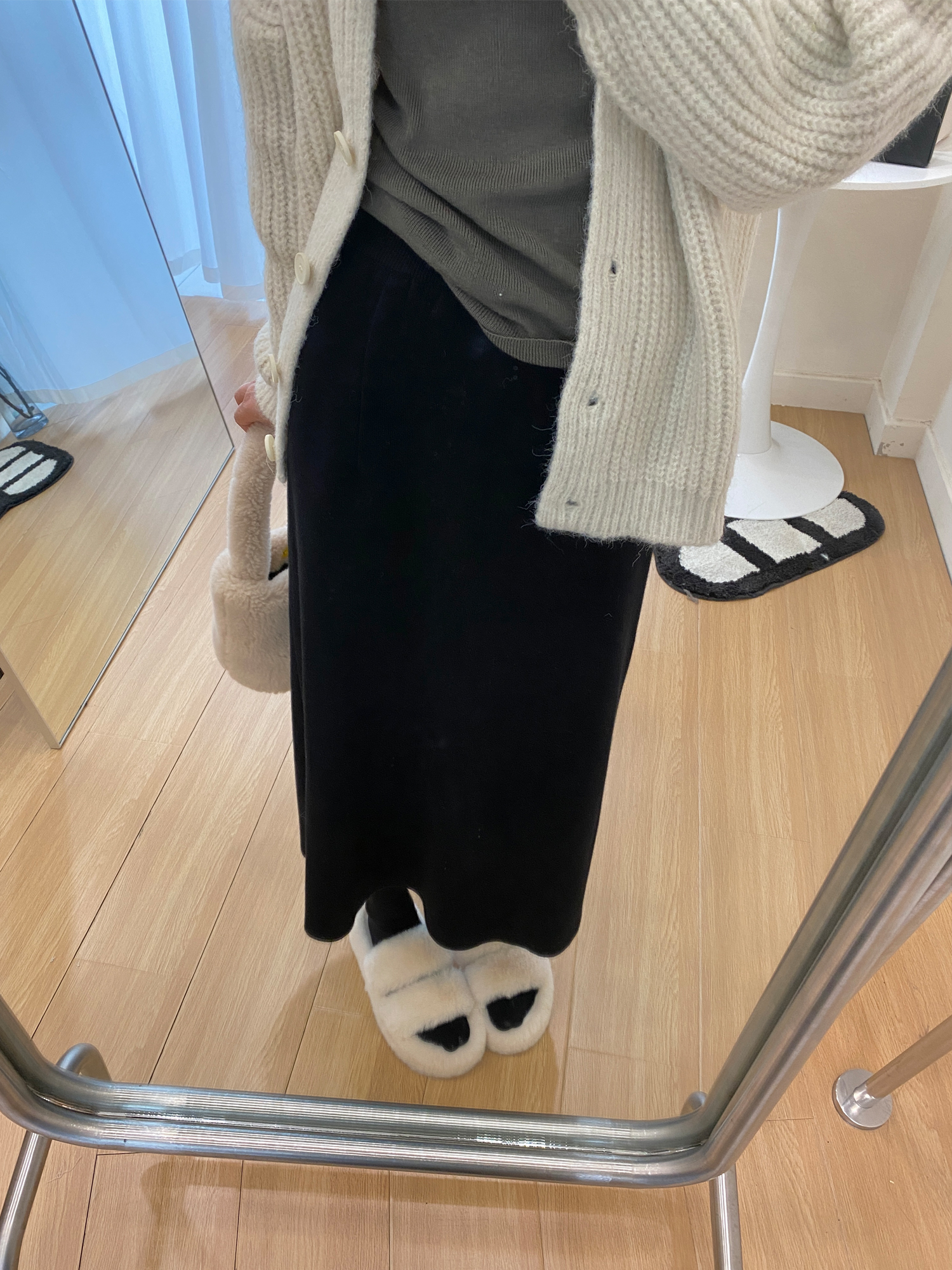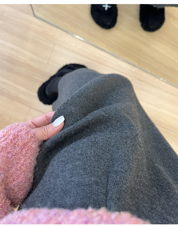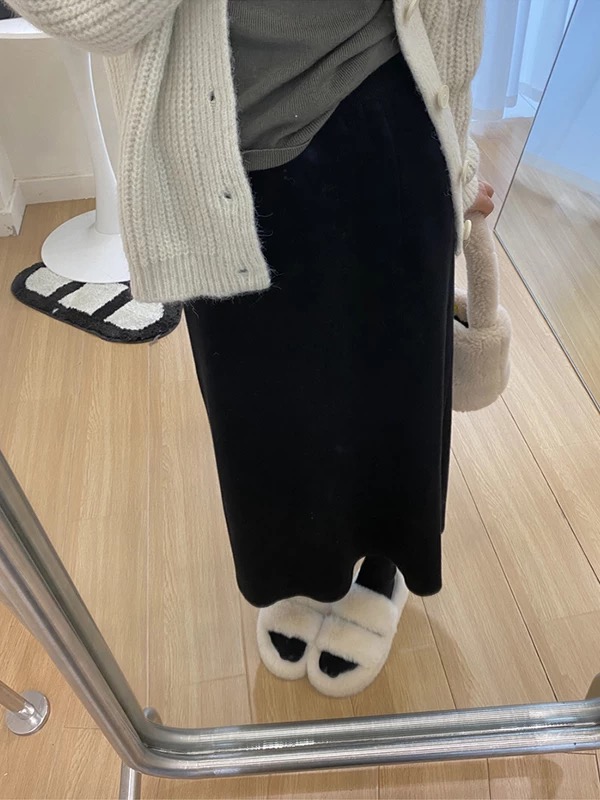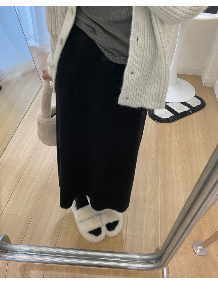 겨울 털이 있는 트임 니트 반신 스커트 여성 롱 스커트 하이웨이스트 표지 넓적 다리 루즈핏 스트레이트 치마 다용도 타이트 스커트