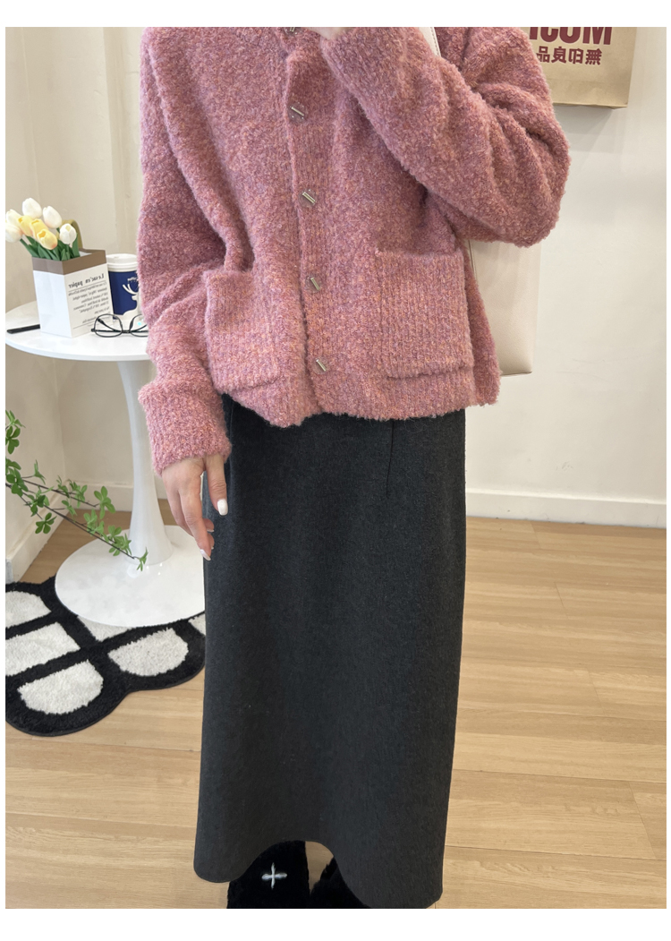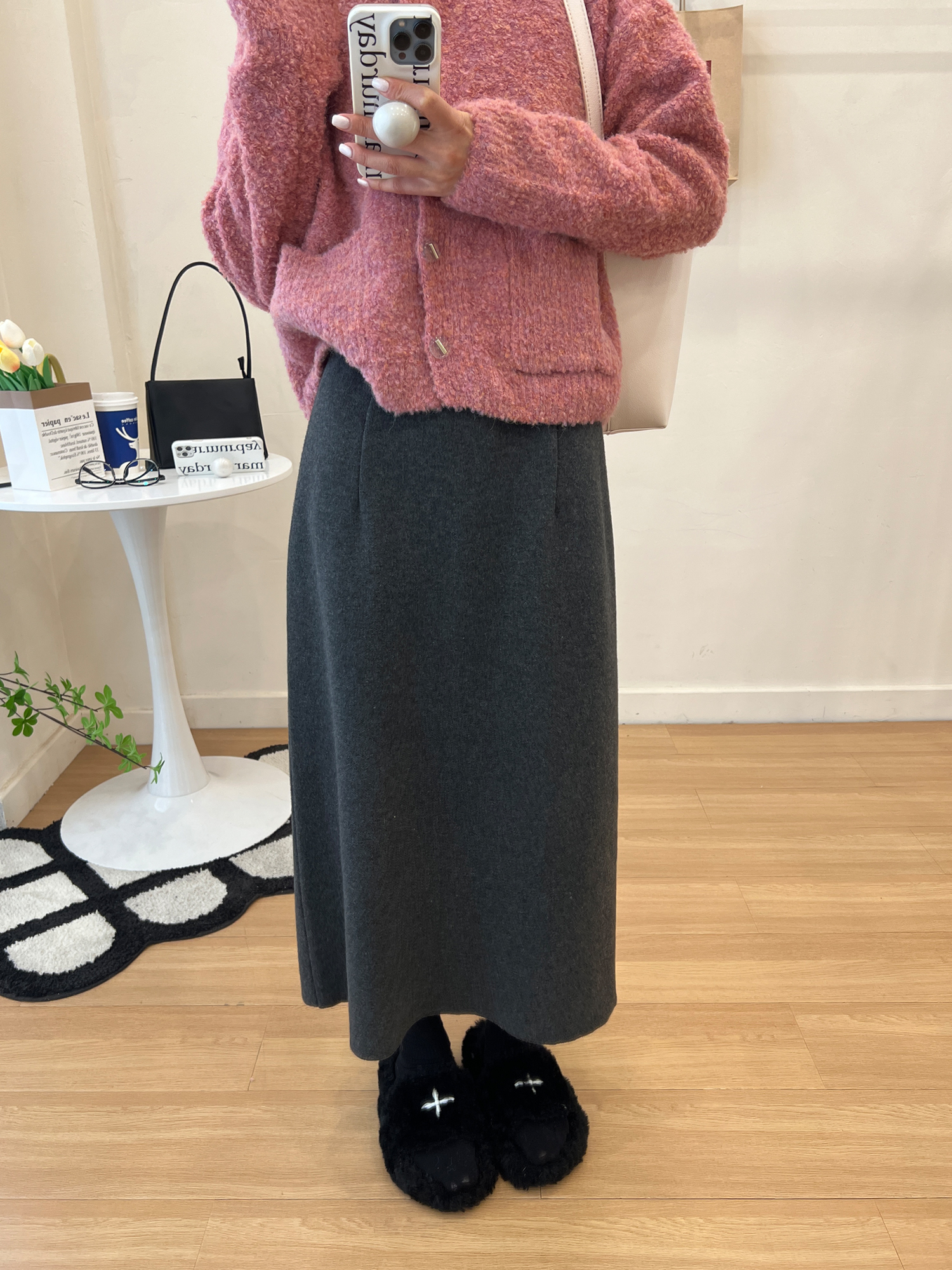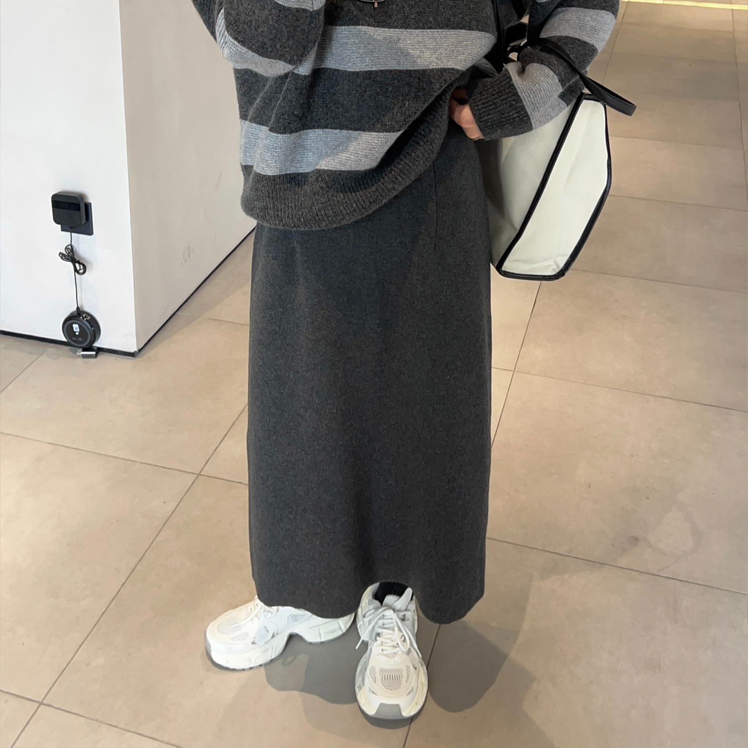 어두운 회색 품격 트임 니트 반신 스커트 여성 가을 겨울 새로운 작은 키 하이웨이스트 슬림해 보이는 중간 길이 스트레이트 치마