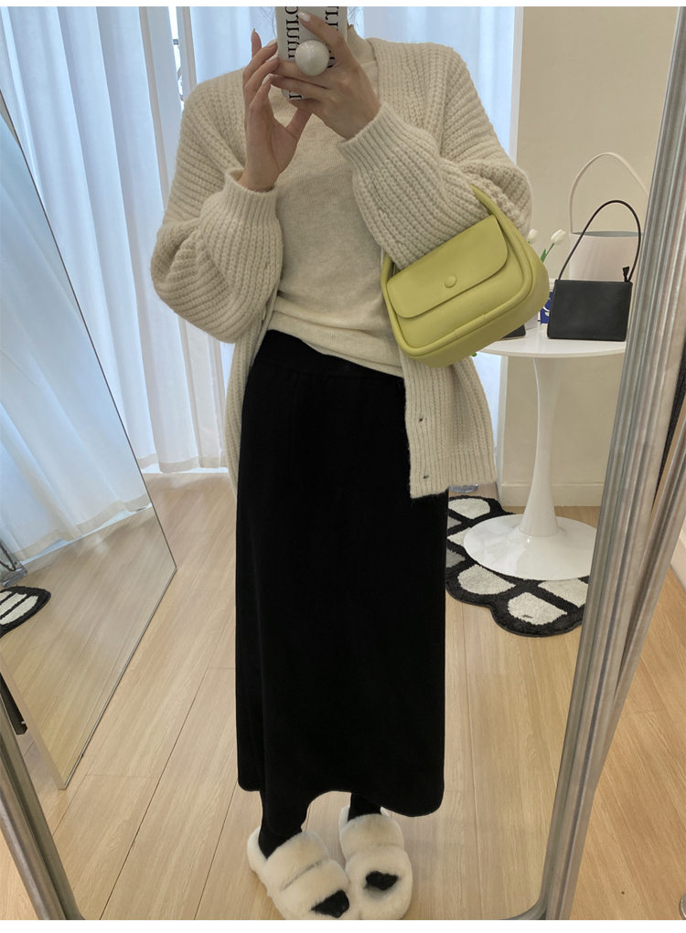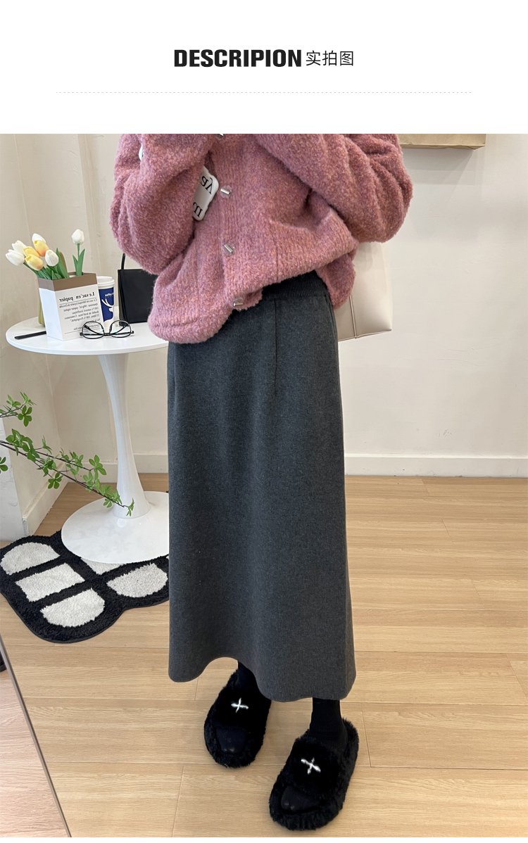 니트 반신 스커트 여성 가을 겨울 하이웨이스트 도루 센스 슬림해 보이는 중간 길이 털실 A라인 스커트 두꺼운 스트레이트 치마