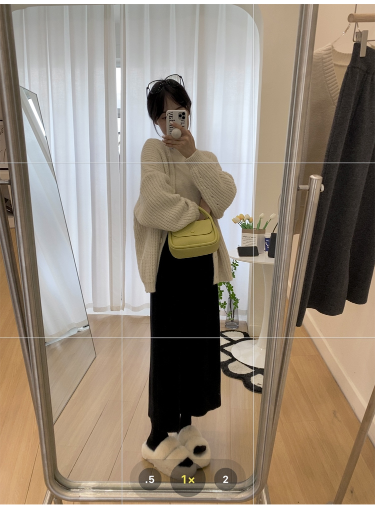 새로운 2025 가을 겨울 품격 우아함 부드러운 부서 도루 센스 다용도 슬림해 보이는 털실 니트 반신 스커트 여성