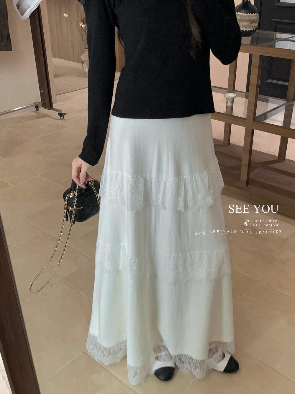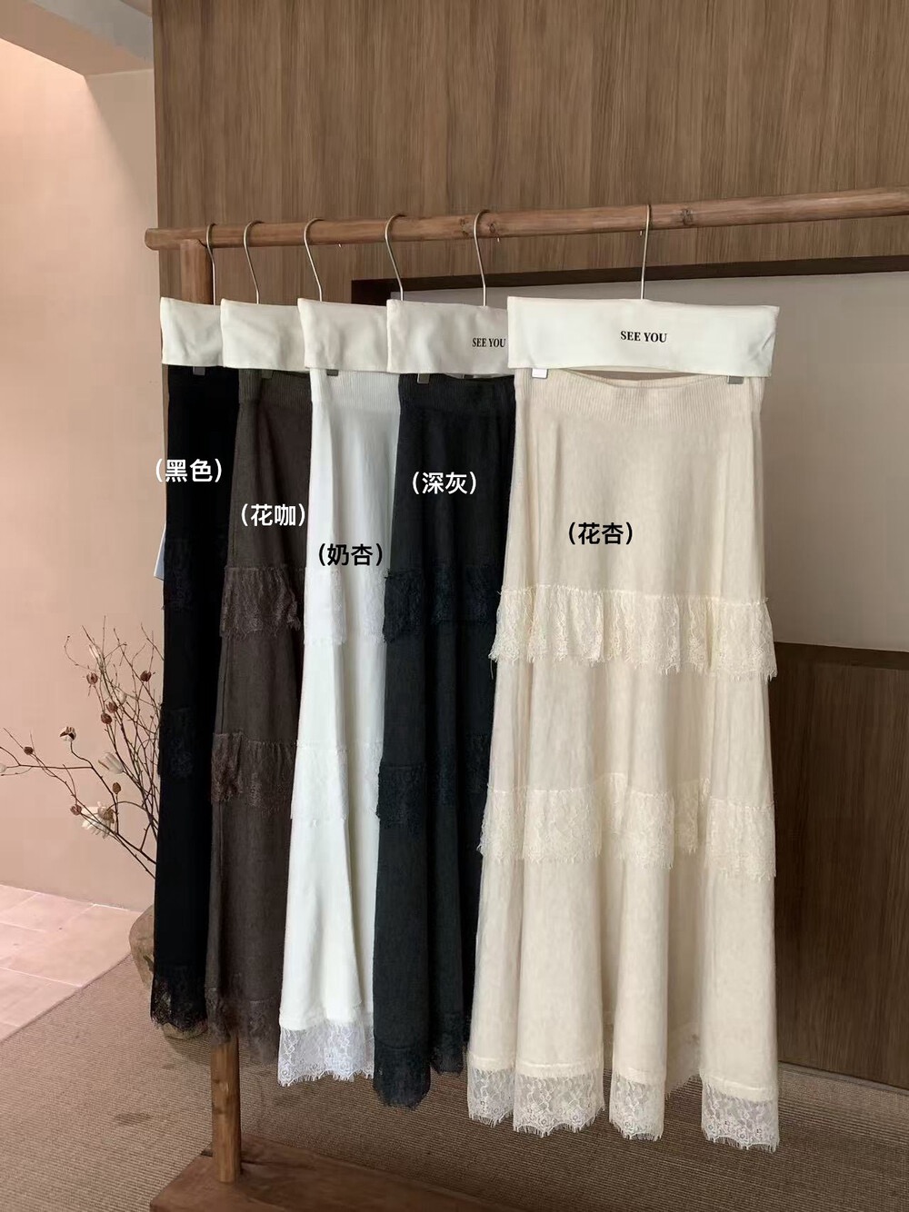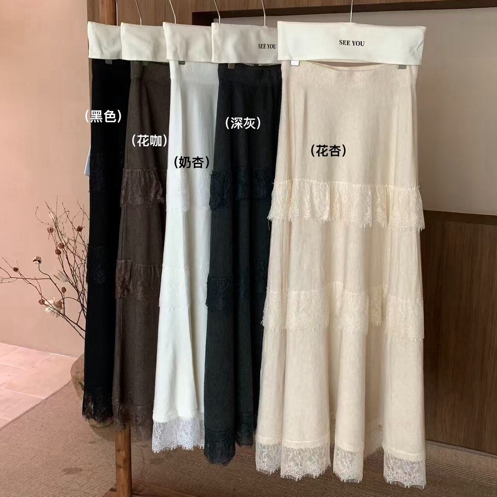 가을 겨울 새로운 한국 스타일 패션 다용도 하이웨이스트 슬림해 보이는 A라인 스커트 목이버섯 레이스 반신 스커트 니트 중간 길이 치마