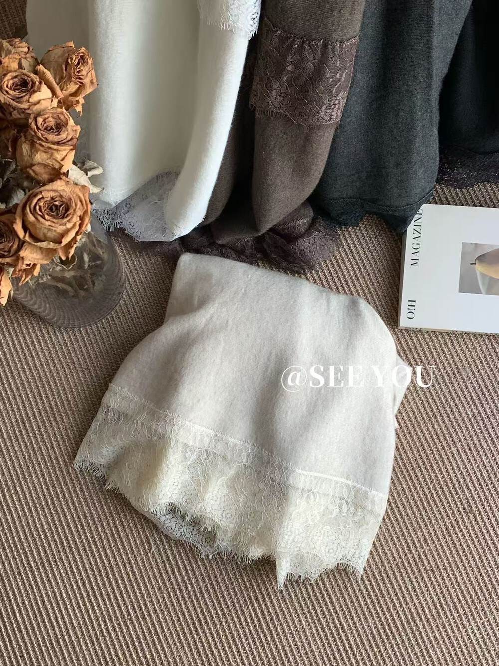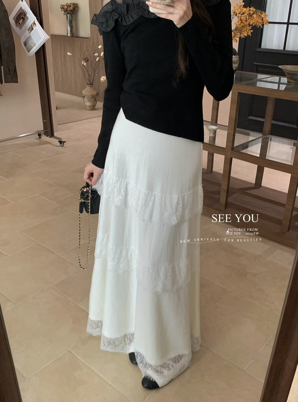 2025 가을 새로운 한국 스타일 다용도 하이웨이스트 슬림해 보이는 한 마디 반신 스커트 양모 니트 치마 레이스 치마