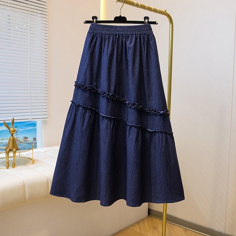 봄 여름 데님 반신 치마 한 마디 우산 치마 중간 길이 무릎 아래 루즈핏 하이웨이스트 XL 여성 의류 200 kg 지방 mm