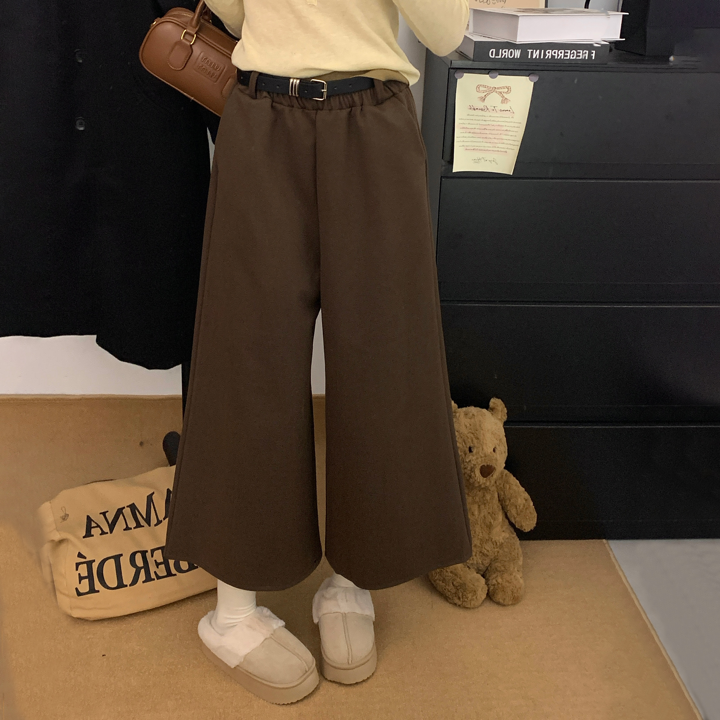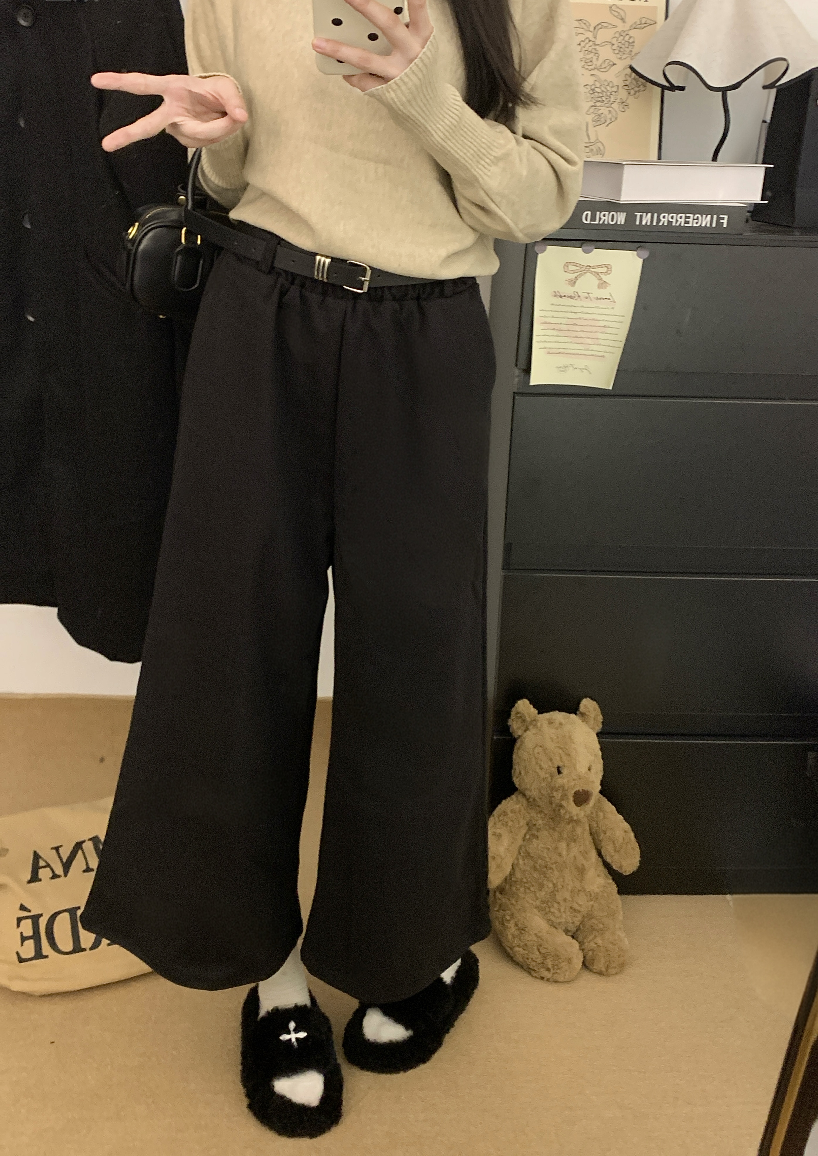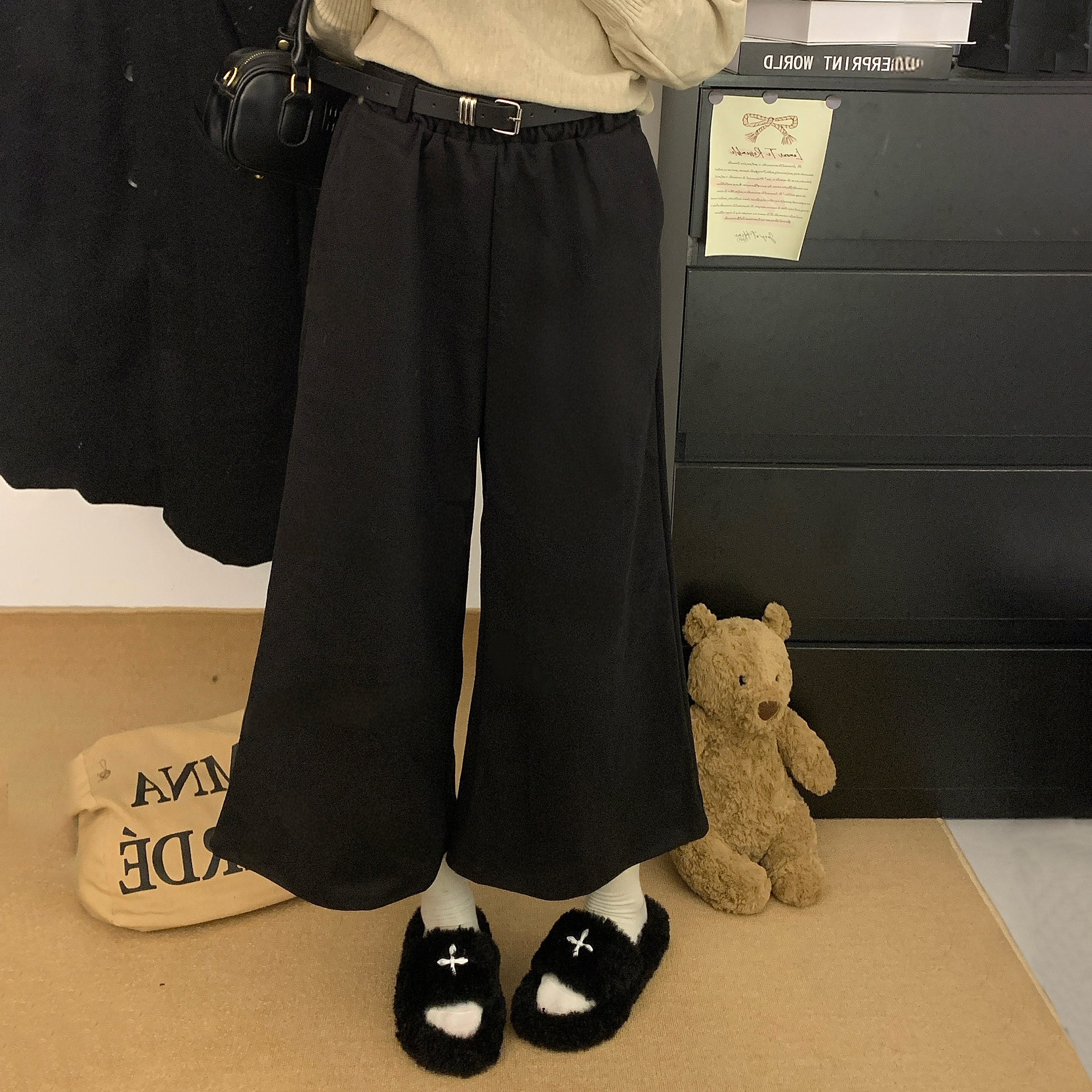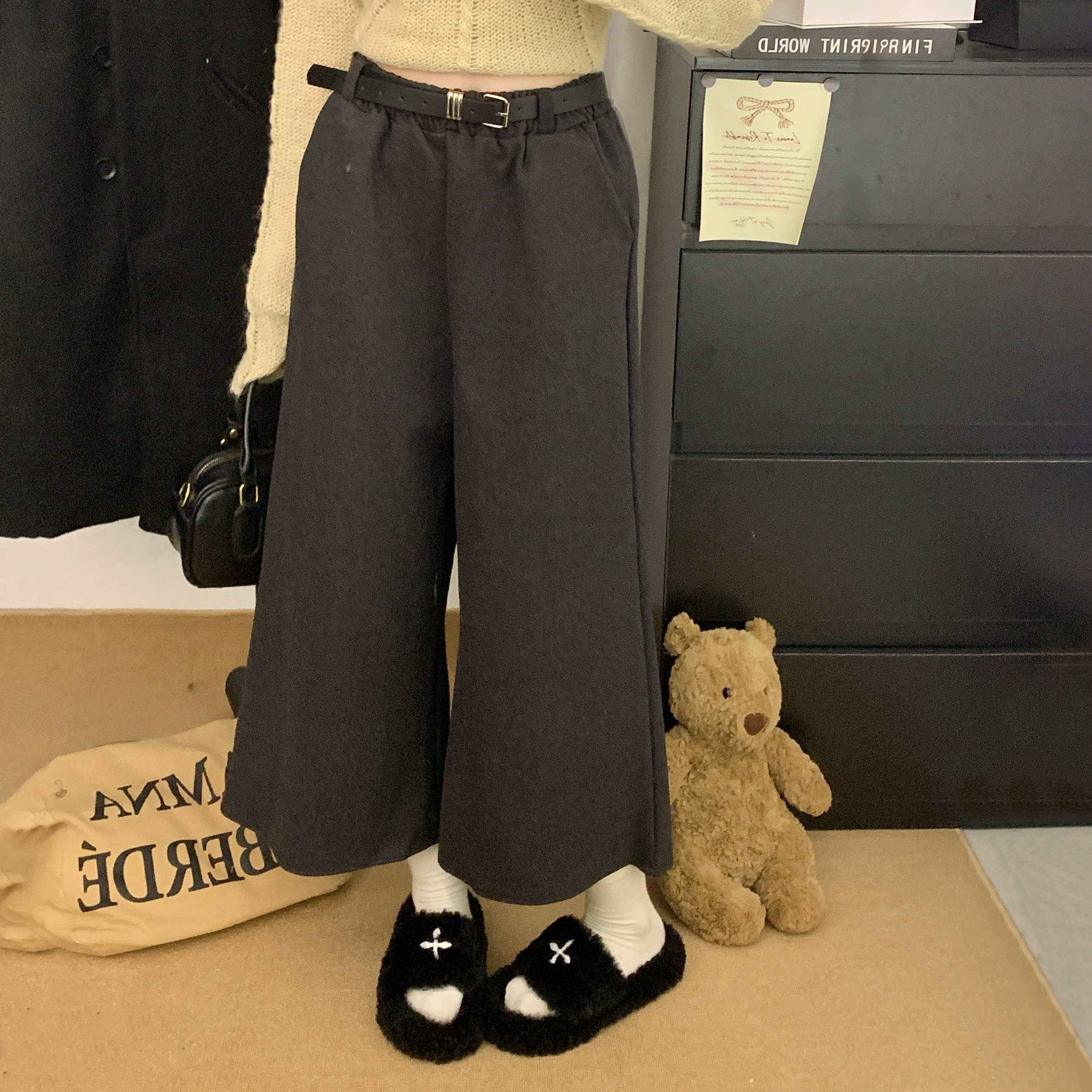 레트로 미니멀리즘 바람 두꺼운 모직 정장 바지 여성 가을 겨울 새로운 캐주얼 도루 센스 세련된 다용도 넓은 다리 오부 바지