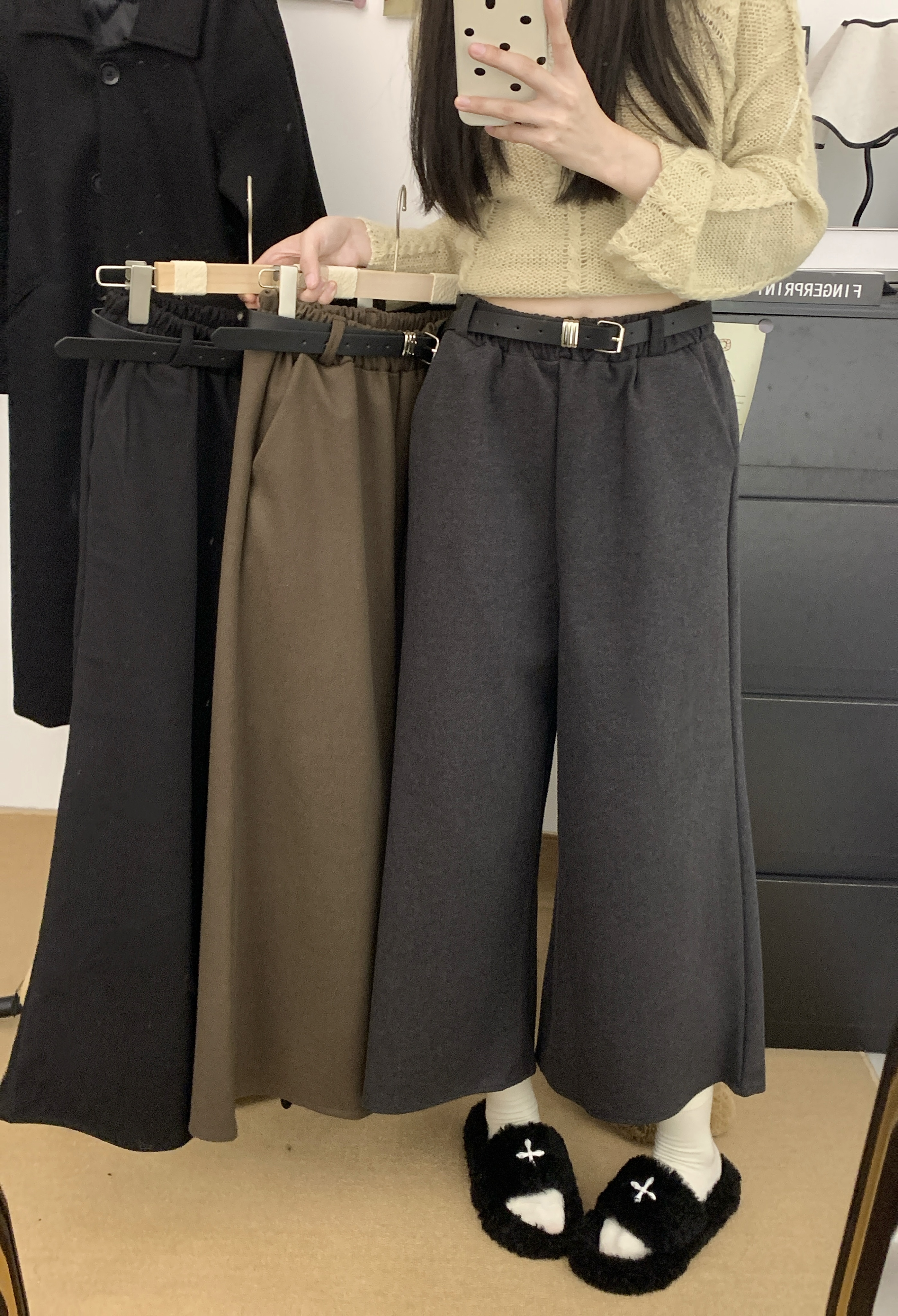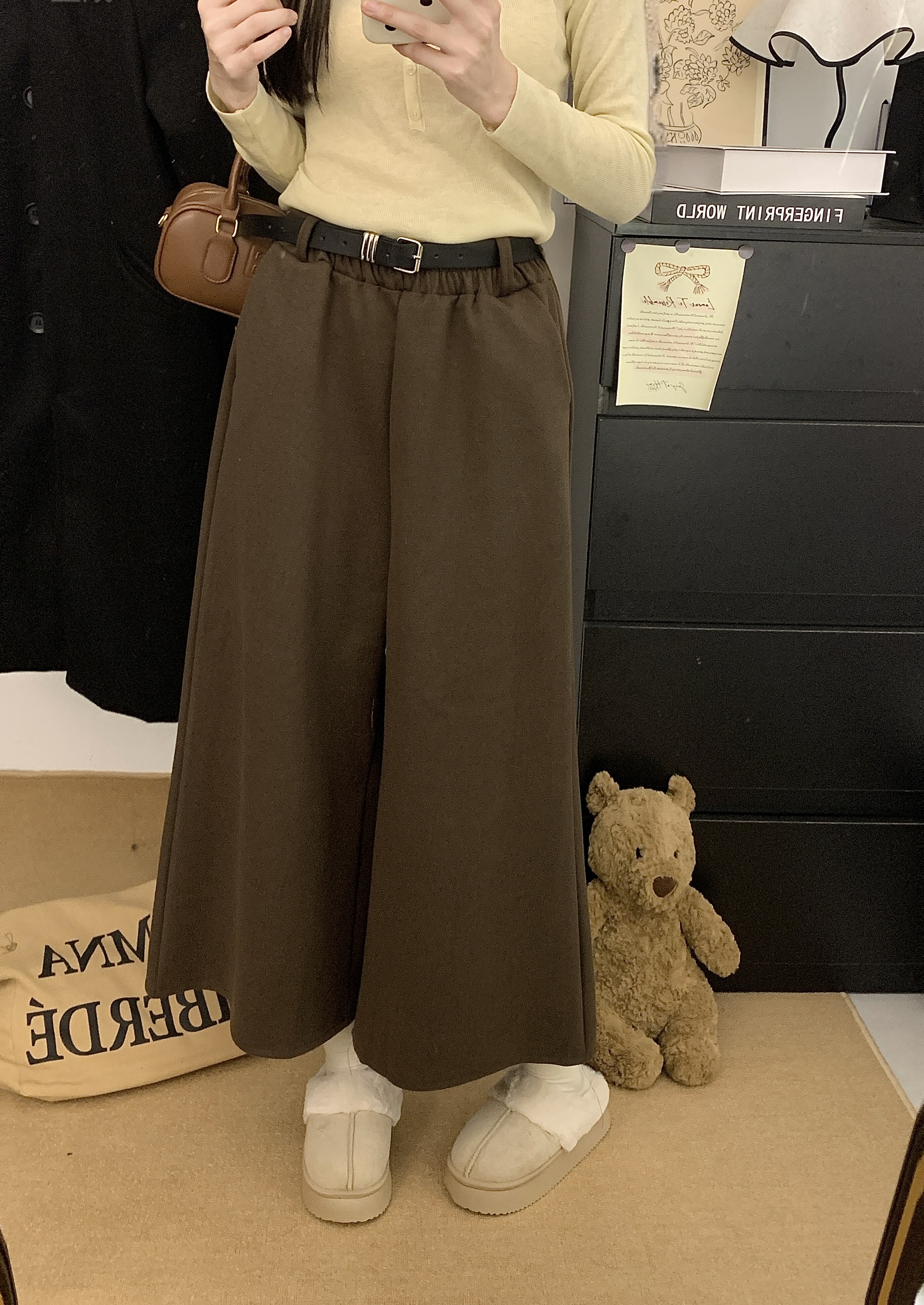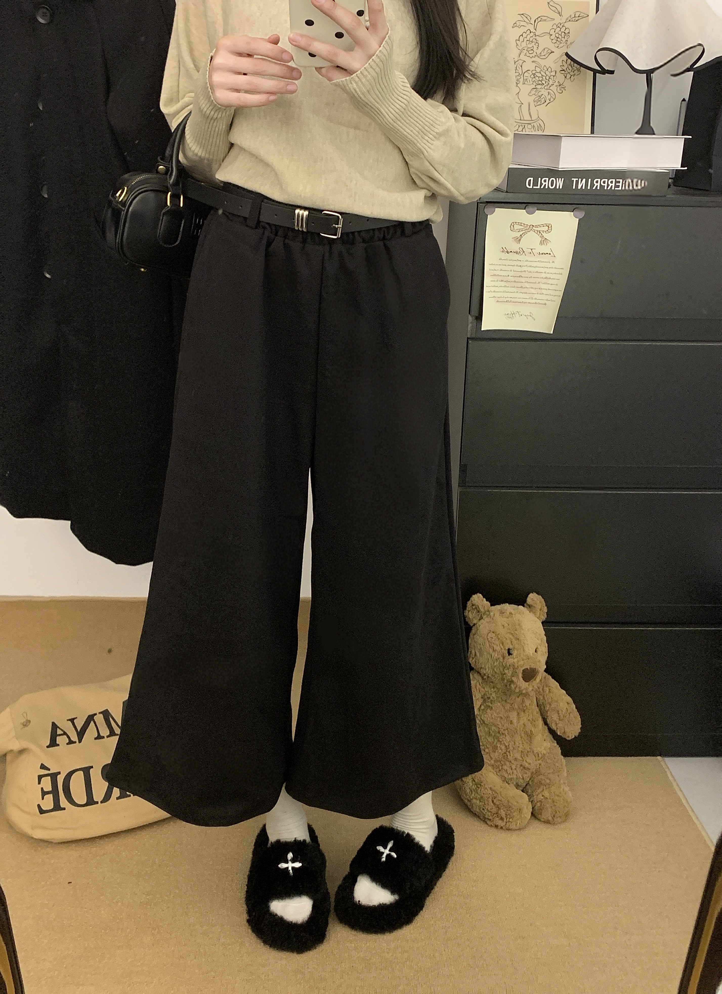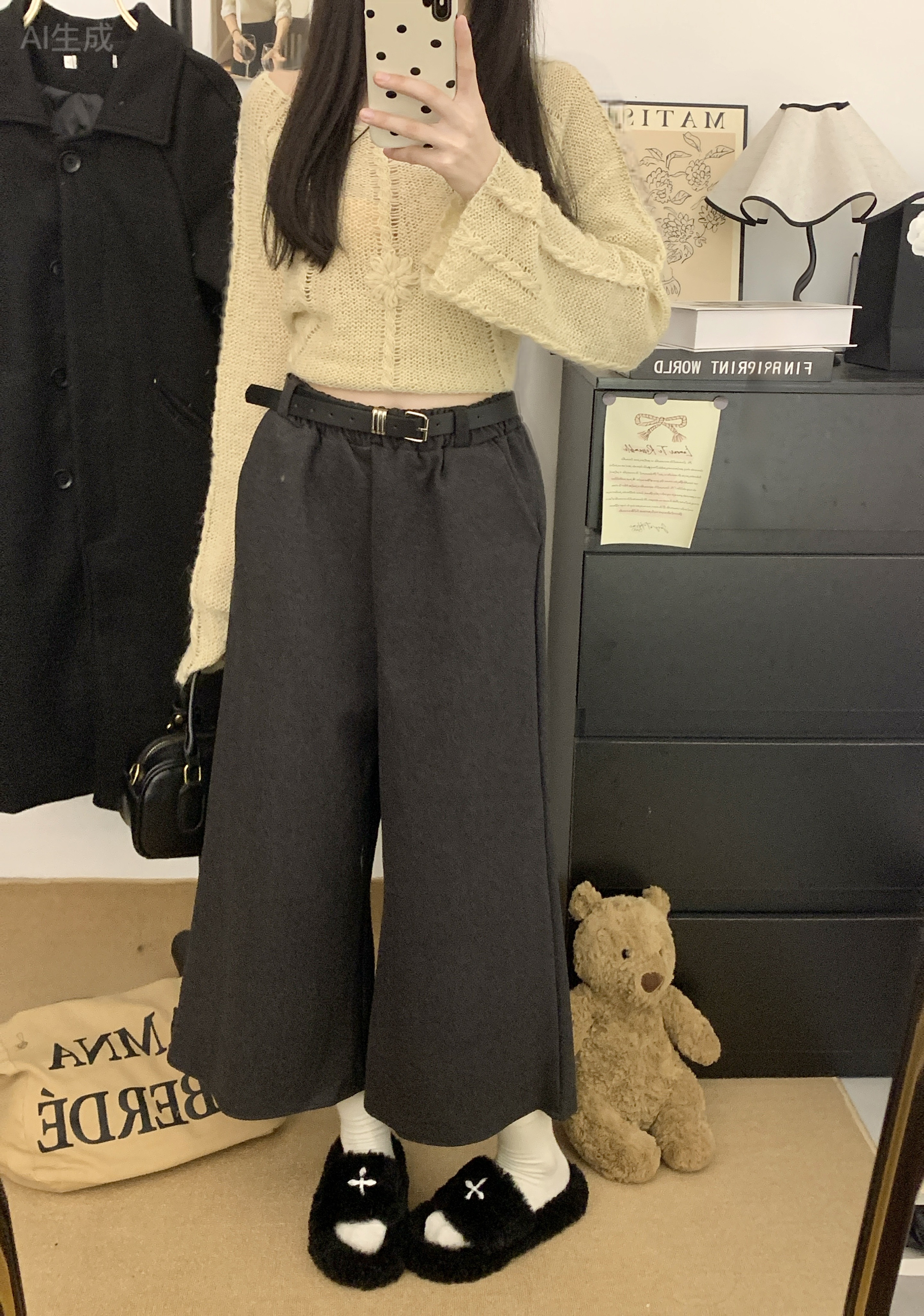 레트로 미니멀리즘 바람 두꺼운 모직 정장 바지 여성 가을 겨울 새로운 캐주얼 도루 센스 세련된 다용도 넓은 다리 오부 바지