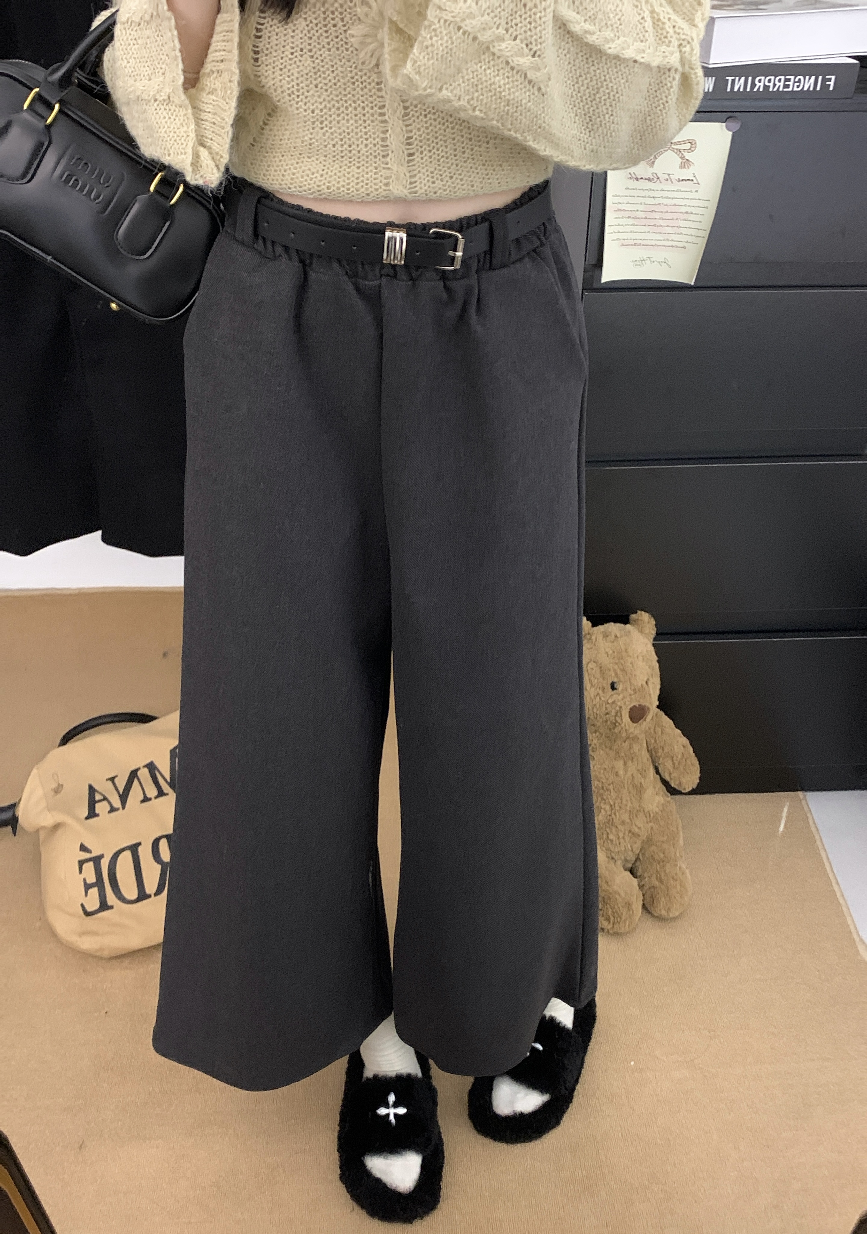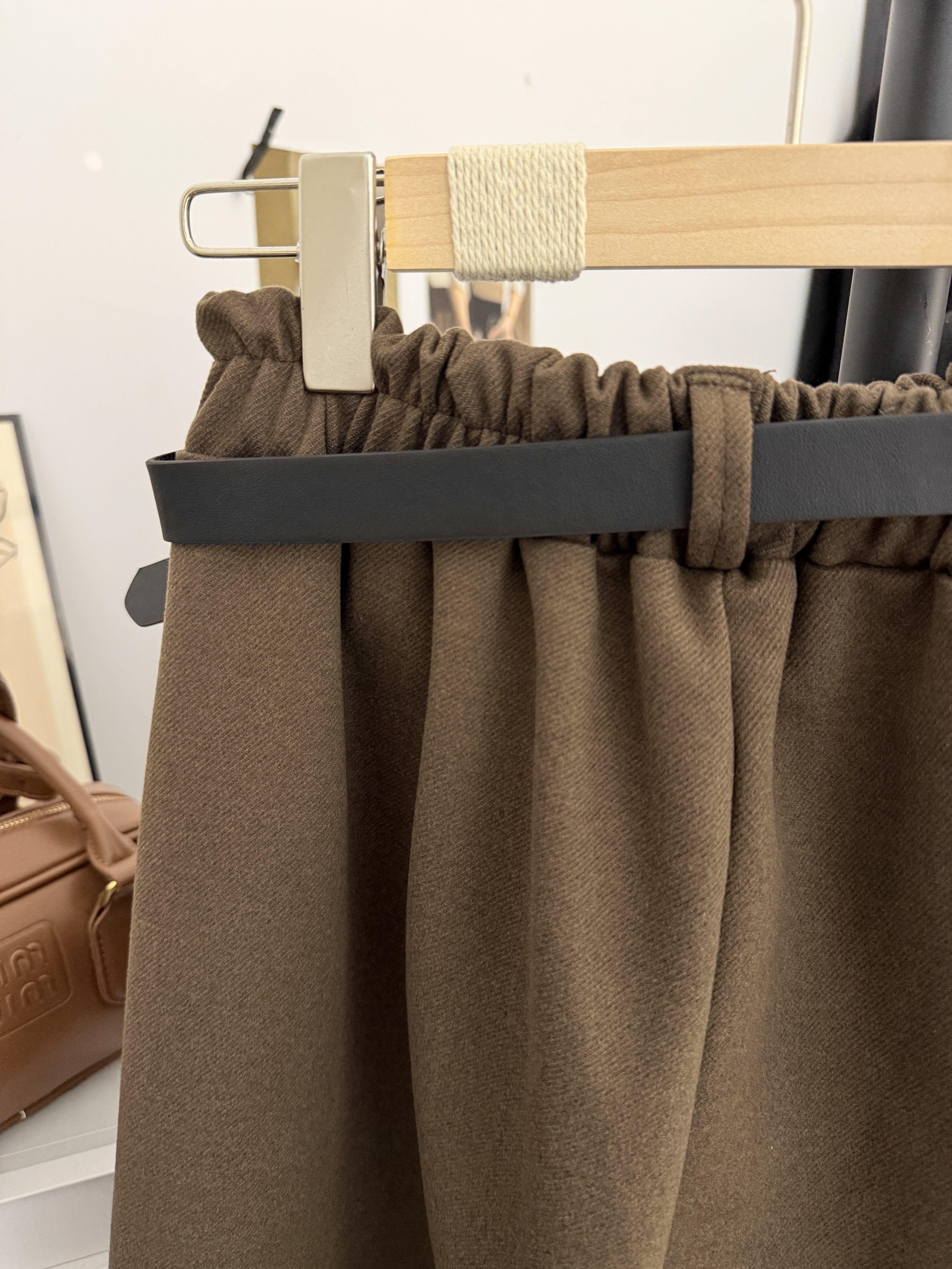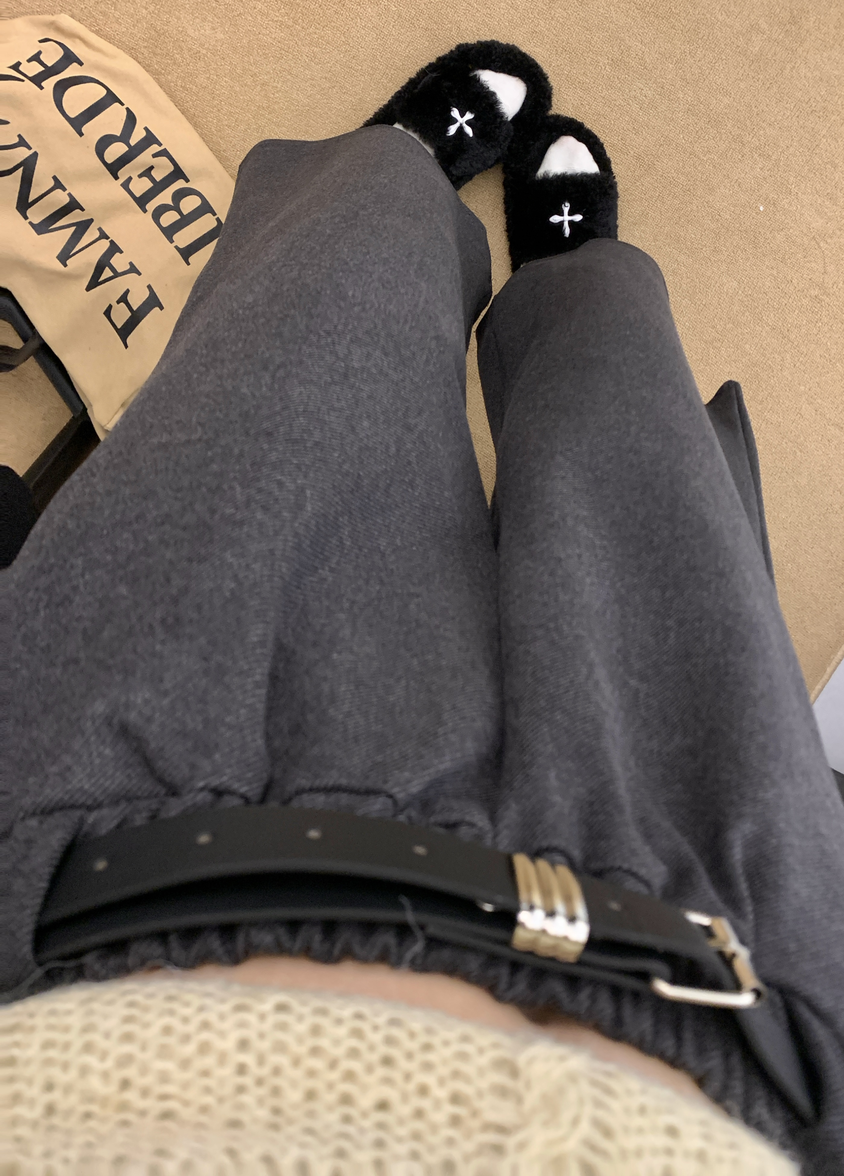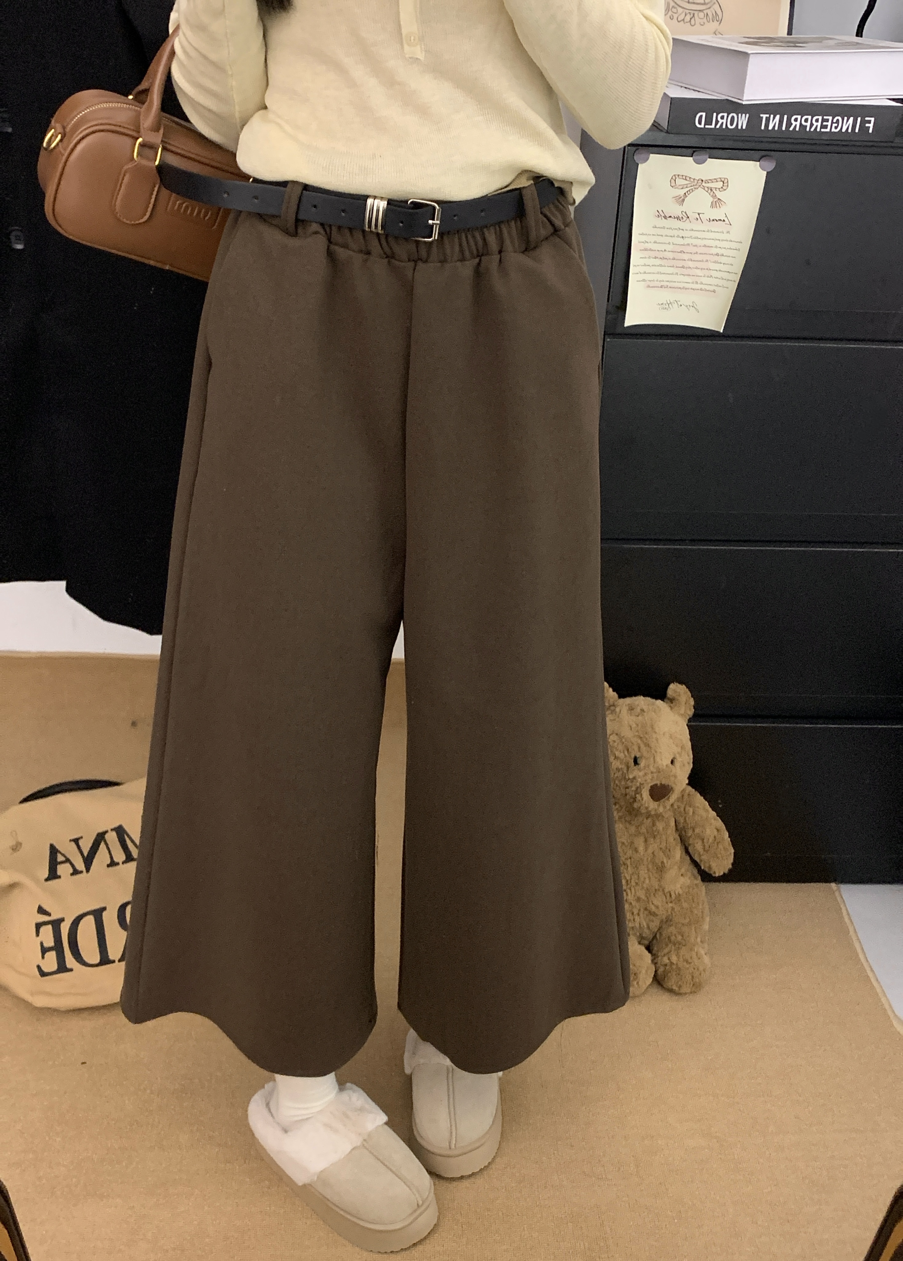 레트로 미니멀리즘 바람 두꺼운 모직 정장 바지 여성 가을 겨울 새로운 캐주얼 도루 센스 세련된 다용도 넓은 다리 오부 바지