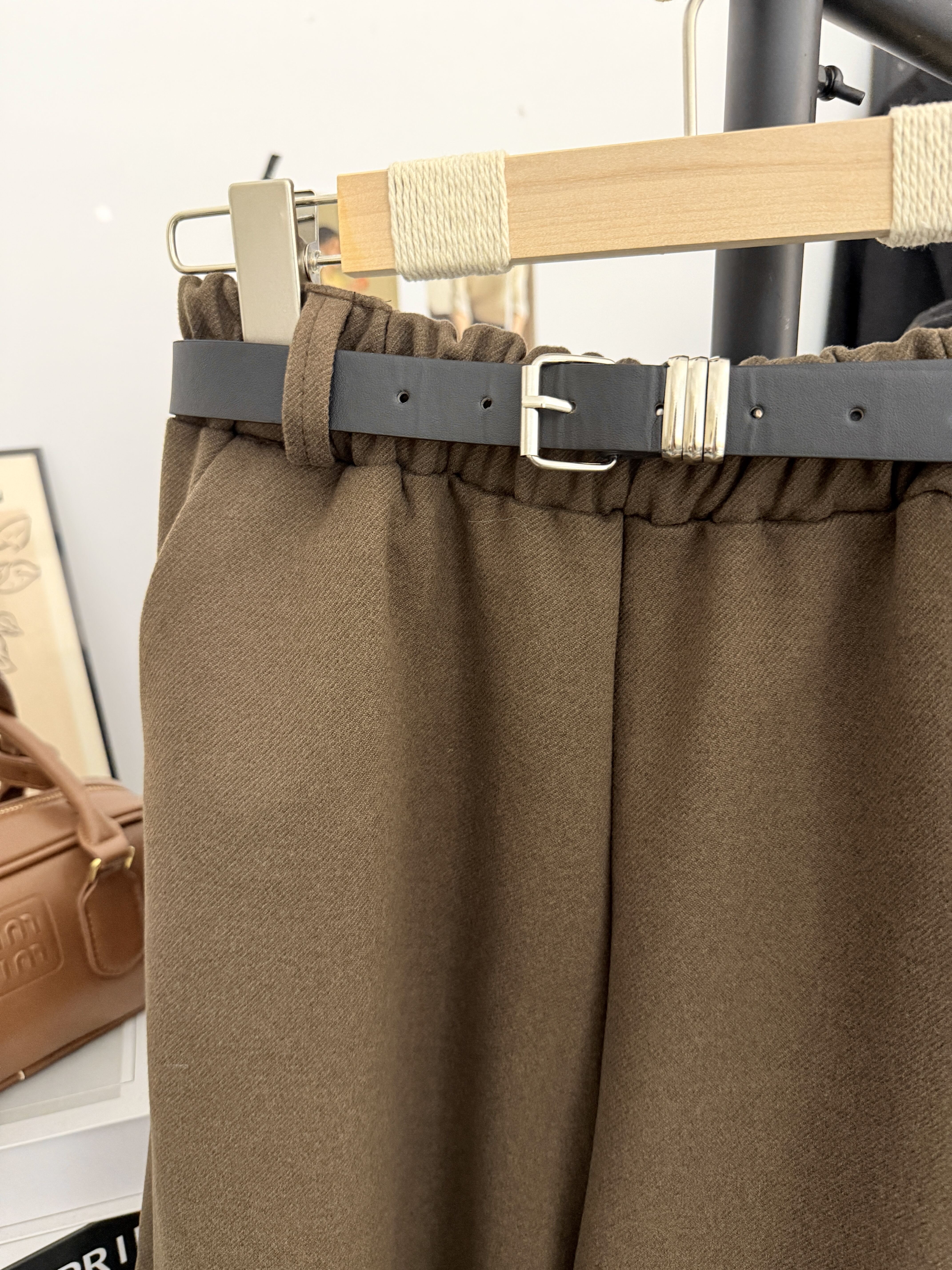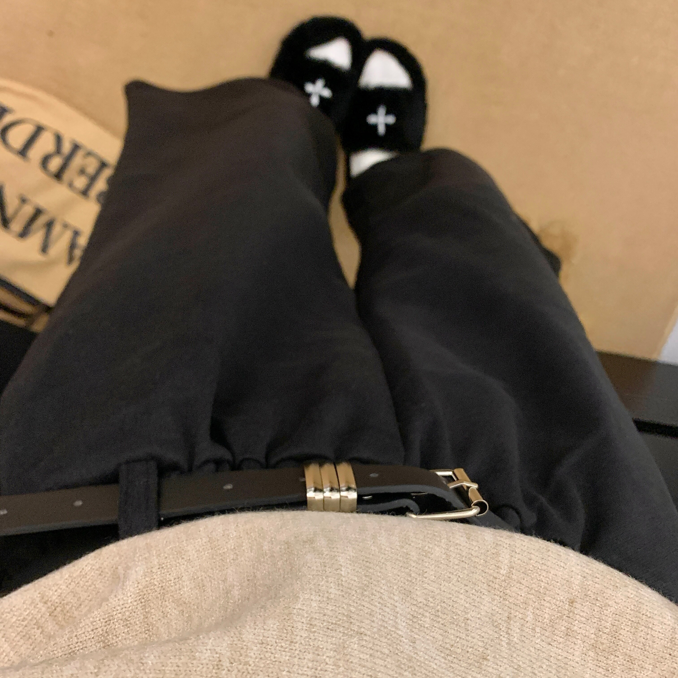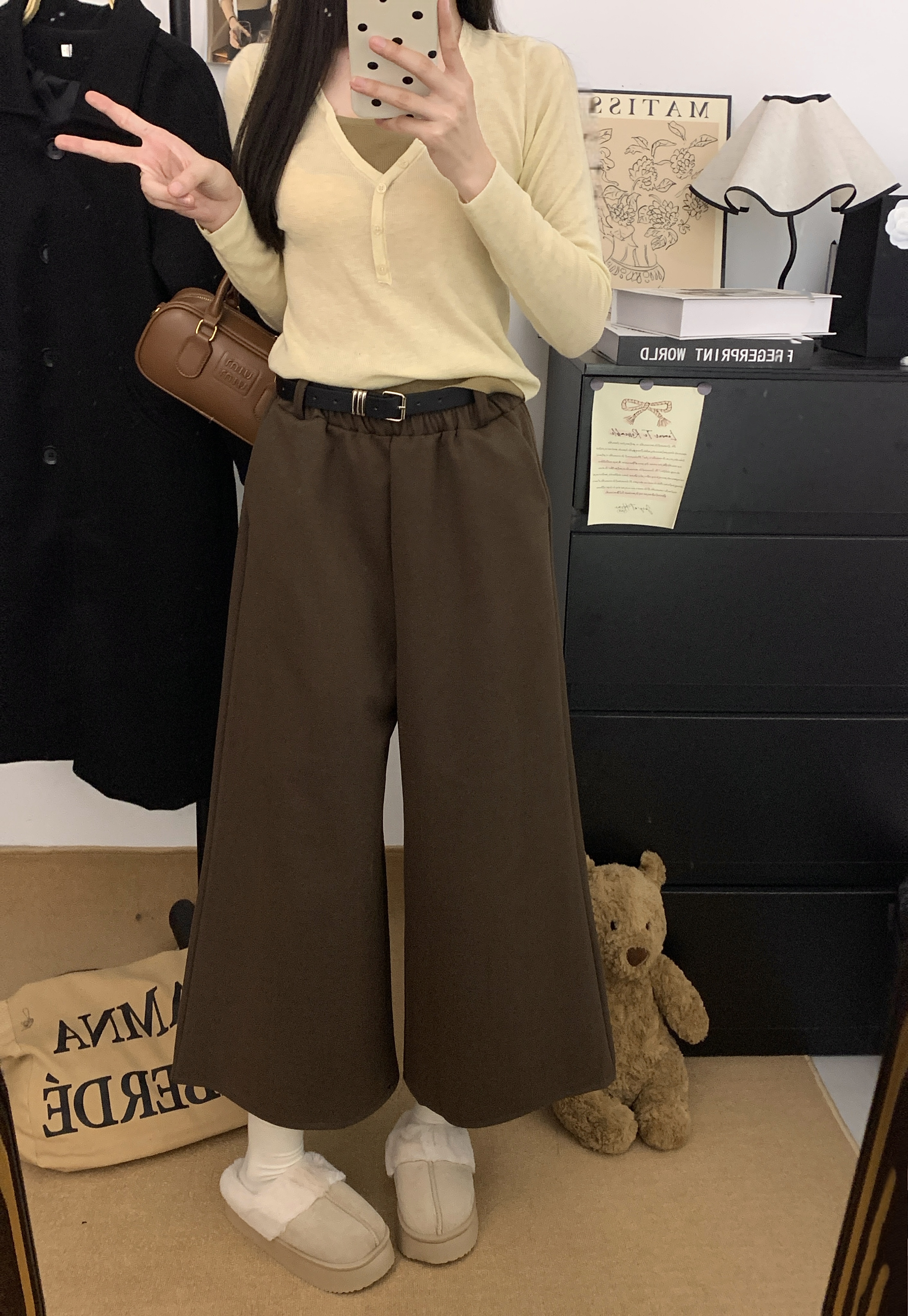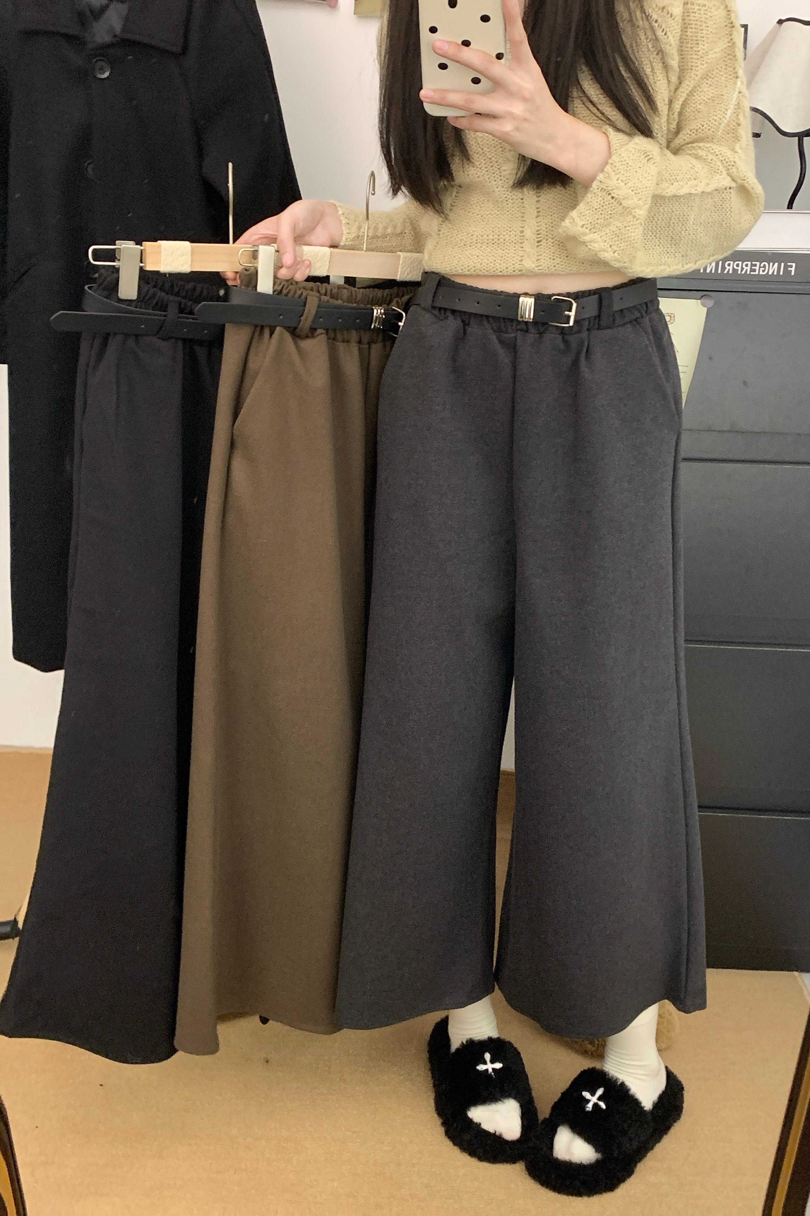 레트로 미니멀리즘 바람 두꺼운 모직 정장 바지 여성 가을 겨울 새로운 캐주얼 도루 센스 세련된 다용도 넓은 다리 오부 바지