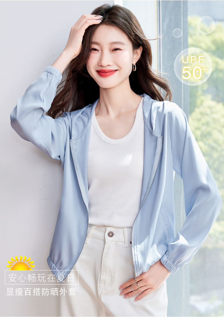 이 조각 작은 잘 생긴 배색 지퍼 아메리칸 여름 높음 거리 자외선 차단 의류 캐주얼 통기성 얇고 가벼운 여성 코트