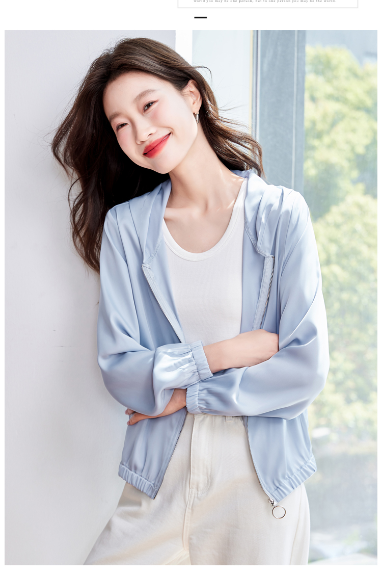 실사 봄 새로운 실크 공단 후드 자외선 차단 외투 캐주얼 다용도 맨위 여성 있음 선적