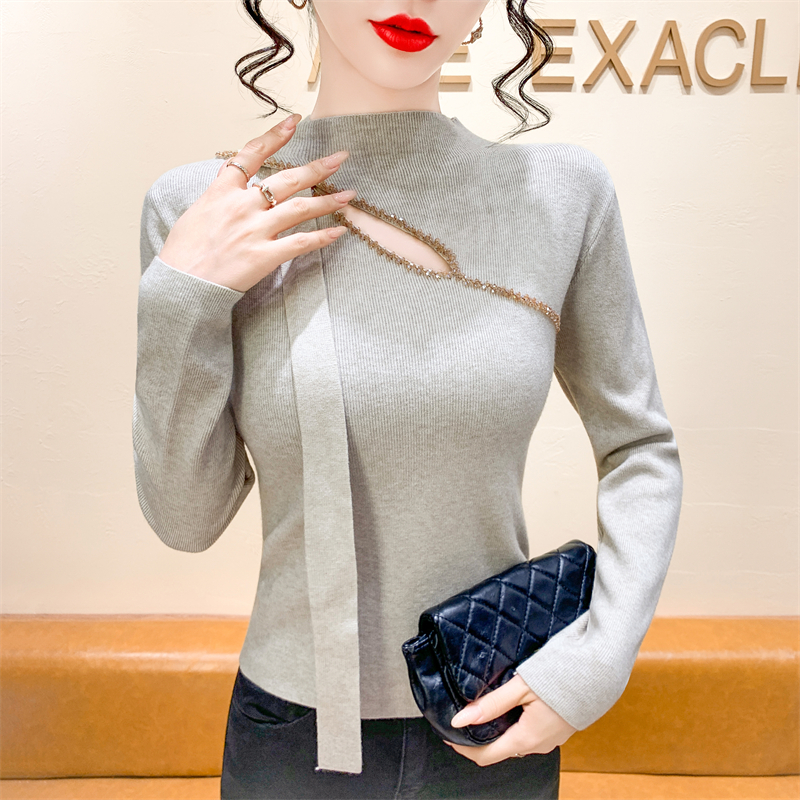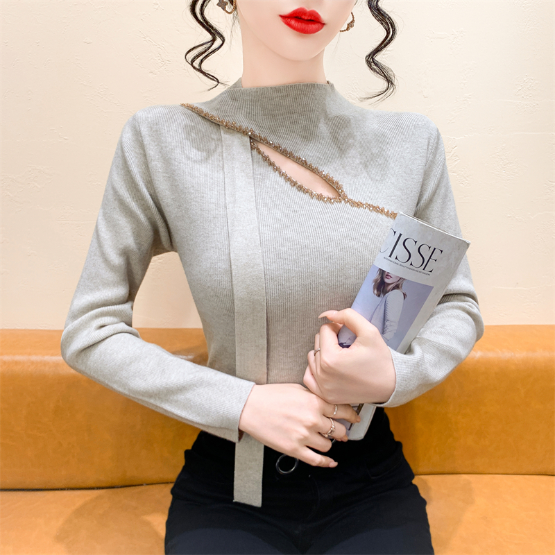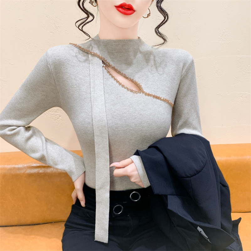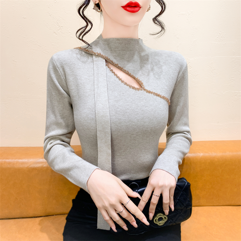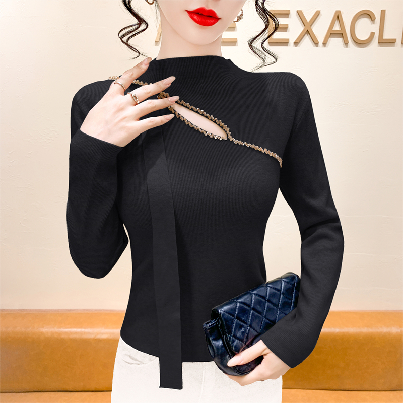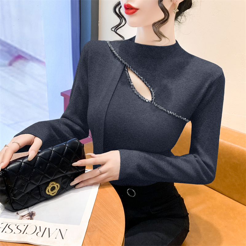 실사 반하이넥 디자인 센스 홀로우 아웃 못 훈련 맨위 가을 겨울 새로운 프랑스식 품격 슬림해 보이는 니트 스웨터 스웨터