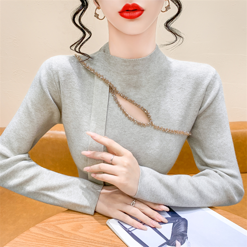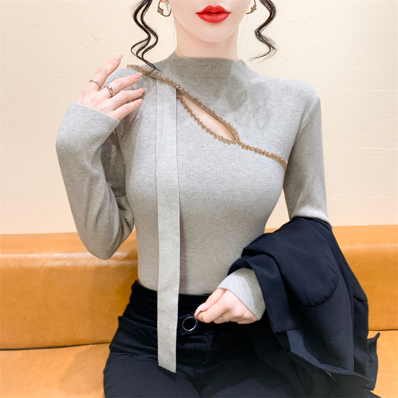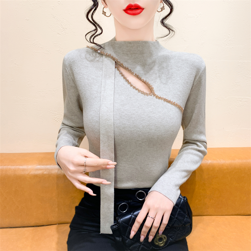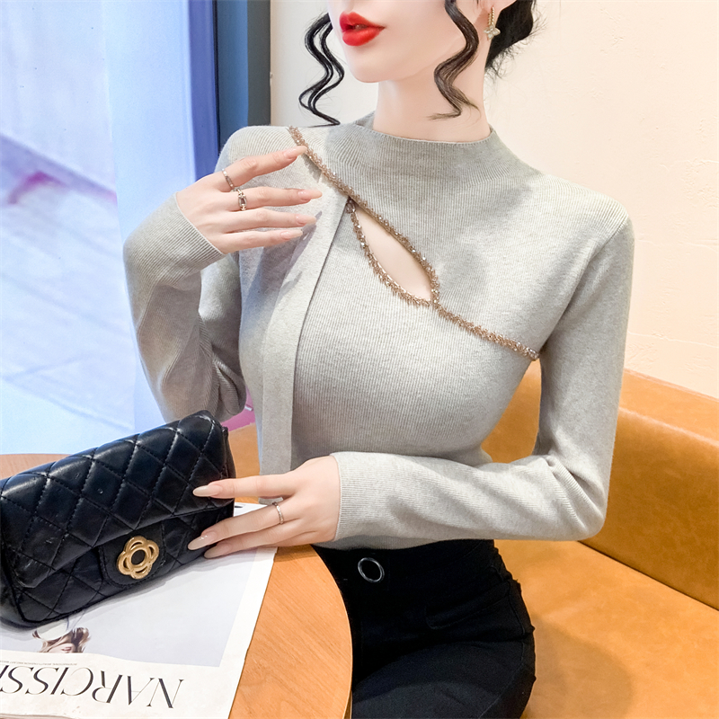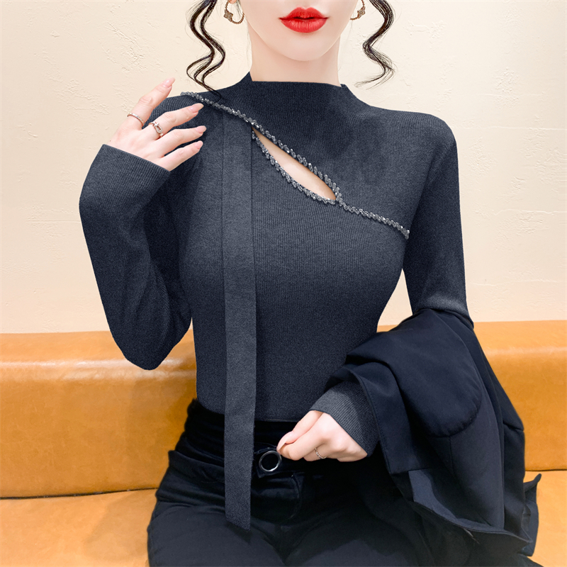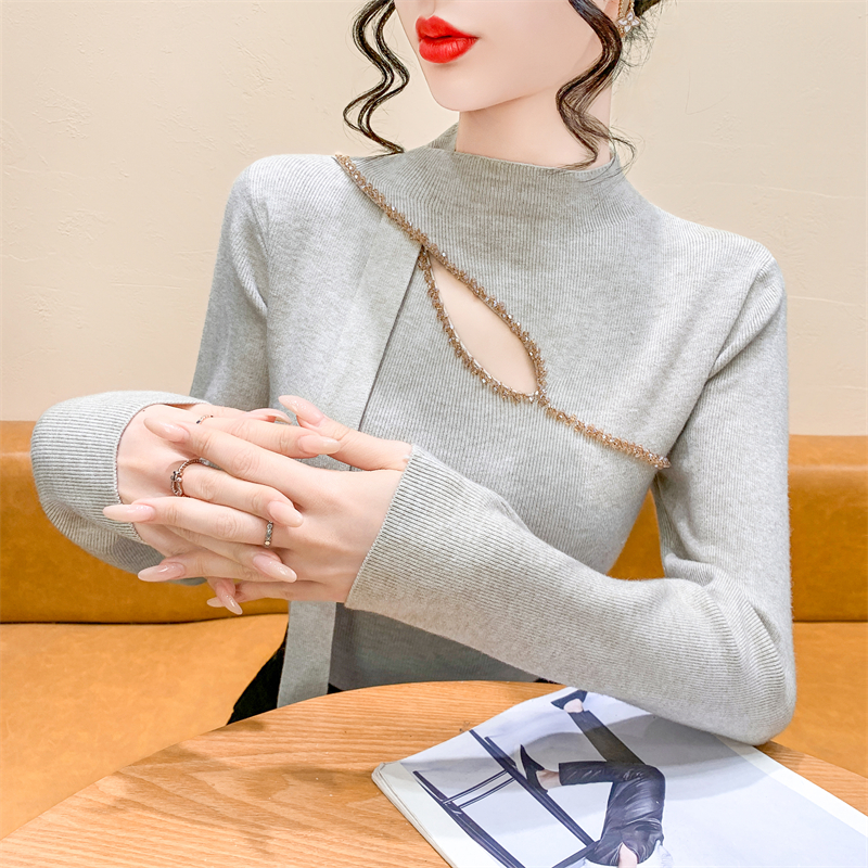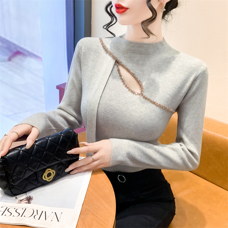 실사 반하이넥 디자인 센스 홀로우 아웃 못 훈련 맨위 가을 겨울 새로운 프랑스식 품격 슬림해 보이는 니트 스웨터 스웨터