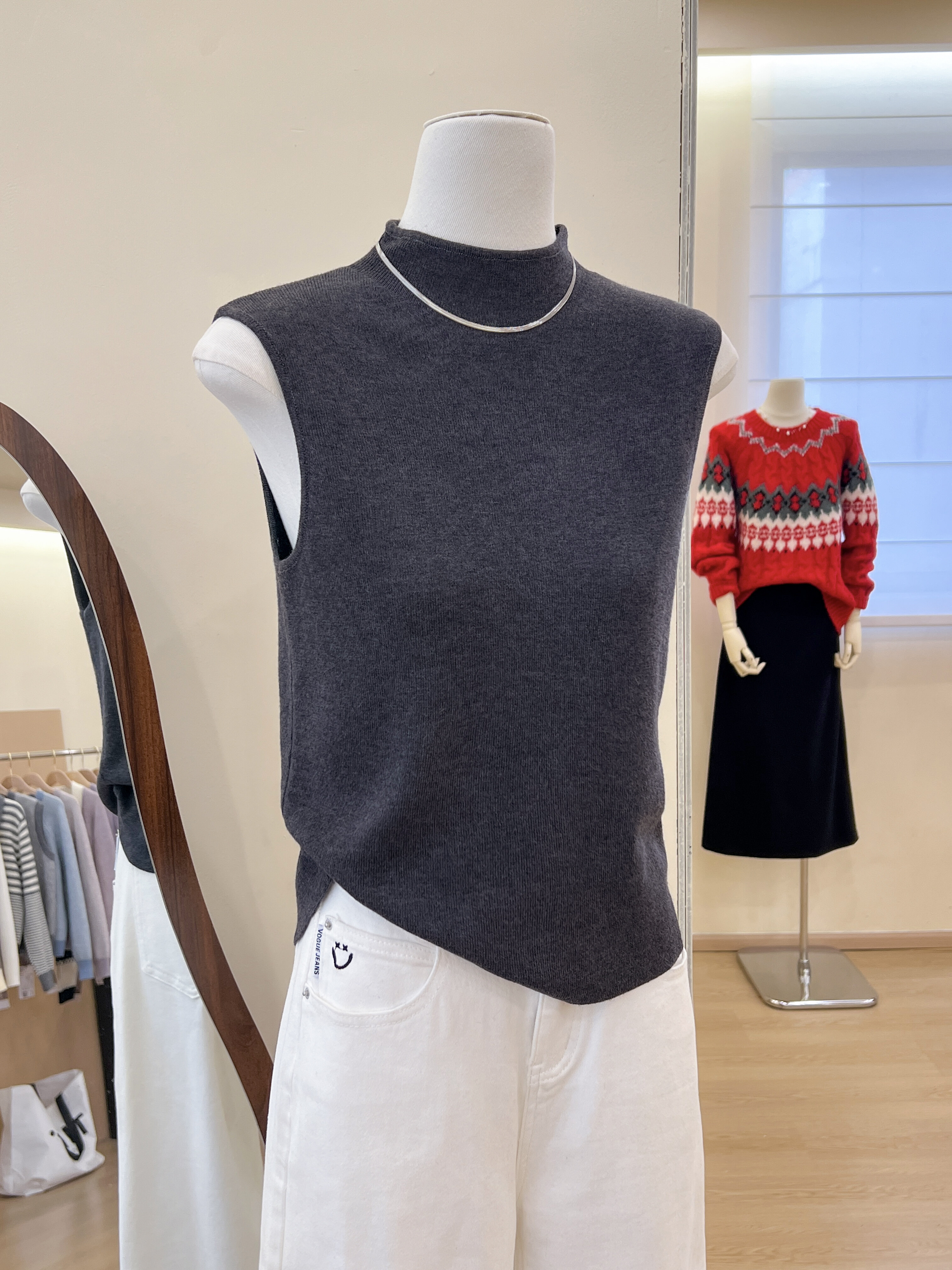 무쯔리 목자이 ~ 중 리 자수 빛 반사하다 주간 고급 부드러운 센스 3 차원 레이스 꽃 조끼 민소매 라운드 넥 맨위