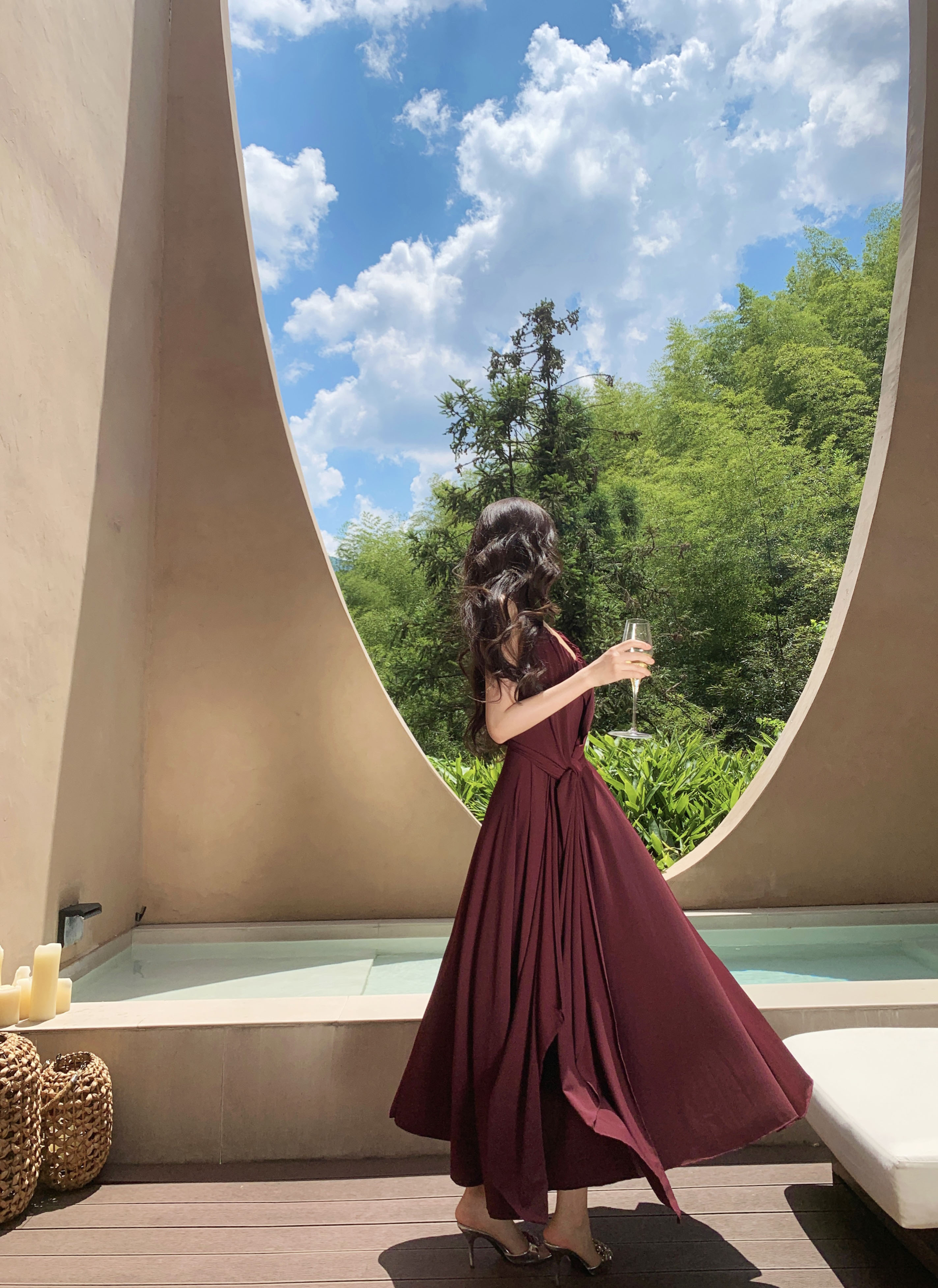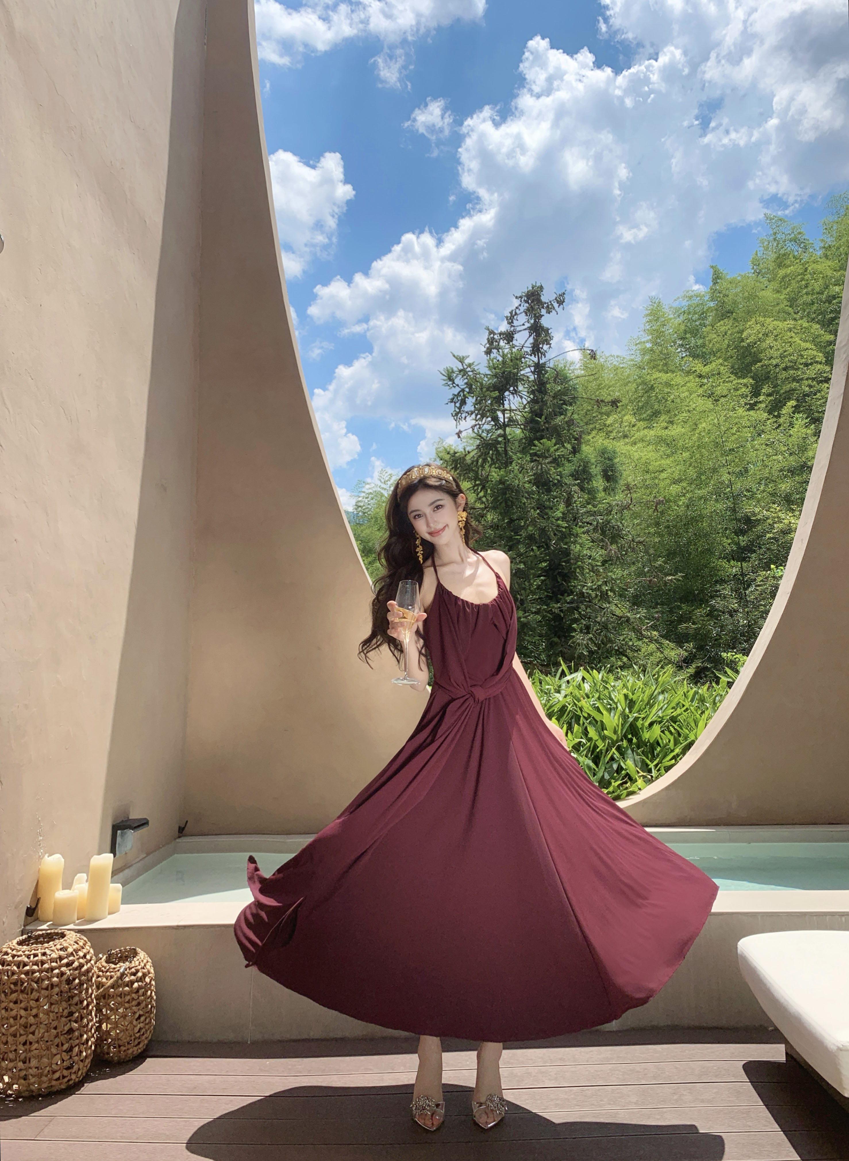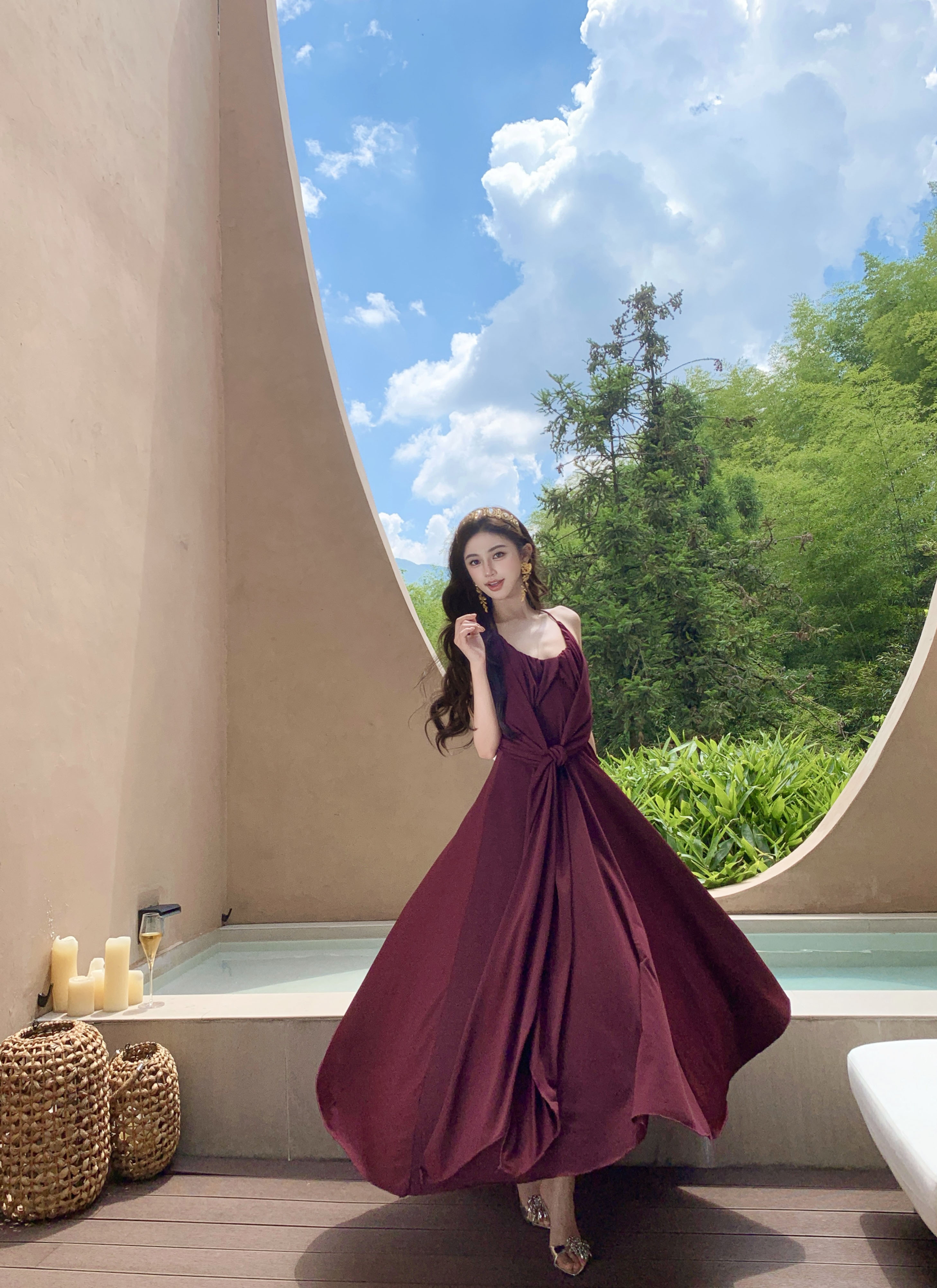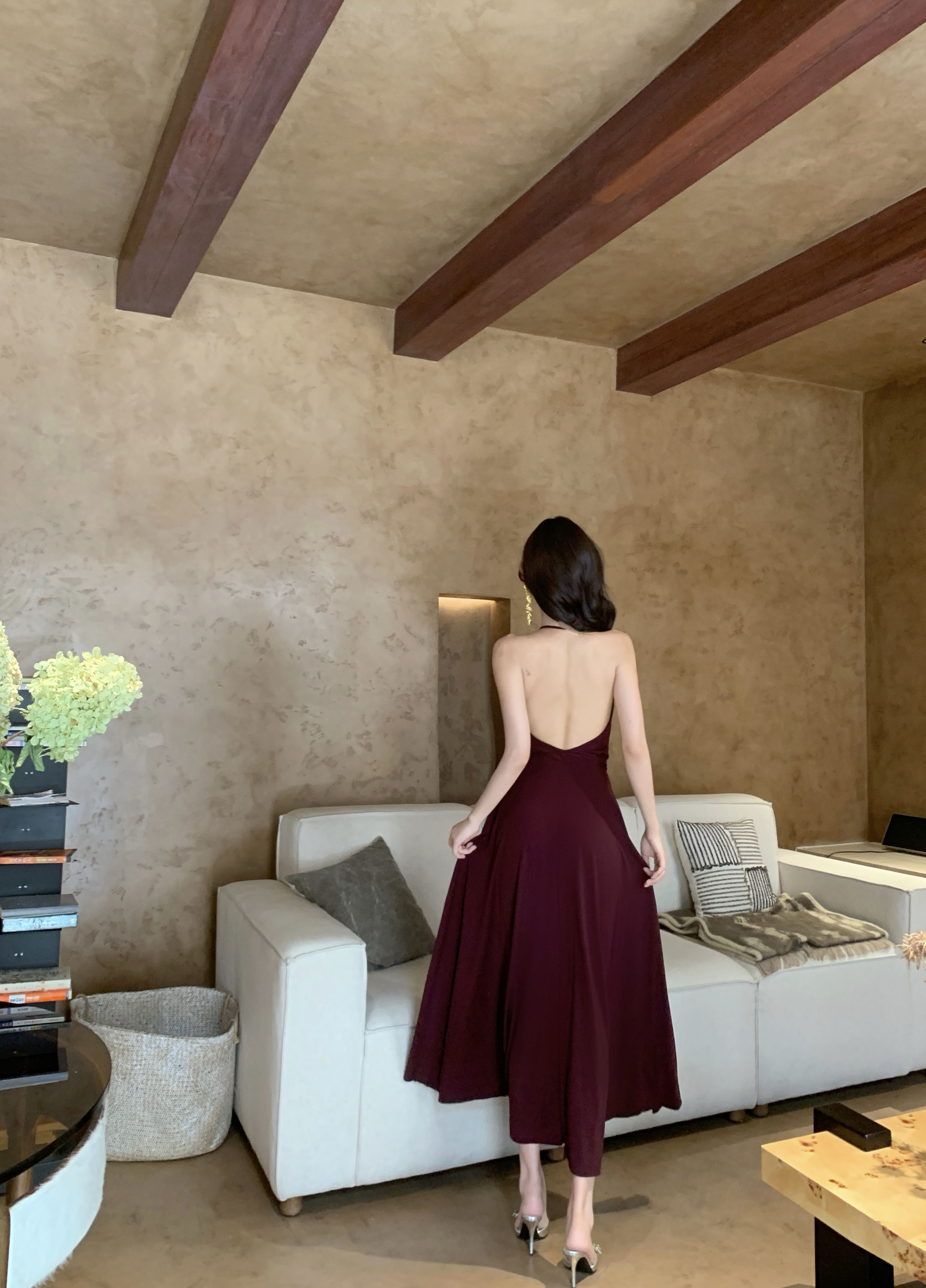 프랑스식 핫걸 순수한 욕망 바람 센스 백리스 슬립 여성 드레스 여름 새로운 품격 허리 수축 슬림해 보이는 큰 진자 롱 스커트