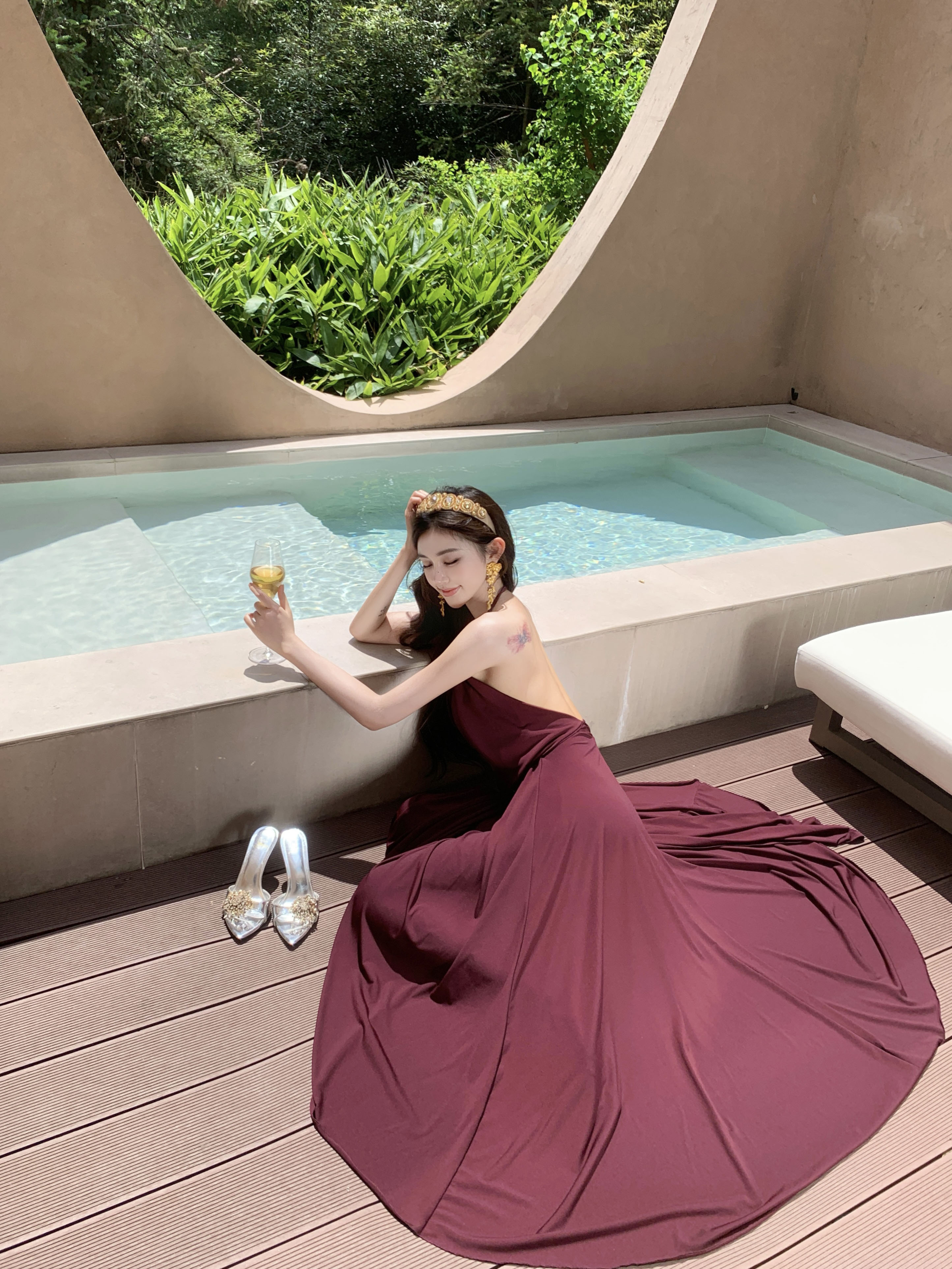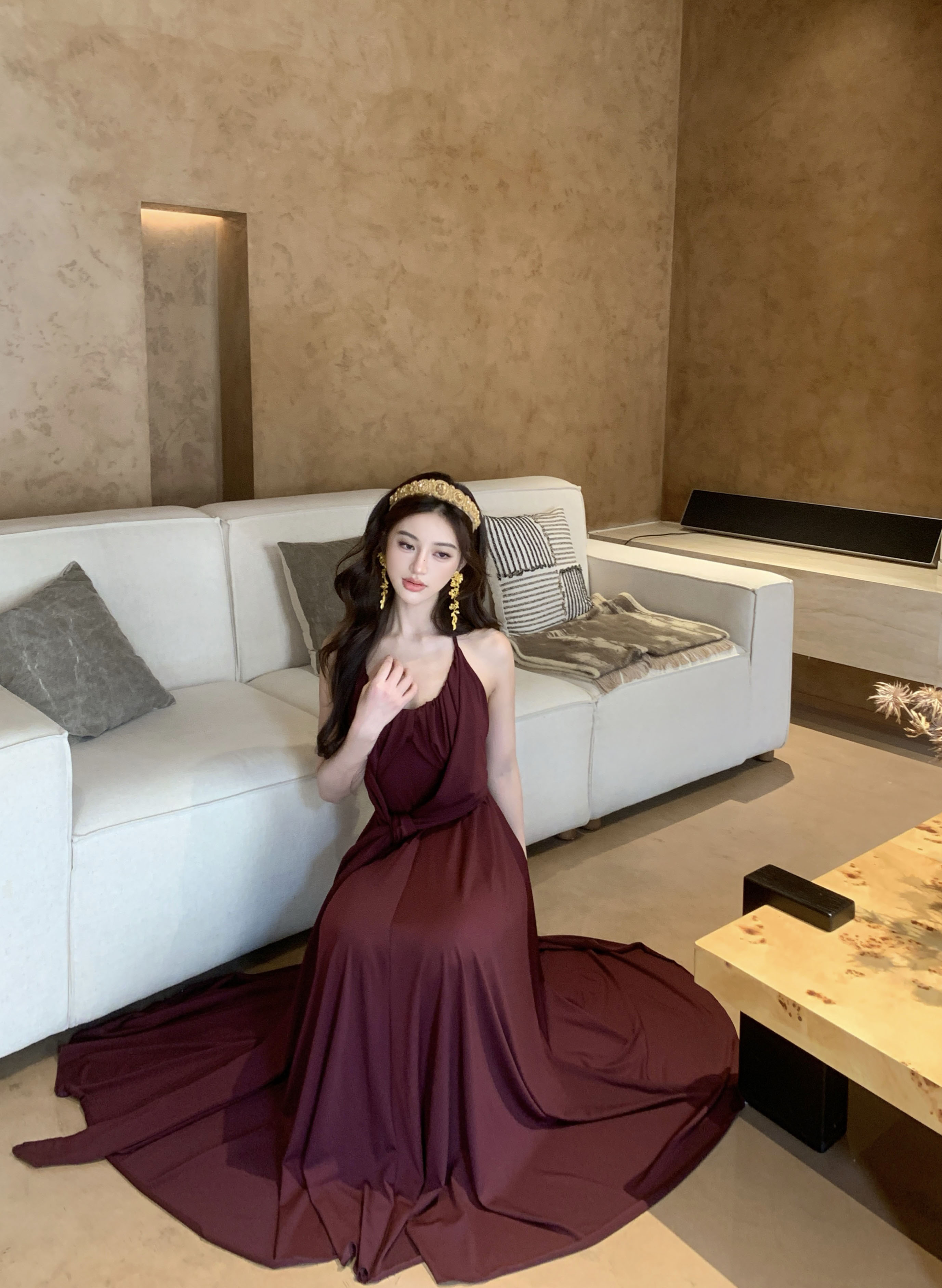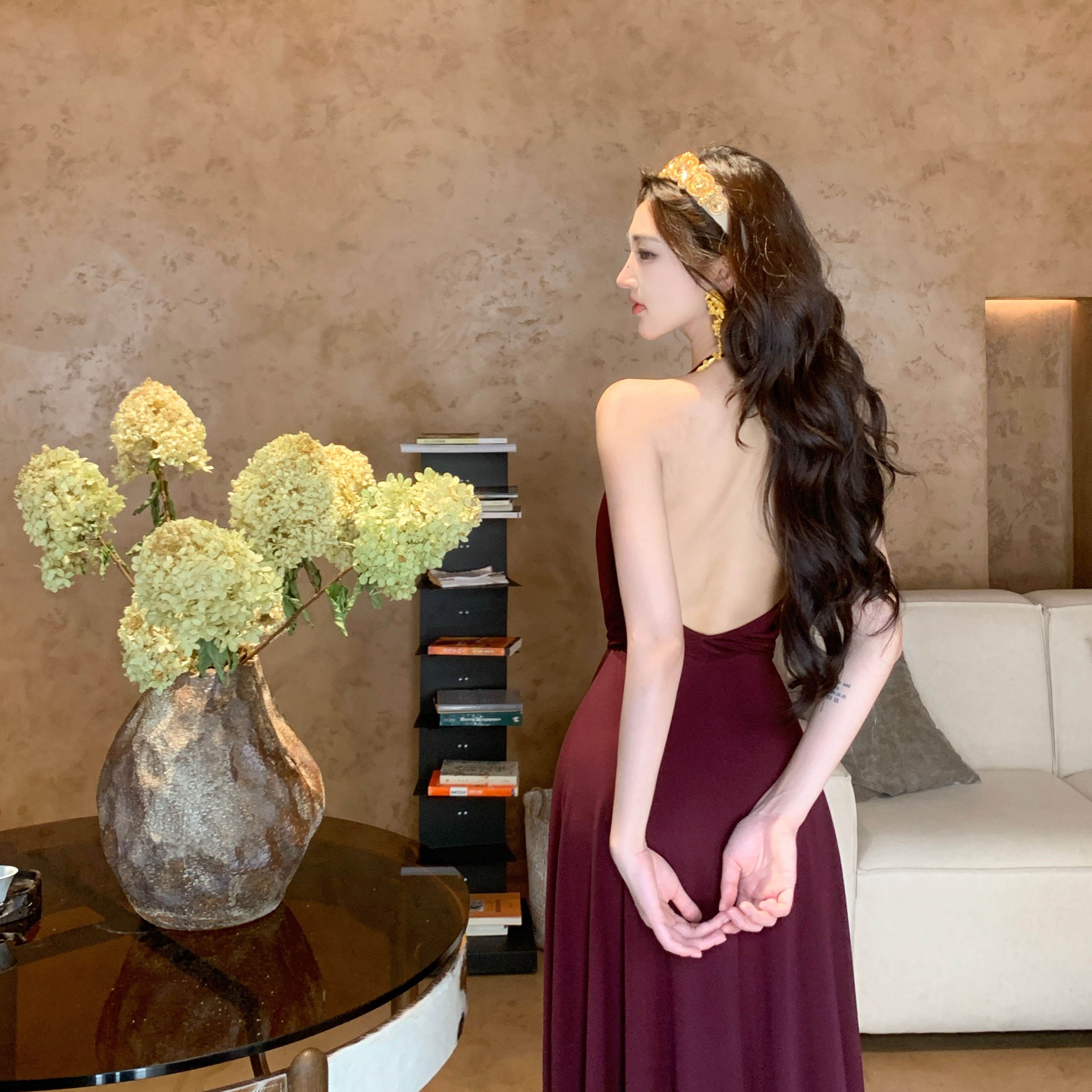 순수한 욕망 빛 럭셔리 명문 여성 섹시함 튀김 거리 품격 백리스 슬립 주름 타이트 스커트 점프 슈트 치마 검정색 작은 드레스 롱 스커트