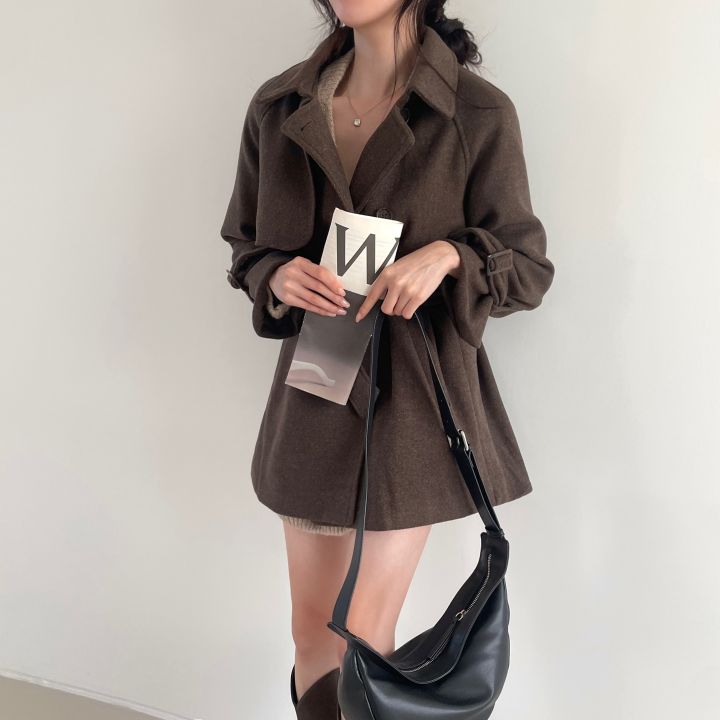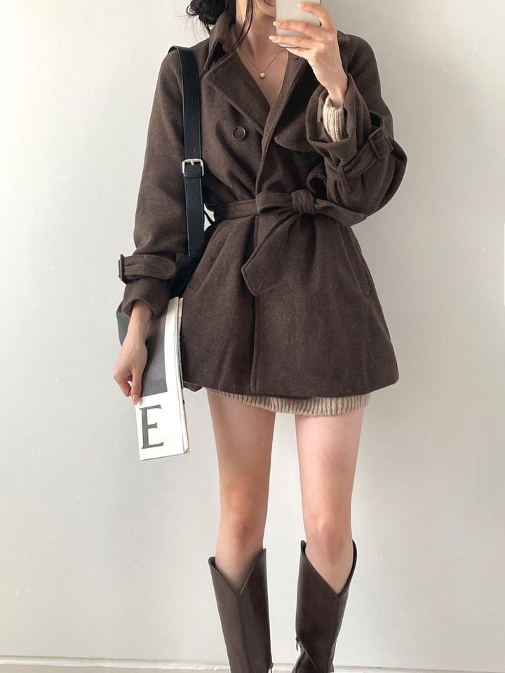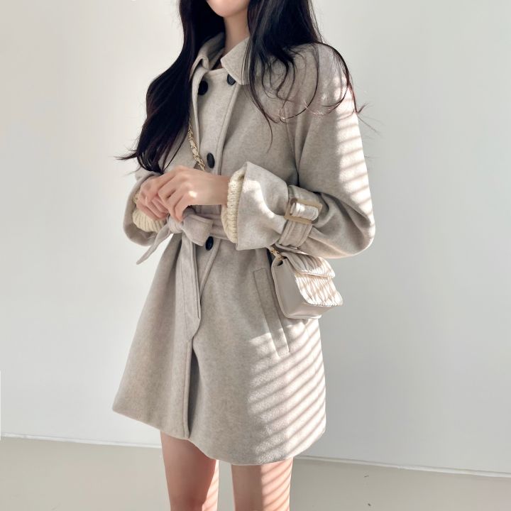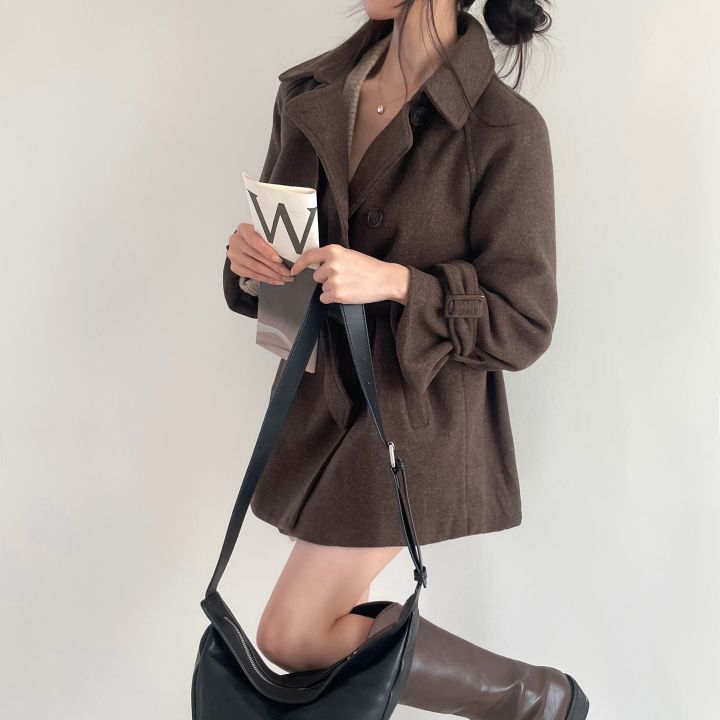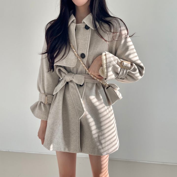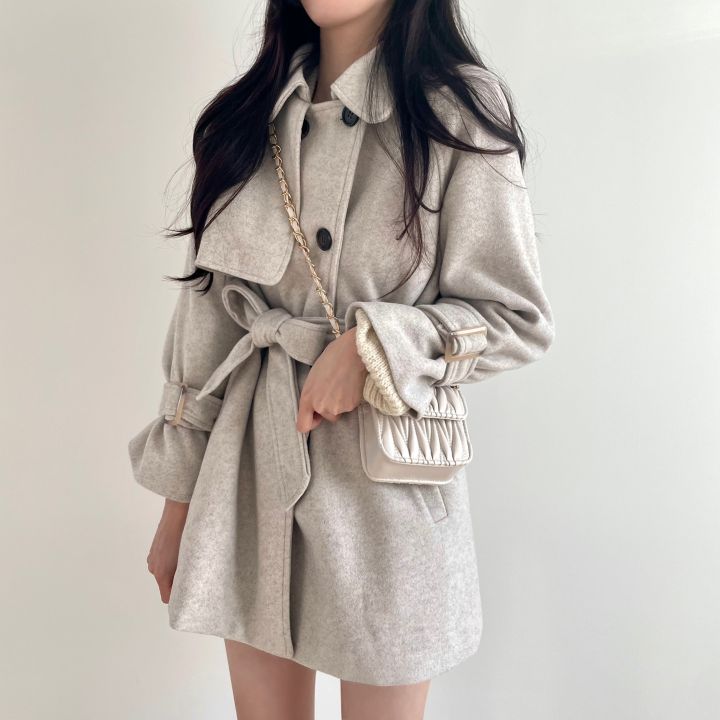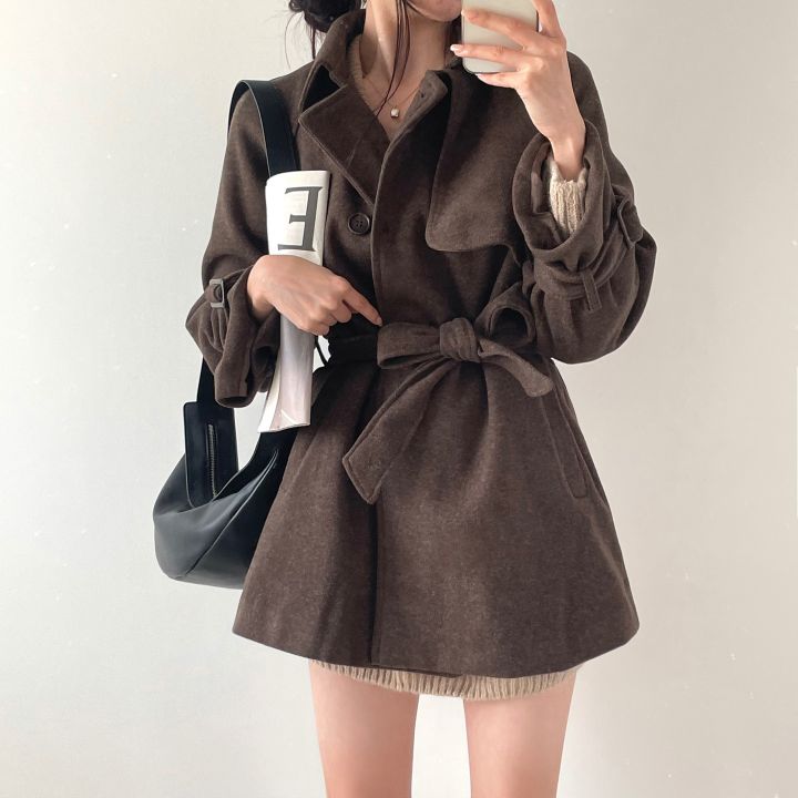 크기 있음 업데이트 chic 가을과 겨울 한국어 버전 패션 단순한 옷깃 레이스 레트로 재킷 털이 많은 외투