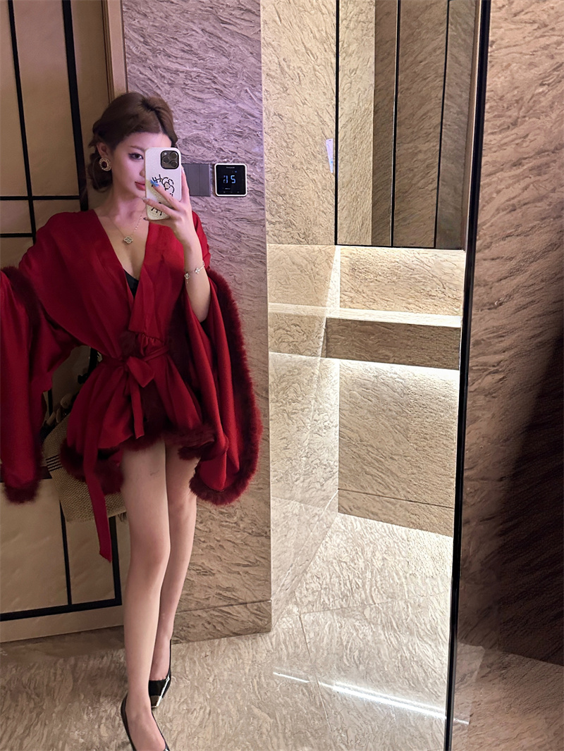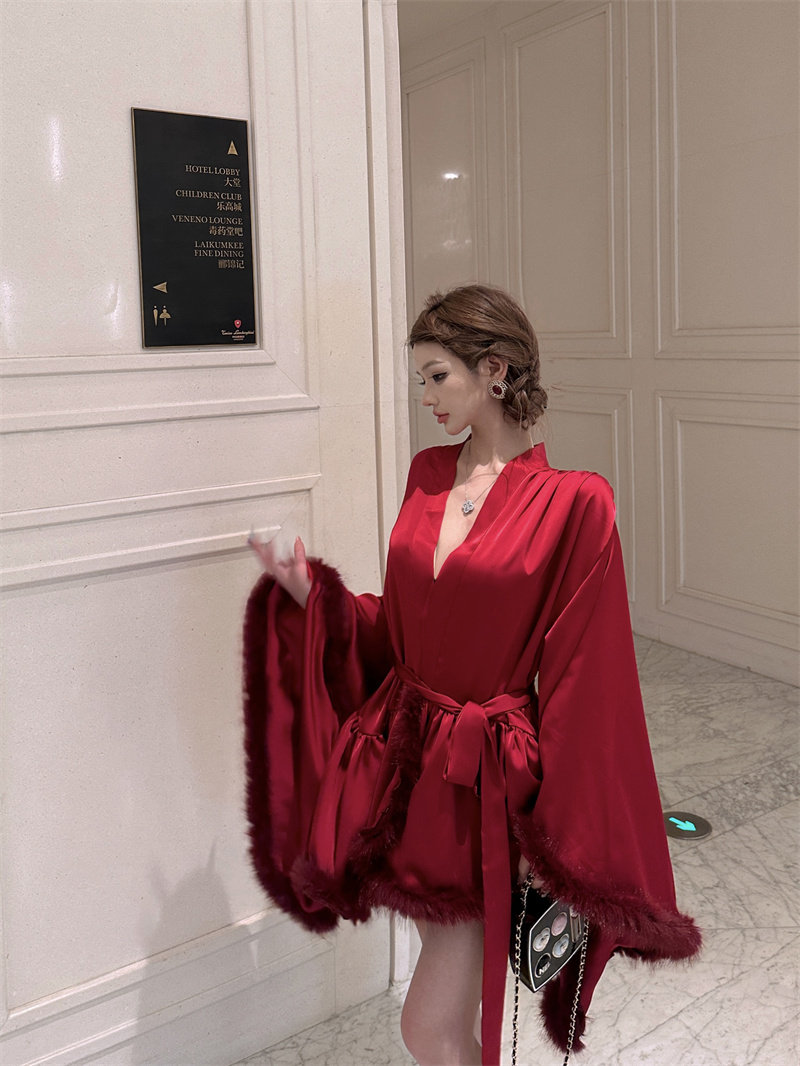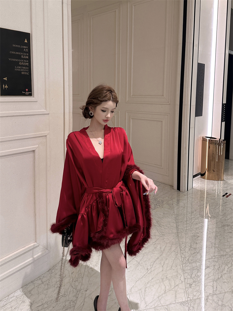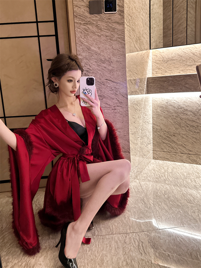 실사 새로운 중식 아침 로브 여성 신부 섹시함 나이트 가운 결혼식 아침 요정 고급 센스 깃털 잠옷 로브