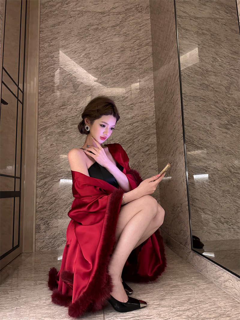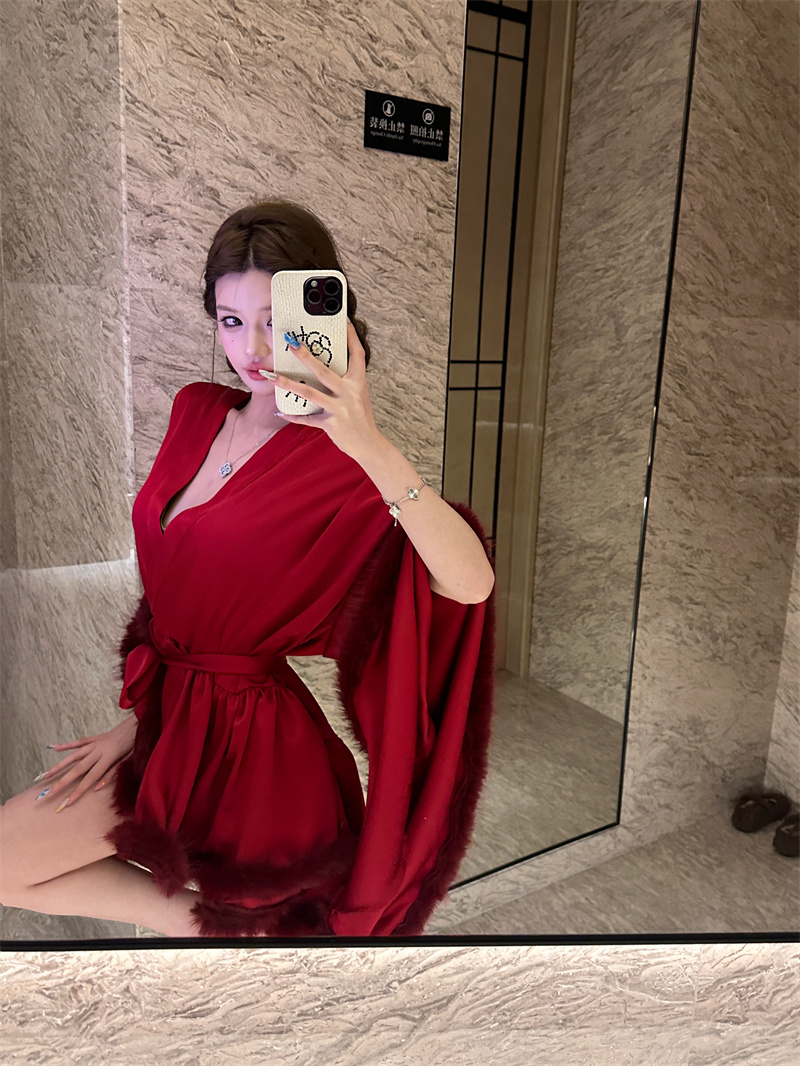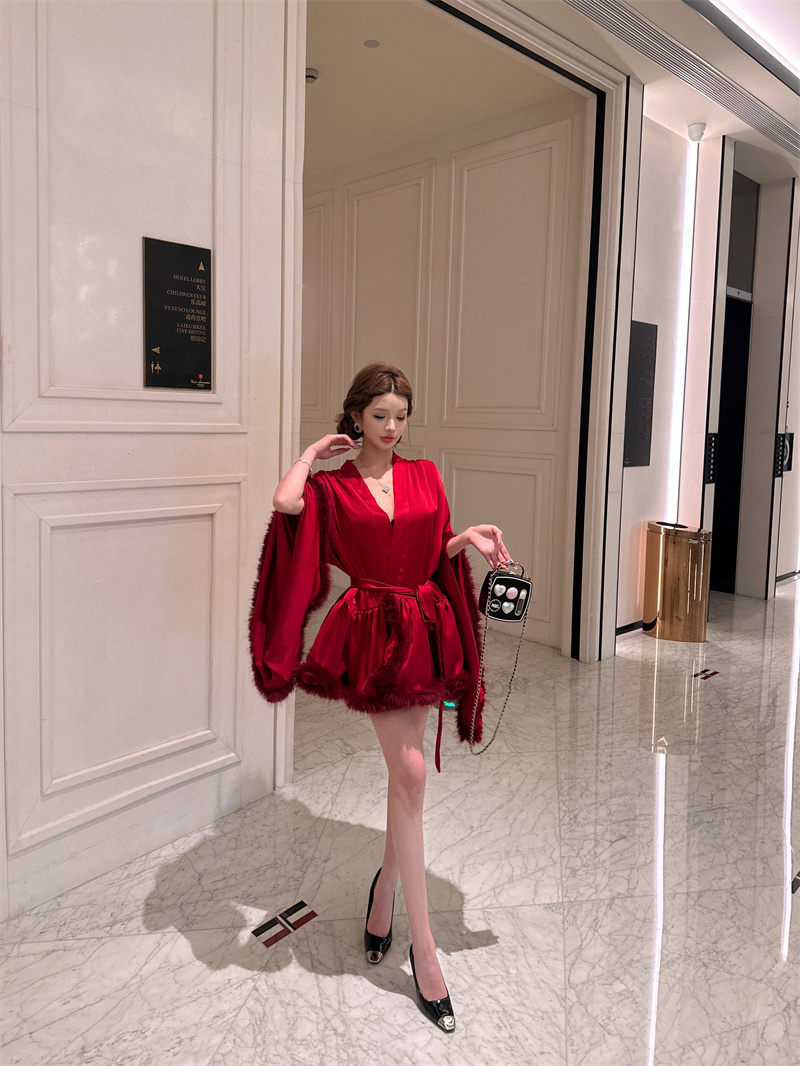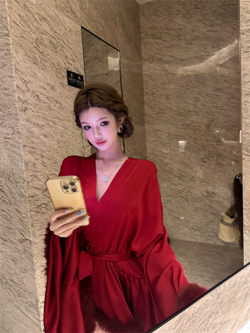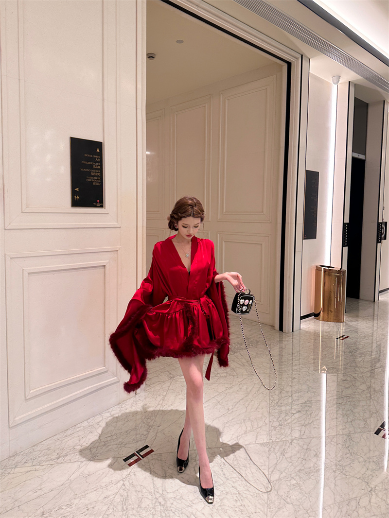 실사 새로운 중식 아침 로브 여성 신부 섹시함 나이트 가운 결혼식 아침 요정 고급 센스 깃털 잠옷 로브