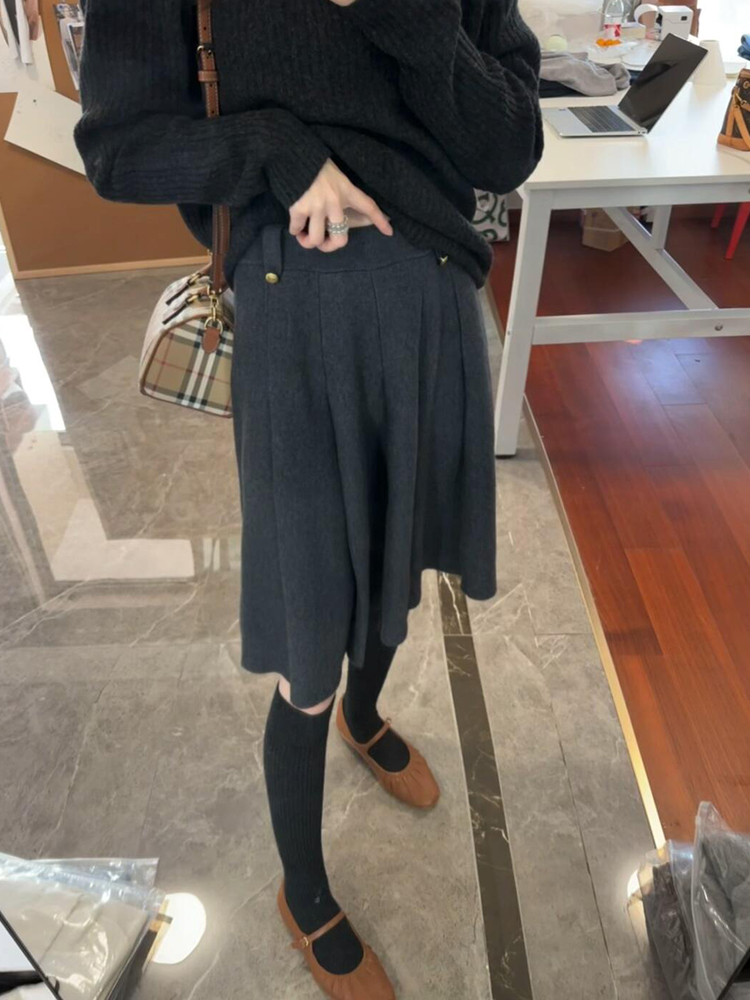 가을 겨울 두꺼운 2025 한국 스타일 다용도 슬림해 보이는 도루 센스 표지 십자가 부드러운 플리츠 털실 니트 반신 스커트