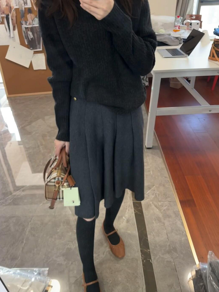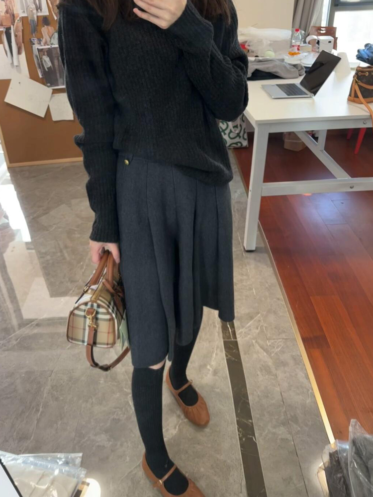 새로운 2025 가을 겨울 품격 우아함 부드러운 부서 도루 센스 다용도 슬림해 보이는 털실 니트 반신 스커트 여성