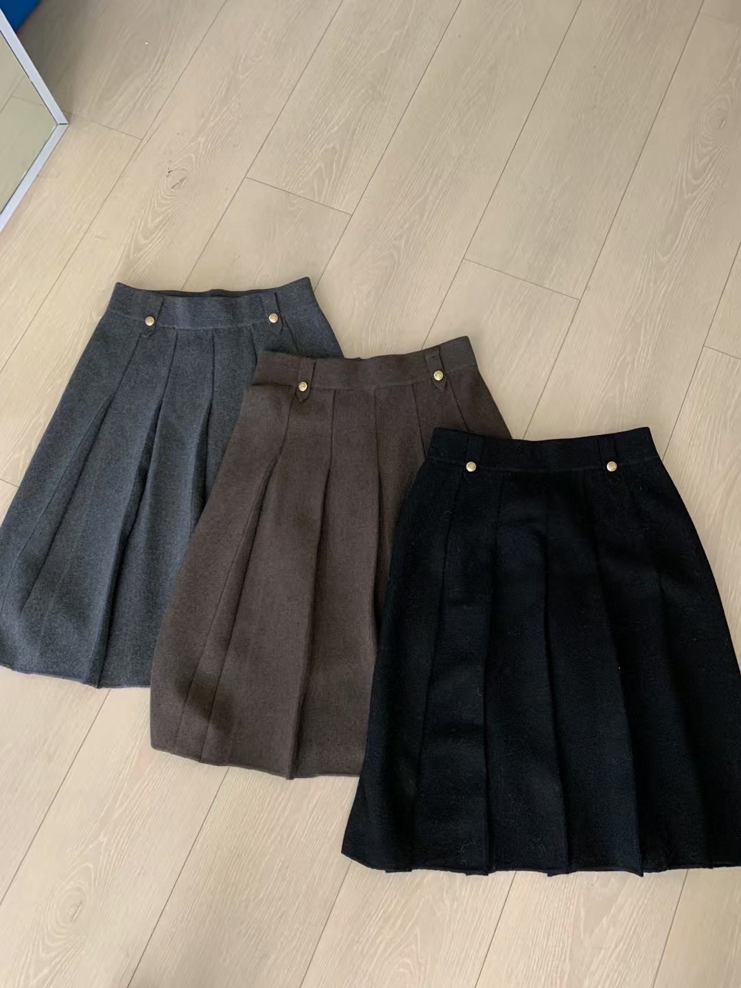 핏 스타일 슈퍼 긍정적 인 ~ 중 회색 니트 플리츠 스커트 여성 가을 겨울 한 부서 다용도 포함 양모 반신 스커트