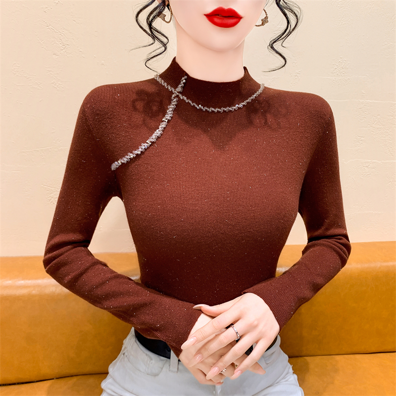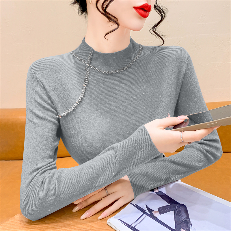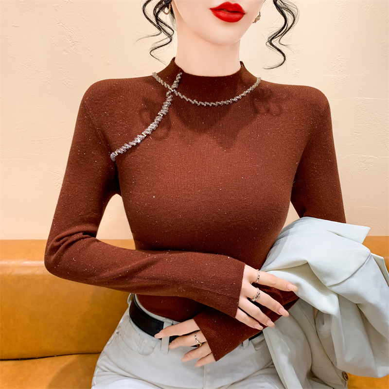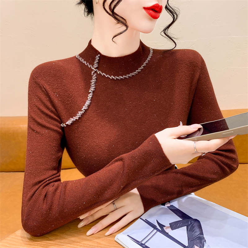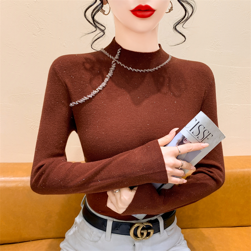 실사 가을 겨울 새로운 반하이넥 레이스 못 훈련 고급 센스 니트 스웨터 외국 가스 슬림해 보이는 기본 셔츠 맨위