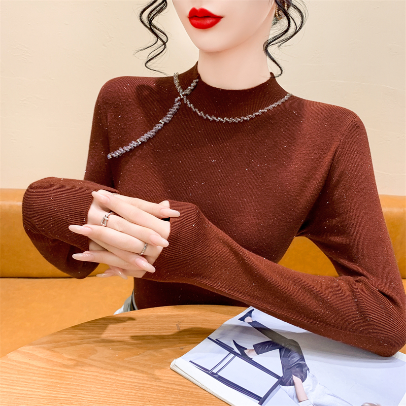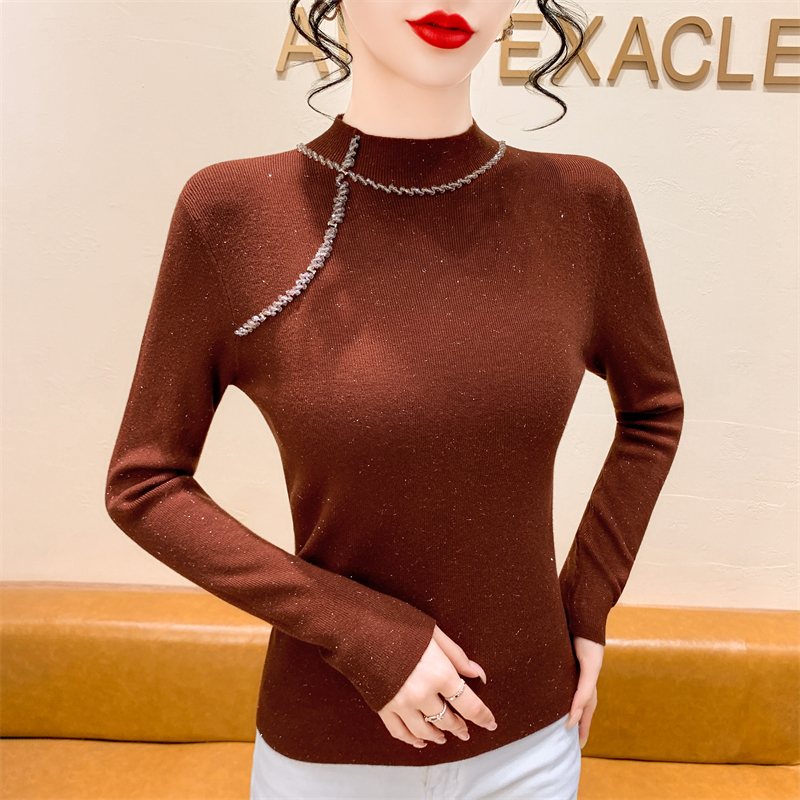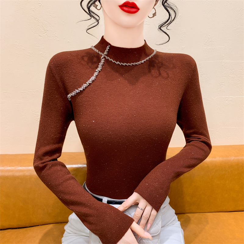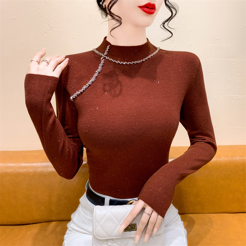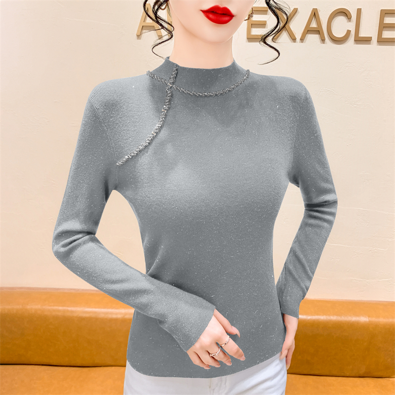 실사 가을 겨울 새로운 반하이넥 레이스 못 훈련 고급 센스 니트 스웨터 외국 가스 슬림해 보이는 기본 셔츠 맨위