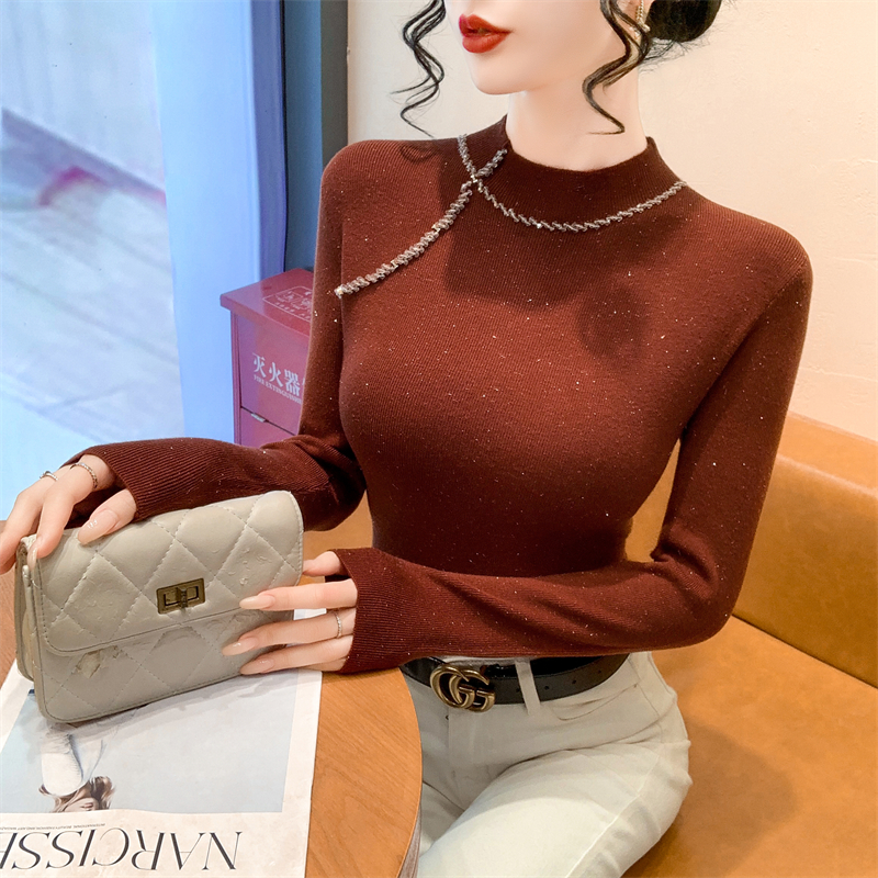 실사 가을 겨울 새로운 프랑스식 샤오시엔 인터넷 오프숄더 주문 훈련 니트 스웨터 작은 대중 슬림해 보이는 기본 셔츠 스웨터