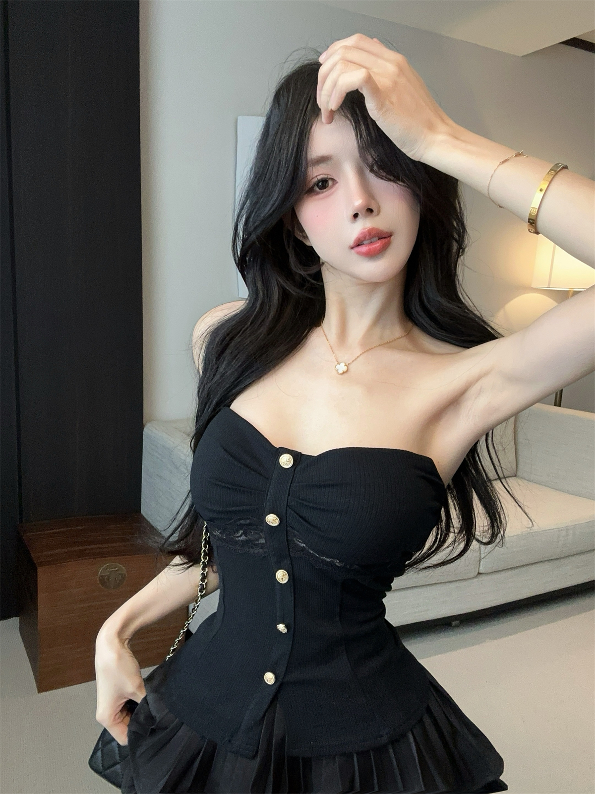 실제 촬영 정가 레이스 스티치 순수한 욕망 튜브 톱 스플릿 맨위 포장 가슴 조끼 여성 봄과 여름