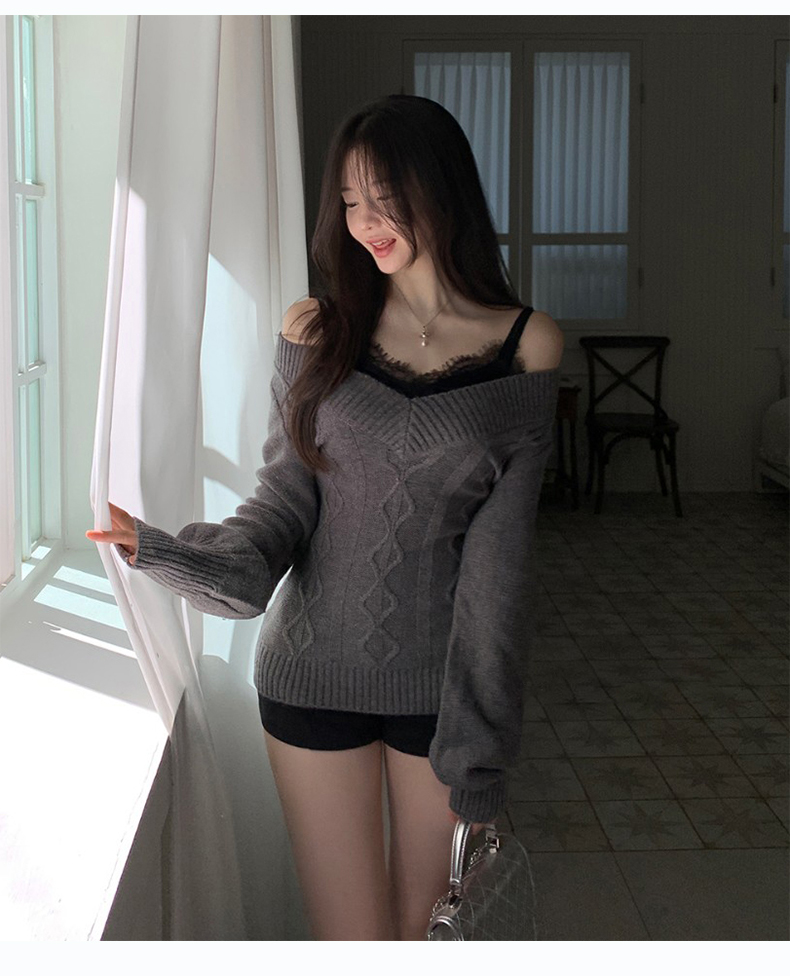 한국 동대문 신제품 로우 프로파일 다시 핫걸 섹시함 디스플레이 가슴 폴로 칼라 레이스업 몸매 가꾸기 니트 오픈 가디건 se
