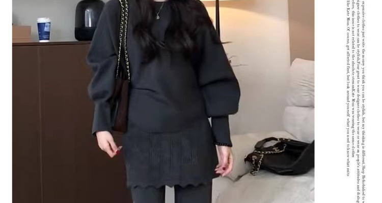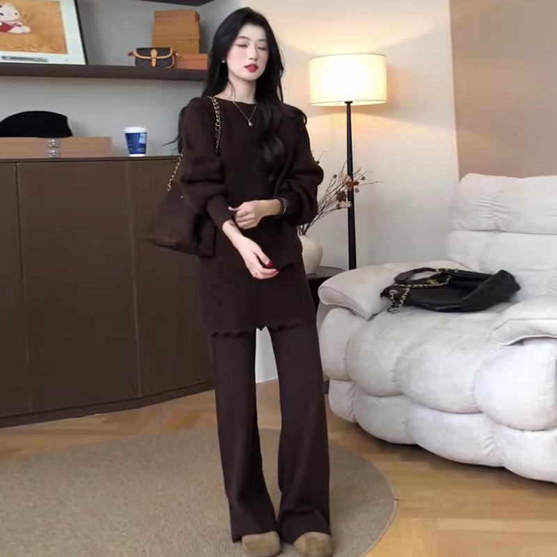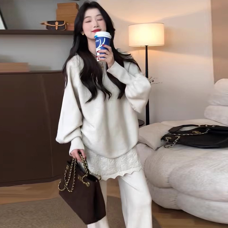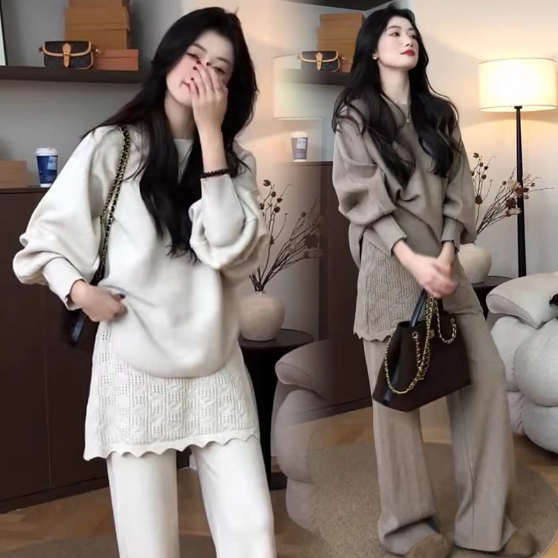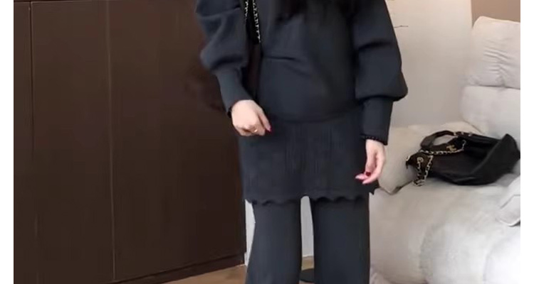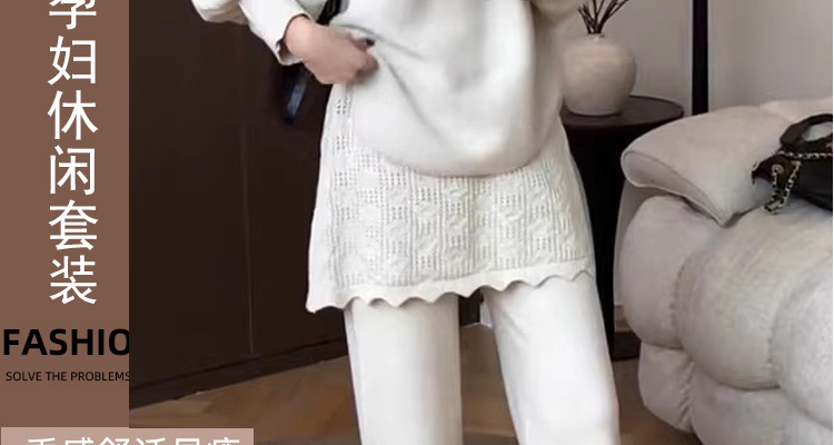 신제품 임산부 느긋한 캐주얼 세트 가을 겨울 새로운 니트 스웨터 스웨터 방귀 커튼 바지 투피스 세트 착용 가져 가라.