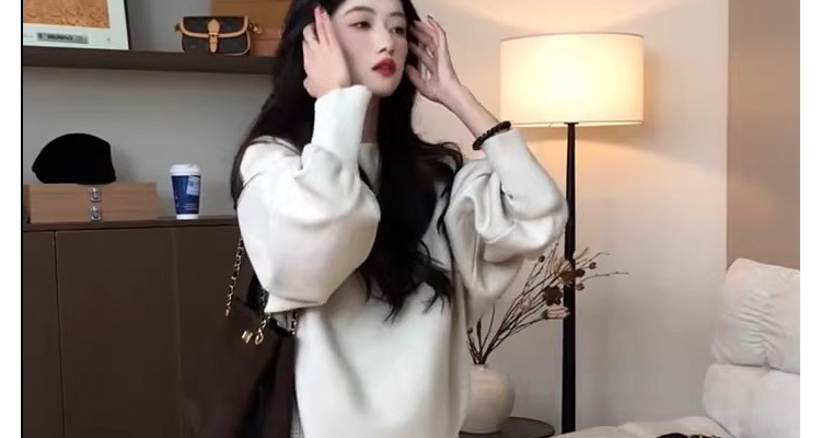 실사 봄 드레스 한국 스타일 출산 착용 라운드 넥 루즈핏 슬림해 보이는 패션 다용도 자수 작은 곰 후드티