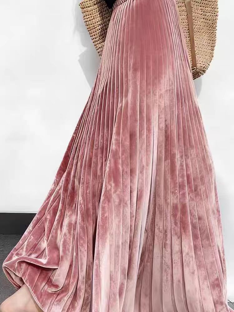 중요 경우 아름다운 치마 하이웨이스트 품격 경기 코트 한 마디 빅 플레어 스커트 핑크색 벨벳 반신 스커트 여성 가을 겨울