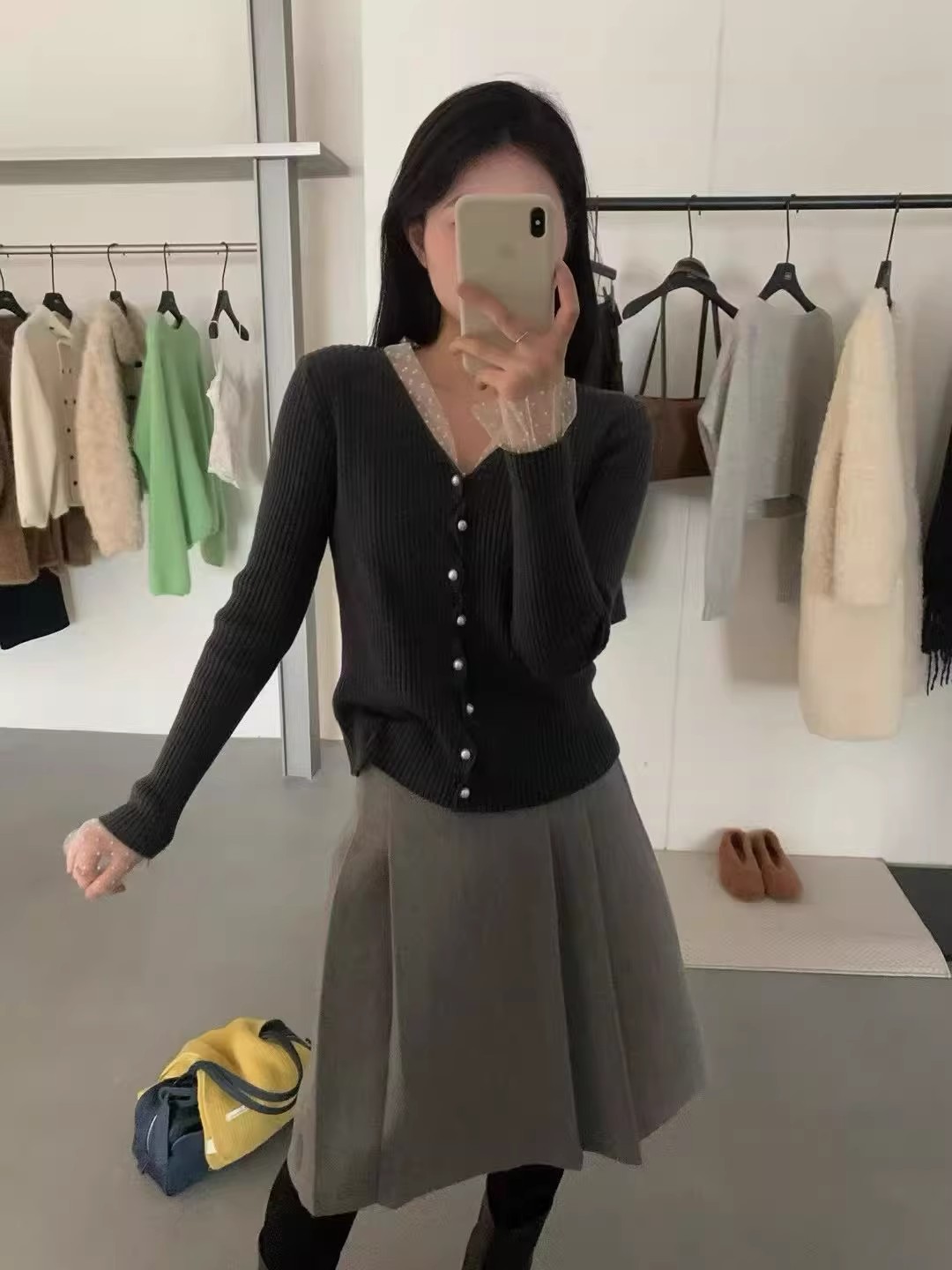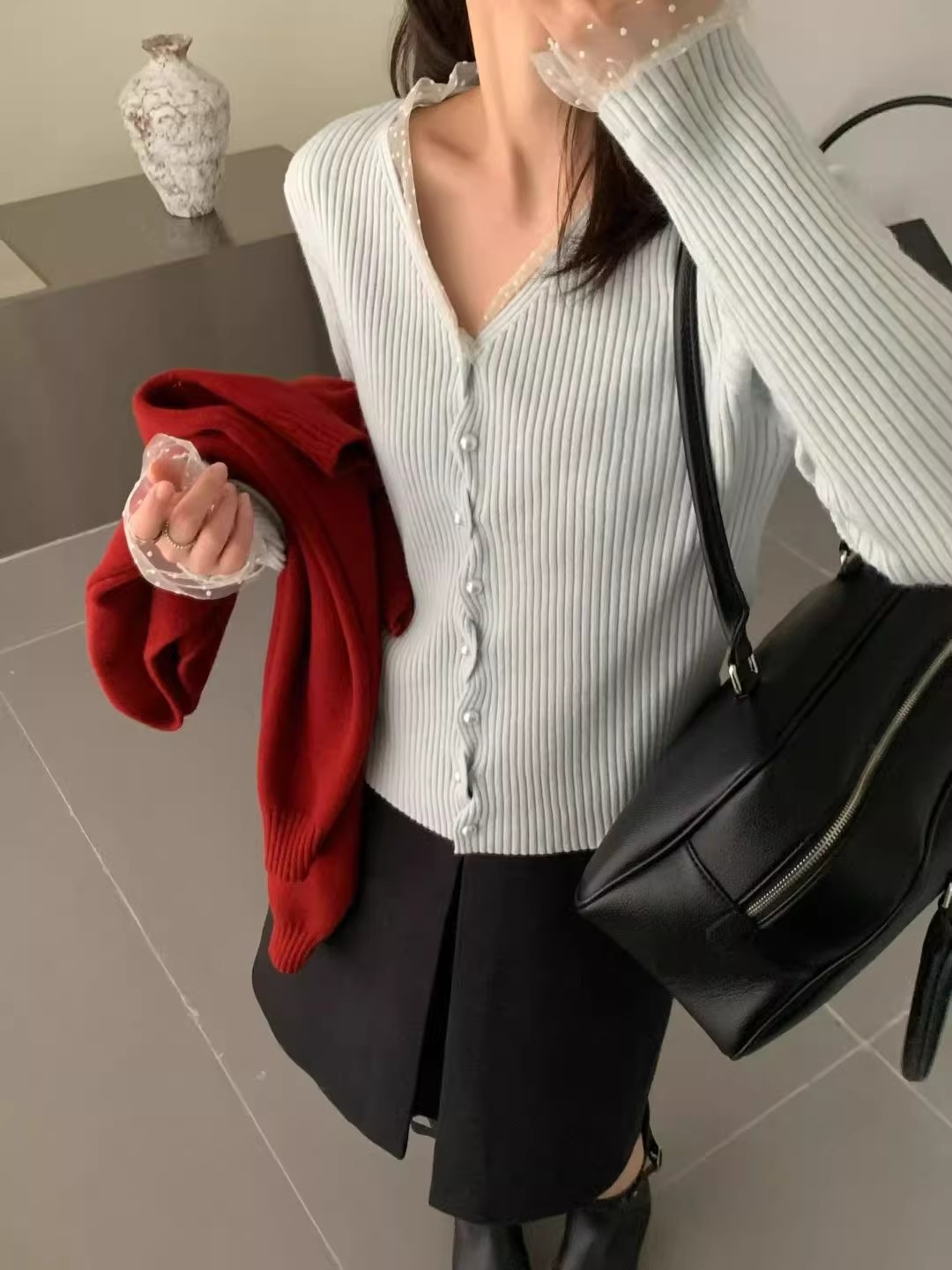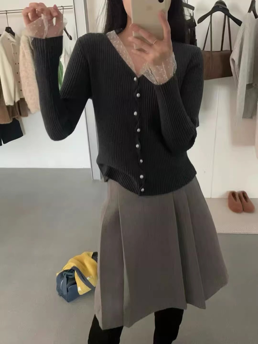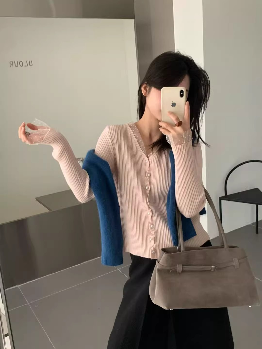 한 부서 고유 한 아름다운 핑크색 진주 버클 니트 오픈 가디건 여성 코트 이른 봄 부드러운 다용도 쇼트 스타일 긴팔 맨위
