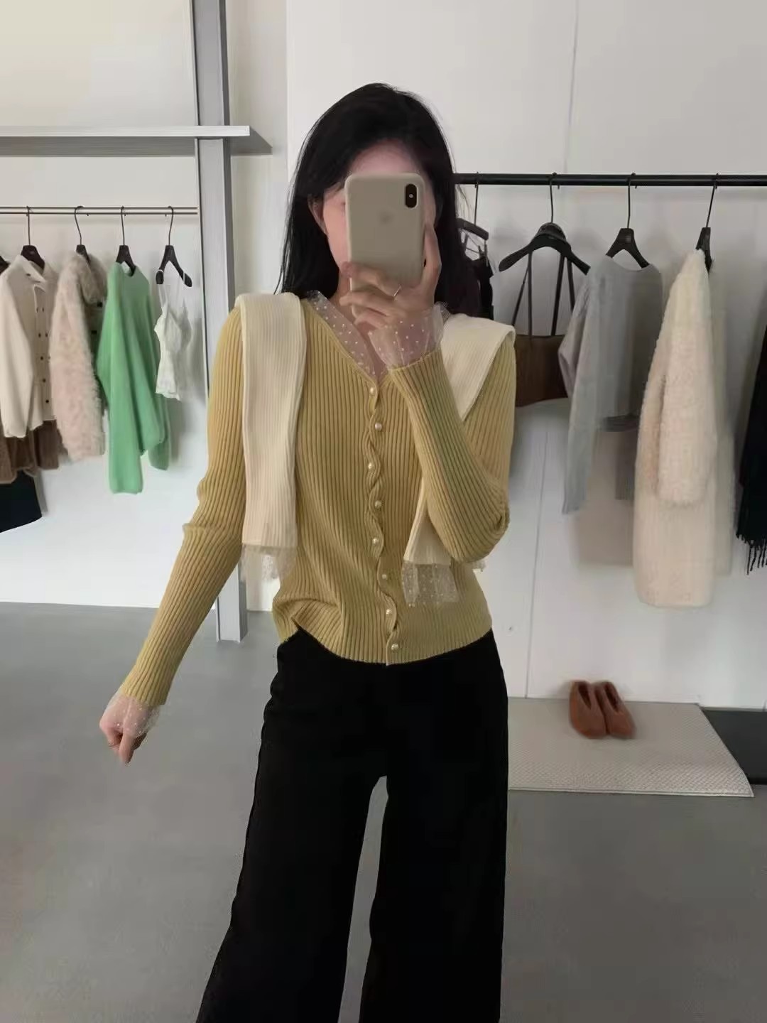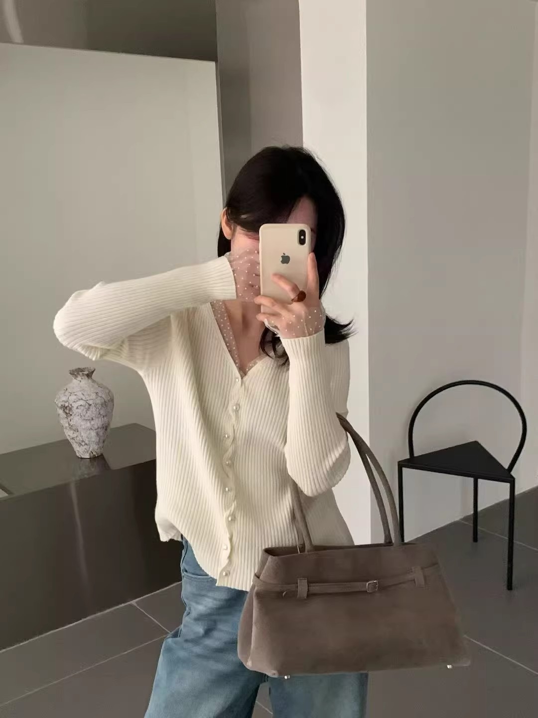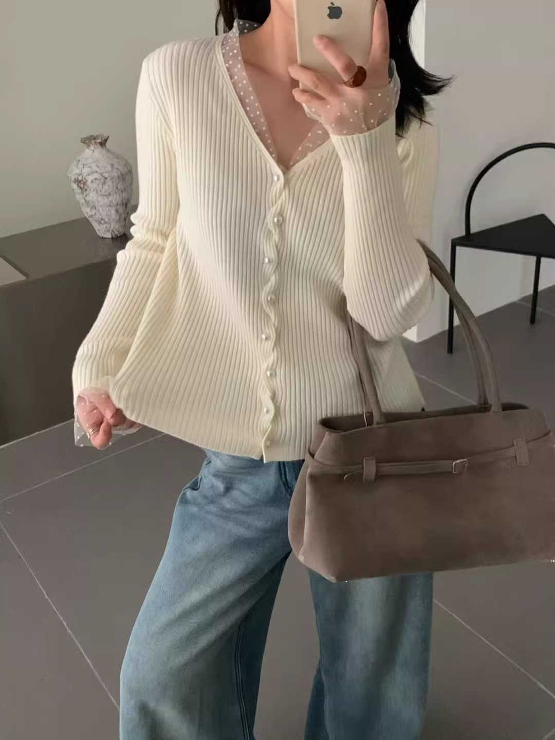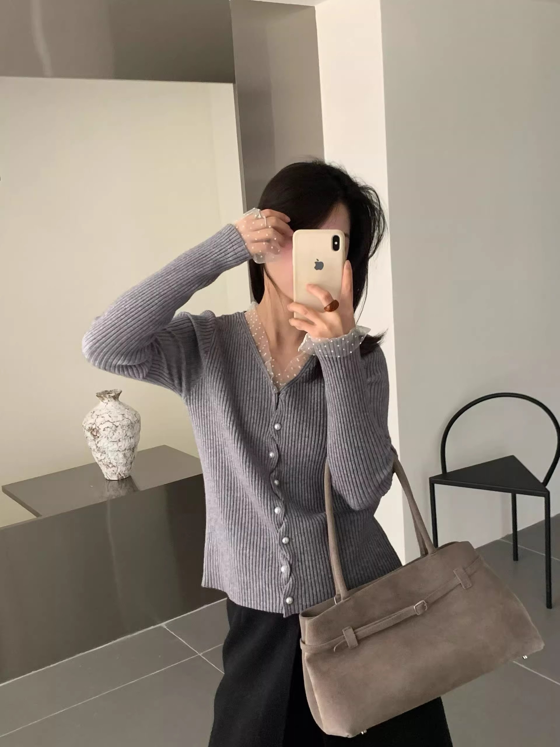 화이트 V넥 레이스 측면 길이 소매 여성 2026 봄 여름 새로운 우아함 바람 패션 품격 고급 센스 맨위