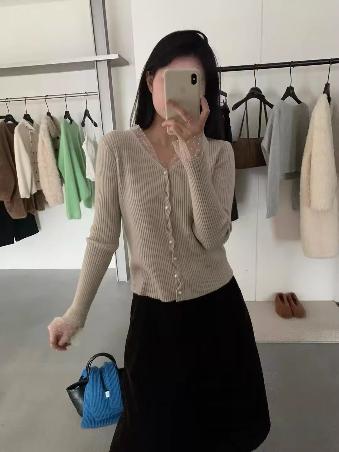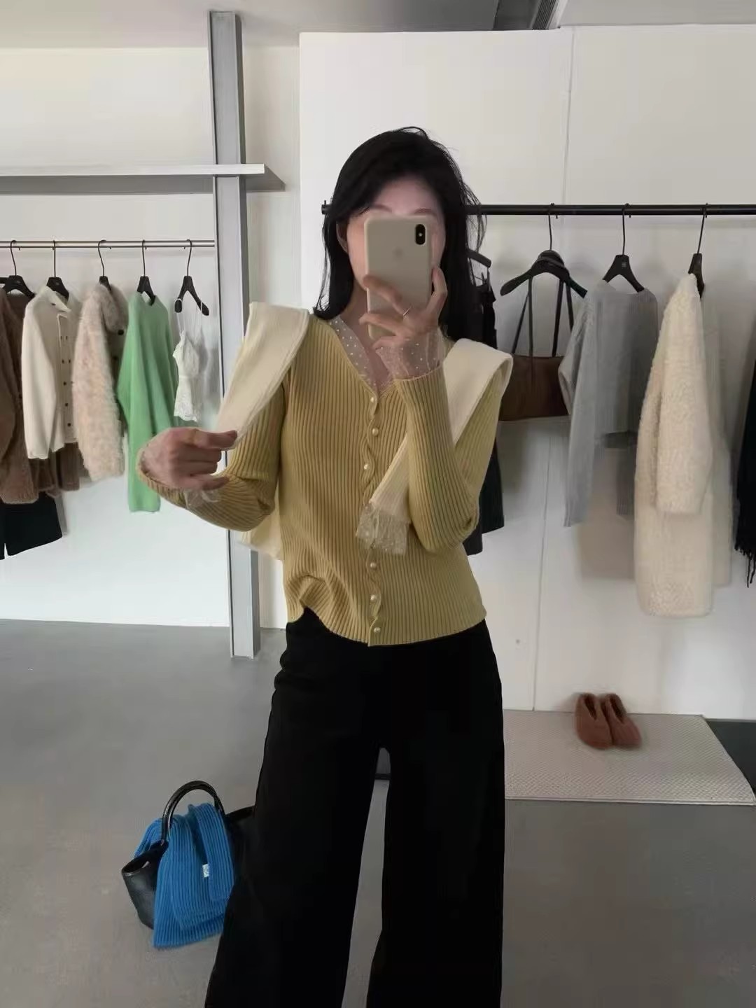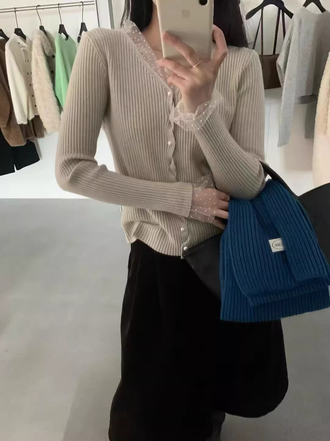 2026 슈퍼 화재 열린 봄 착용 가져 가라. 전체 집합 고유 한 아름다운 자이언트 잘 생긴 스택 착용 파란색 맨위 3종 세트 바지 여성