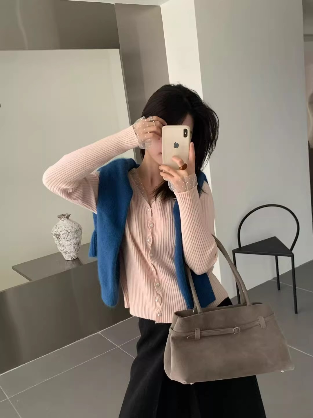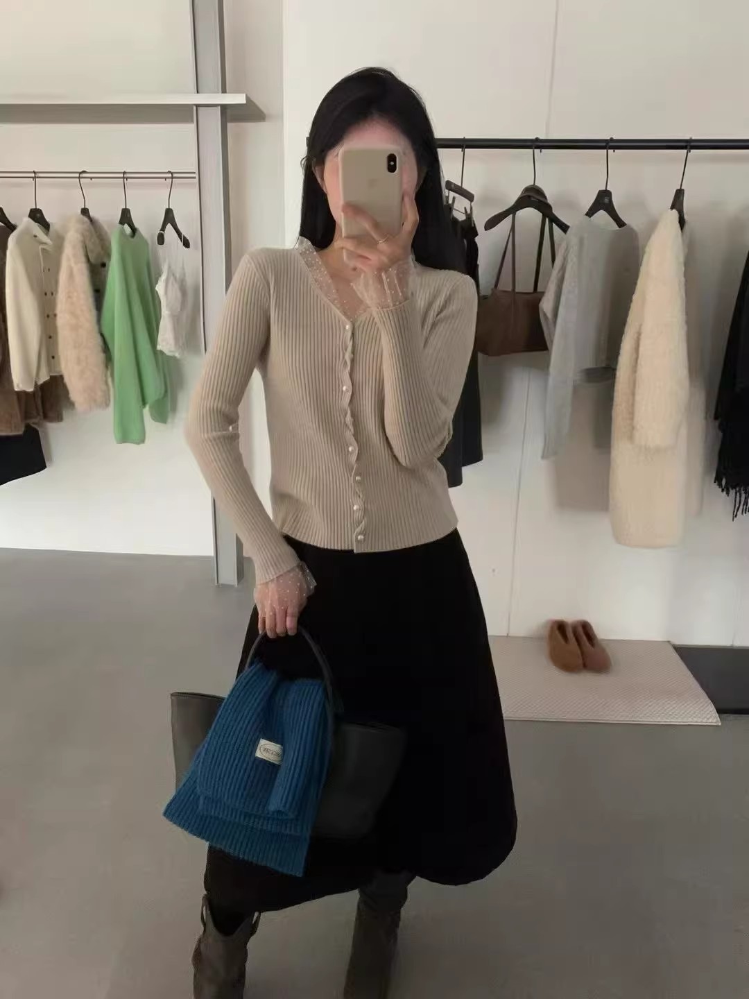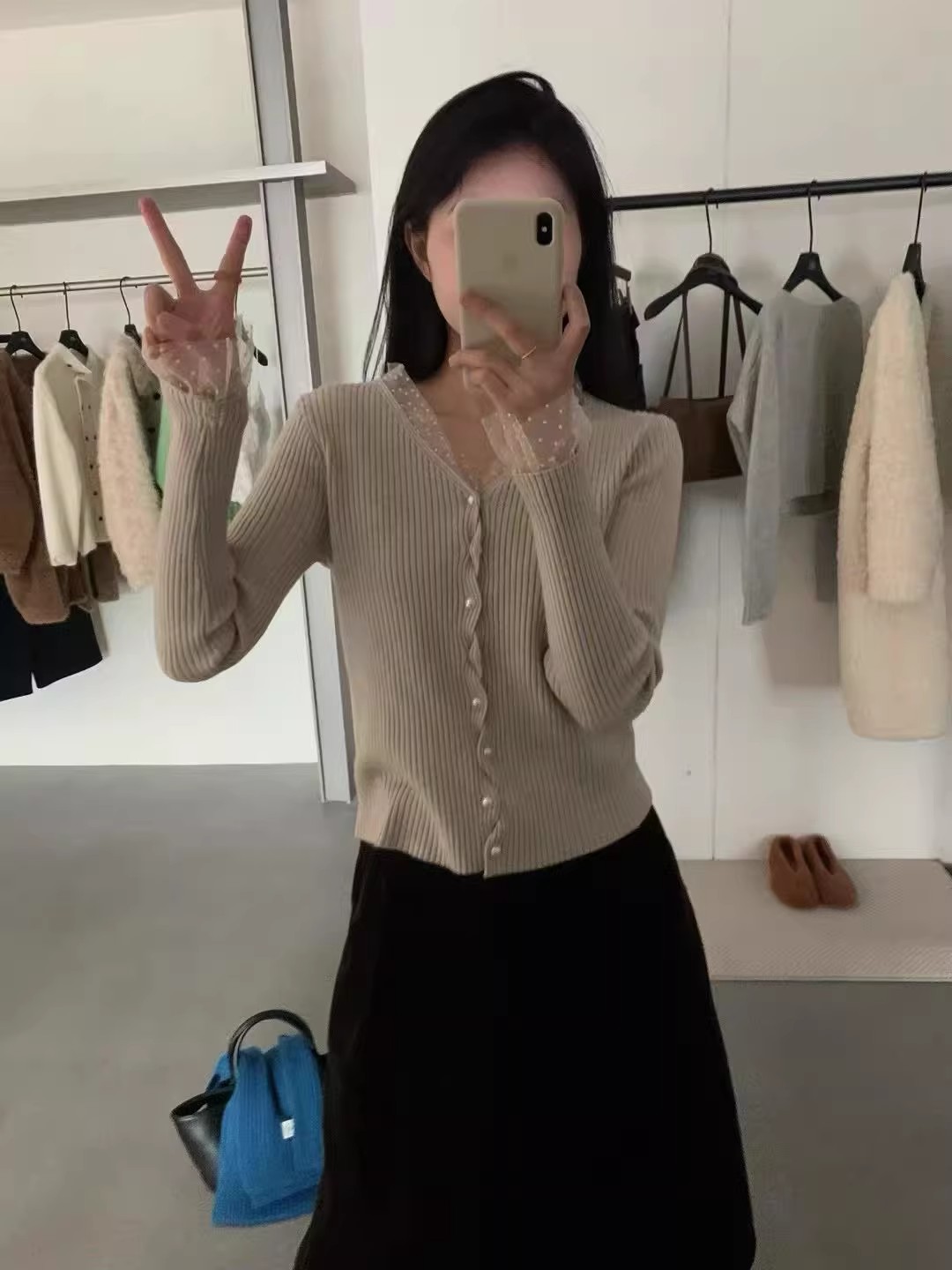 2026 슈퍼 화재 열린 봄 착용 가져 가라. 전체 집합 고유 한 아름다운 자이언트 잘 생긴 스택 착용 파란색 맨위 3종 세트 바지 여성