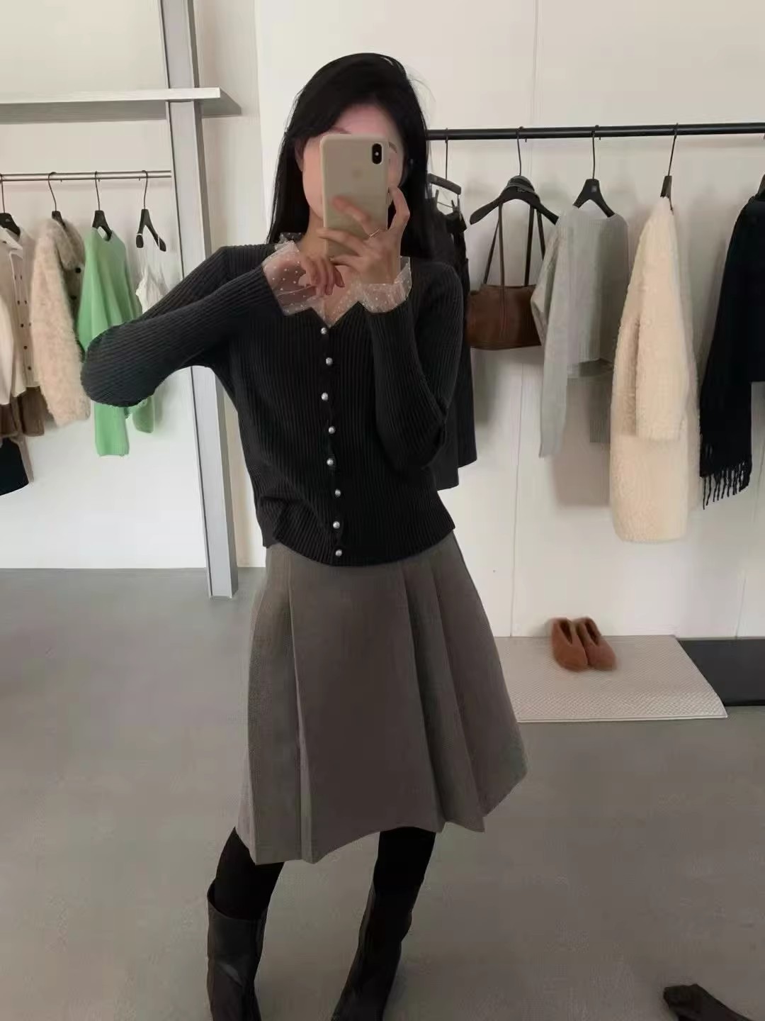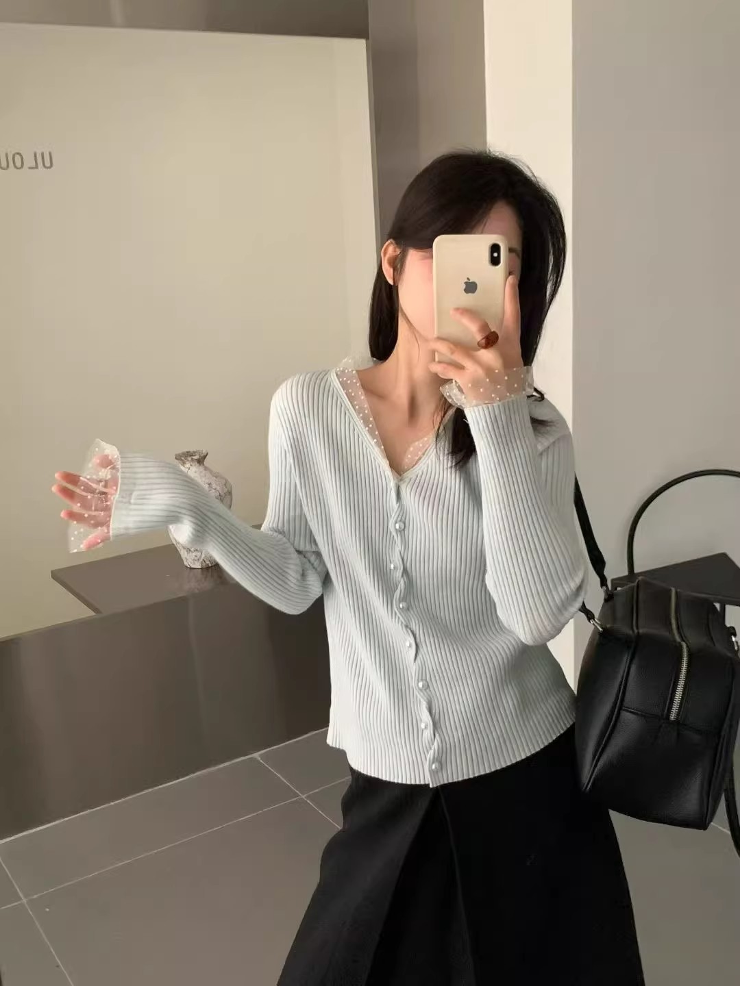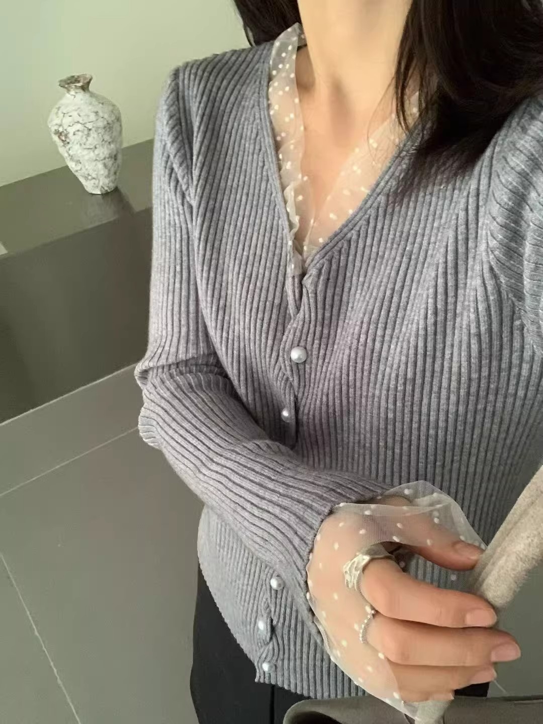 한 부서 라운드 넥 망사 나팔 소매 레이스 셔츠 여성 2026 겨울 새로운 몸매 가꾸기 슬림해 보이는 맨위