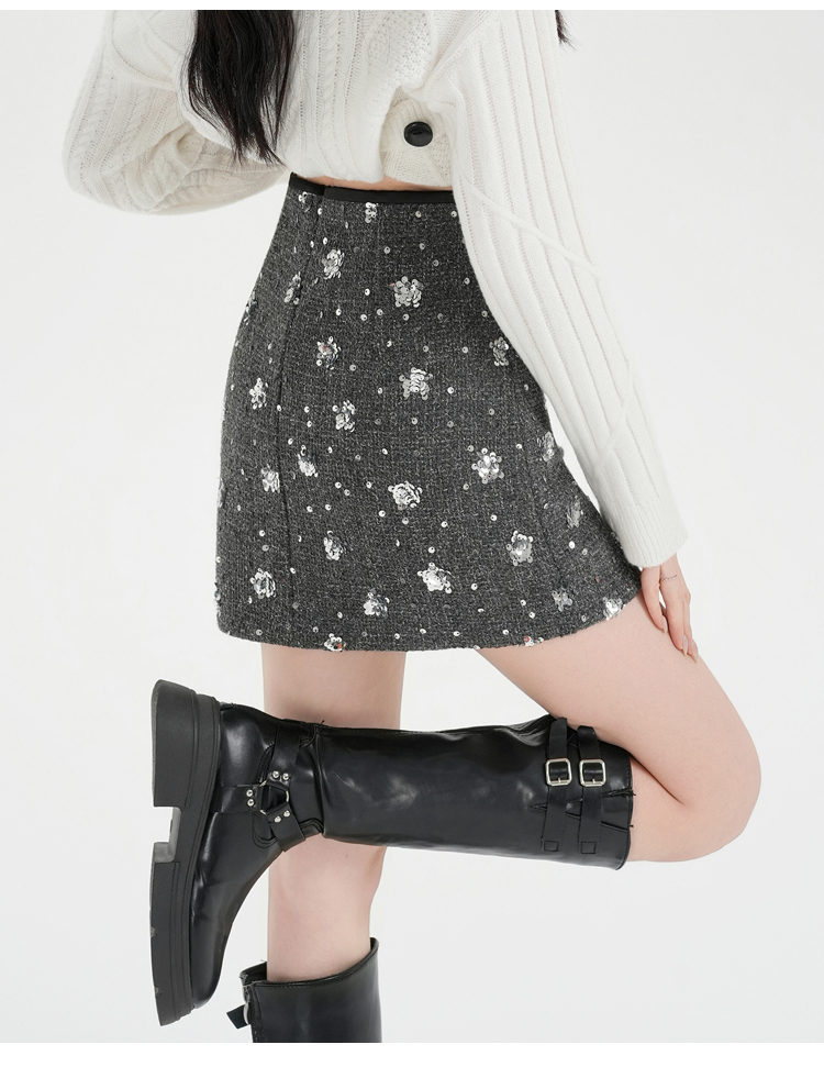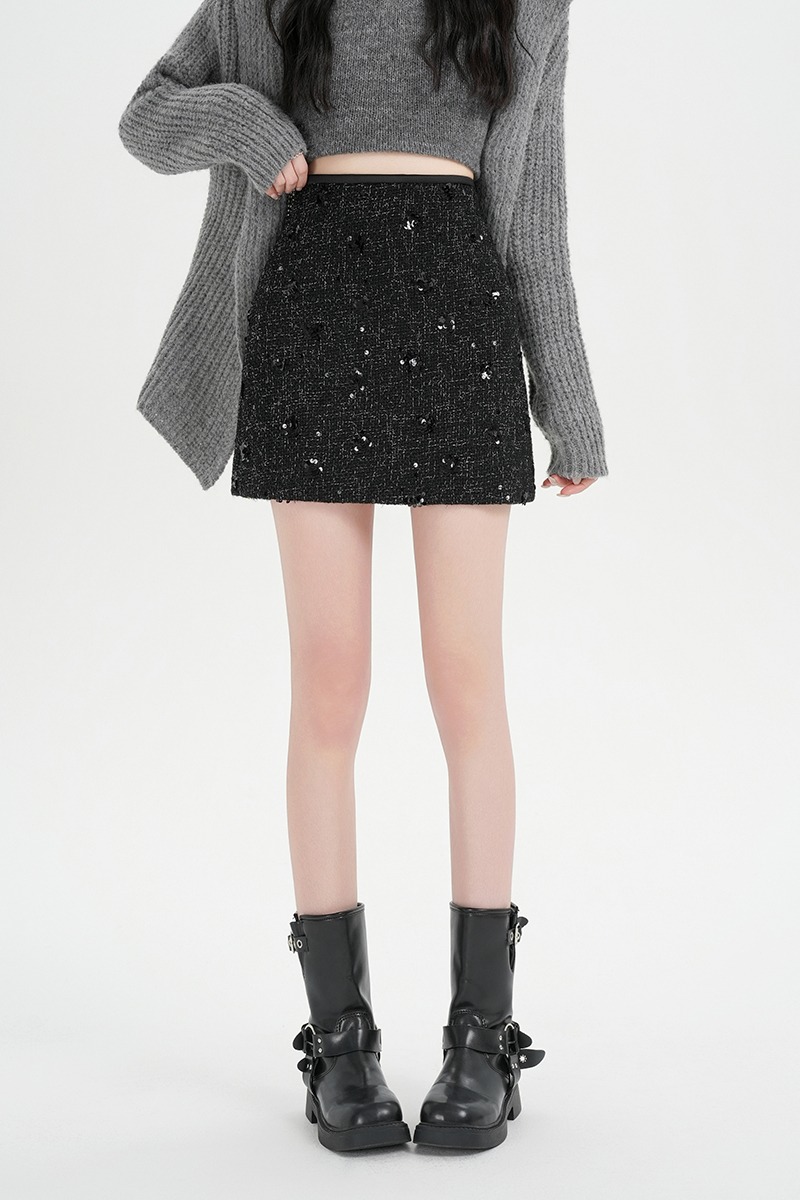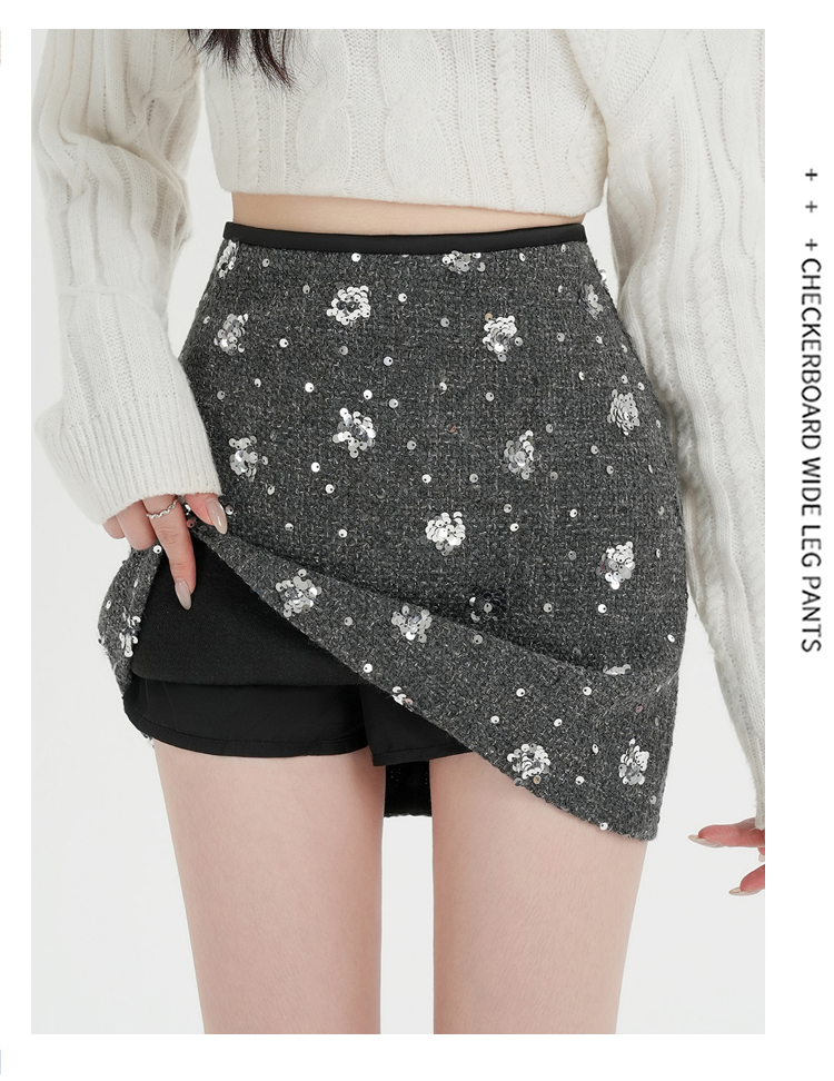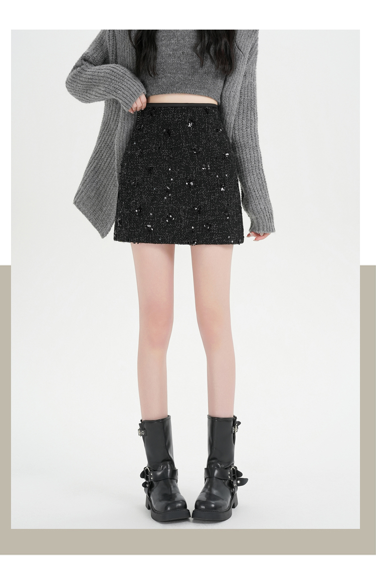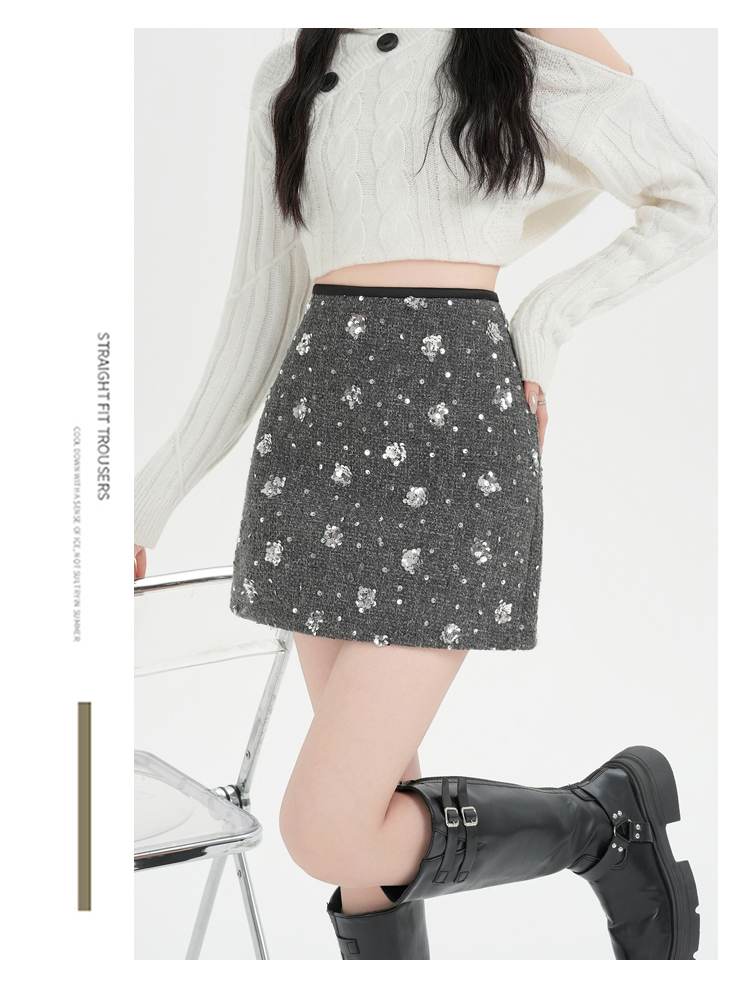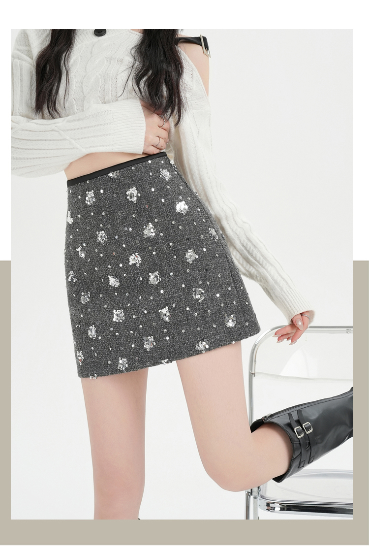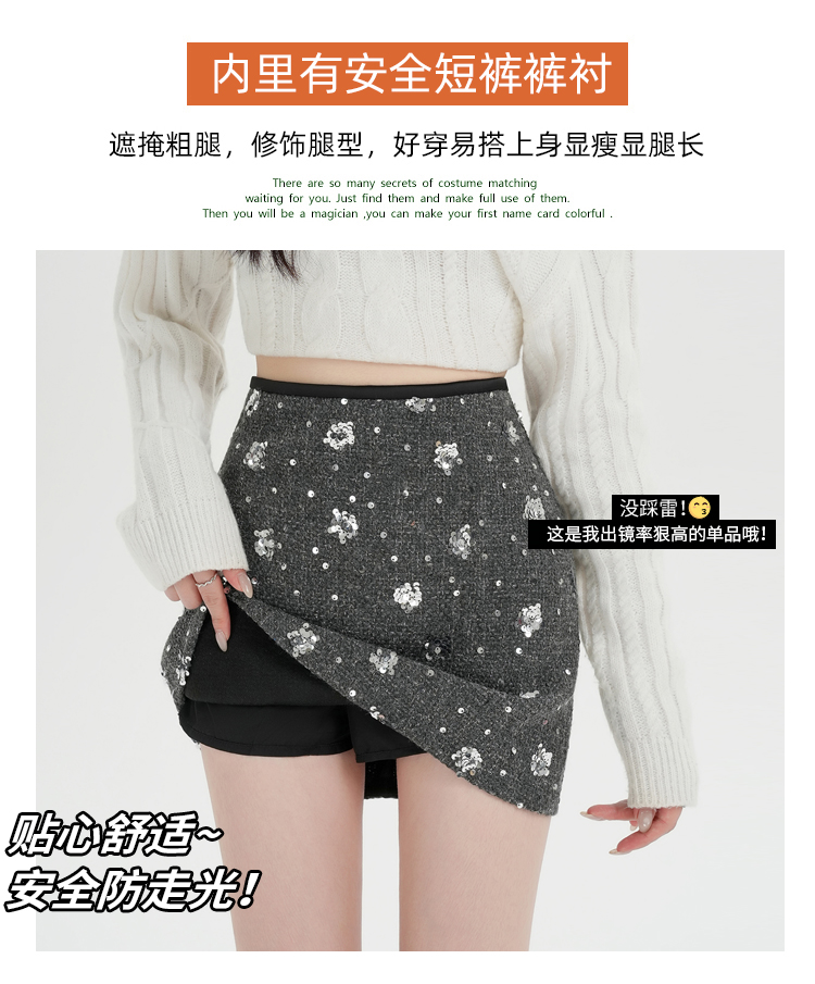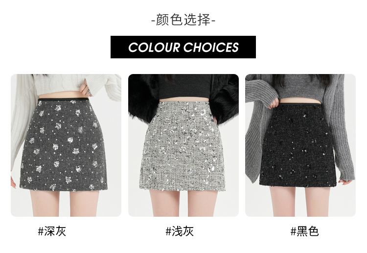 실사 신년 착용 가져 가라. 스팽글 모직 반신 스커트 여성 겨울 새로운 품격 하이웨이스트 타이트 스커트 한 마디 미니 스커트 트렌디