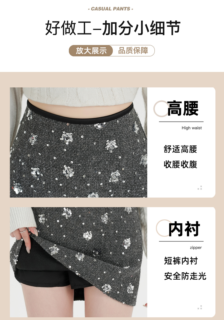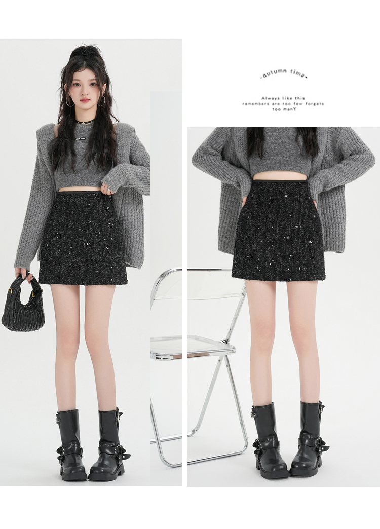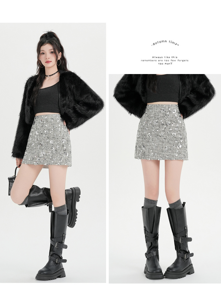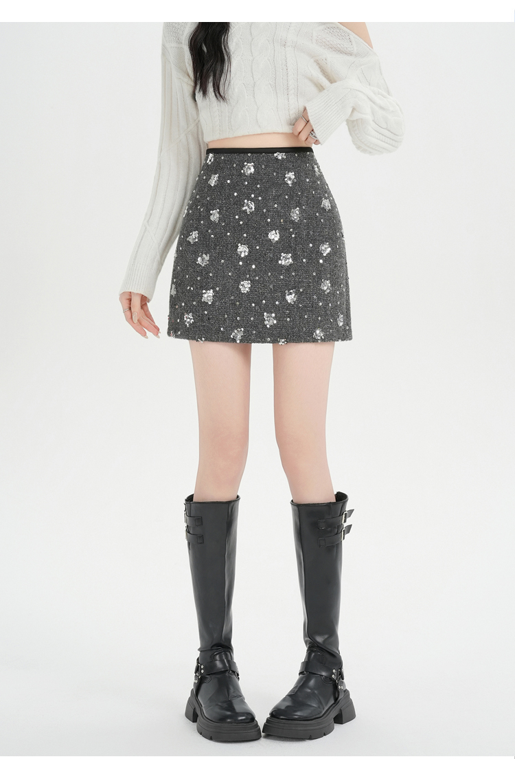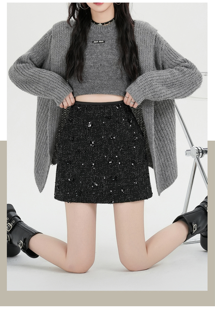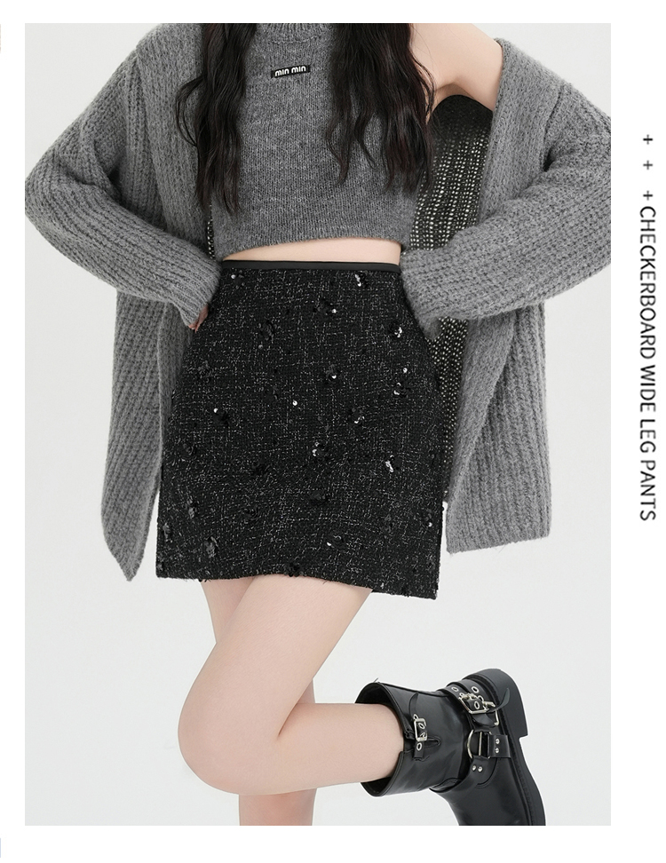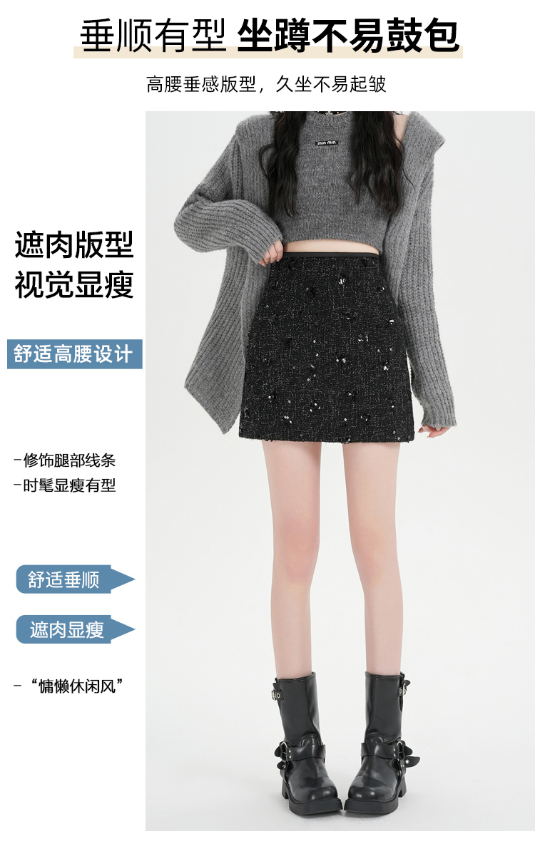 실사 신년 착용 가져 가라. 스팽글 모직 반신 스커트 여성 겨울 새로운 품격 하이웨이스트 타이트 스커트 한 마디 미니 스커트 트렌디