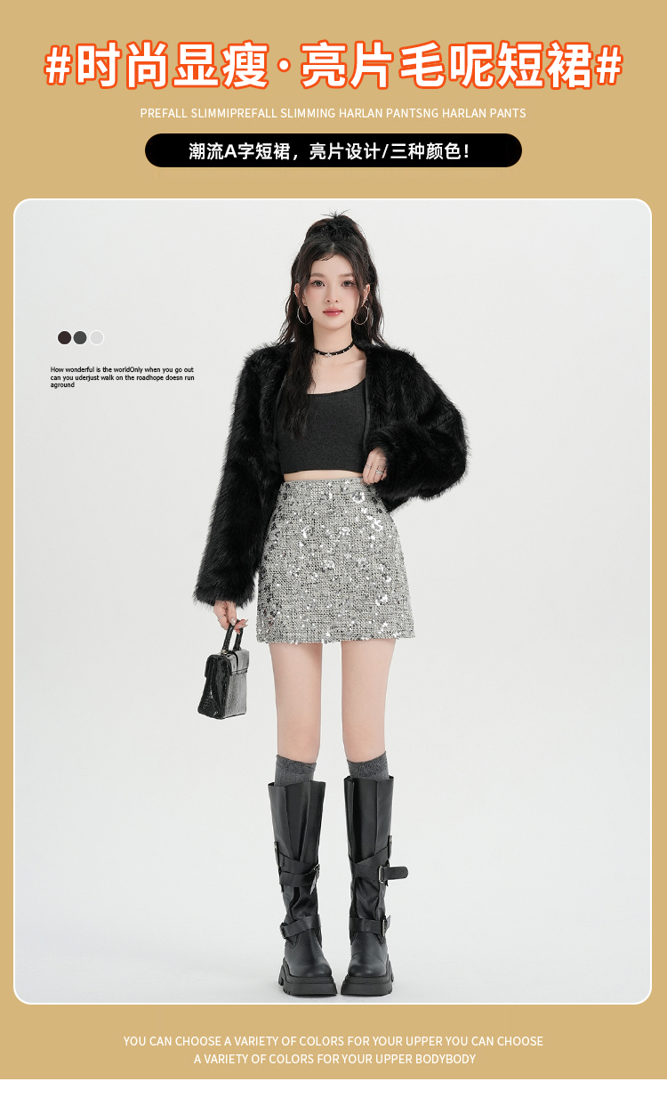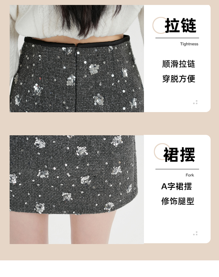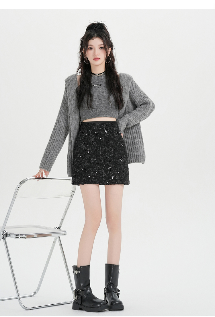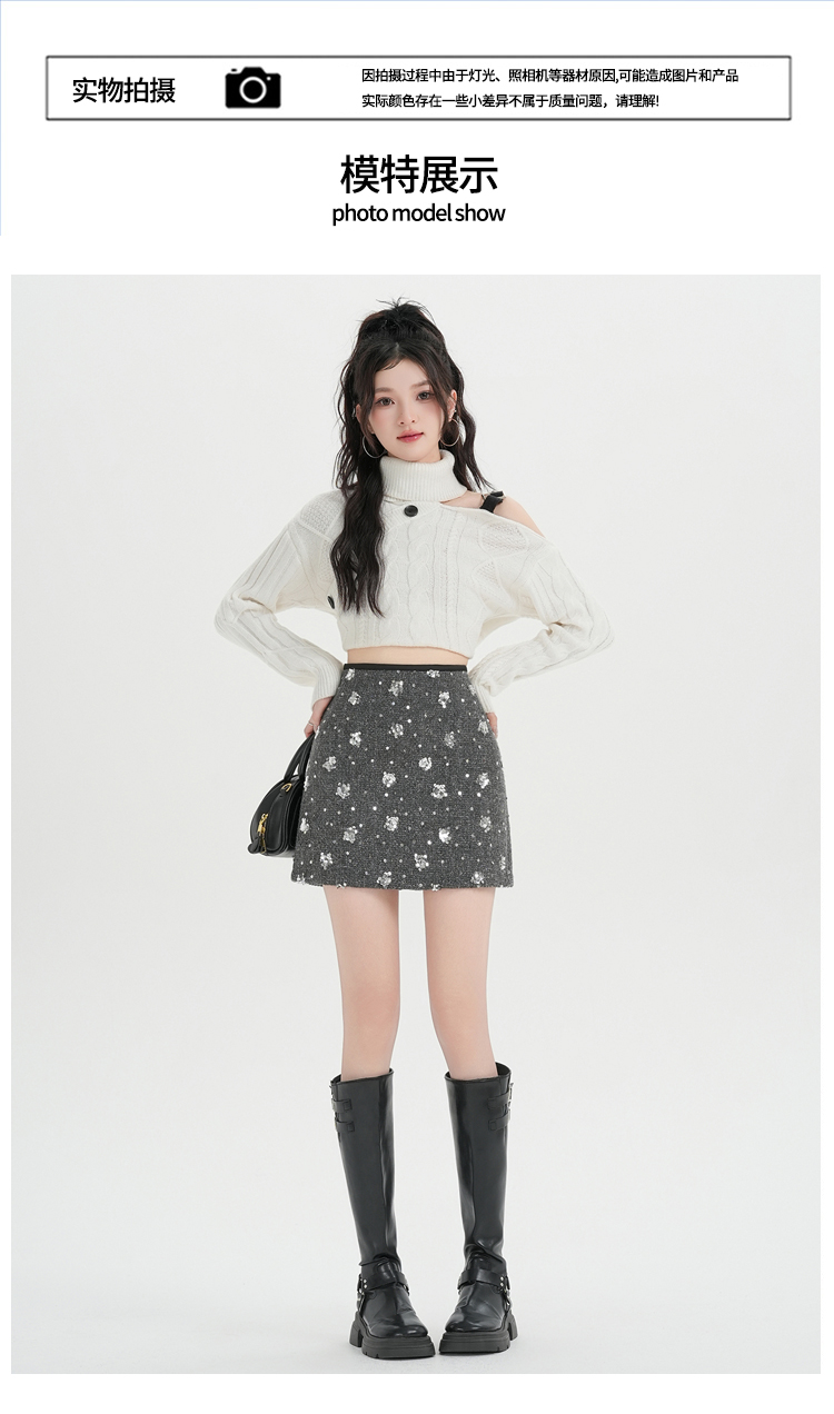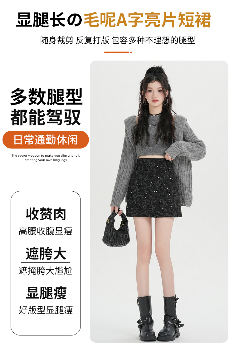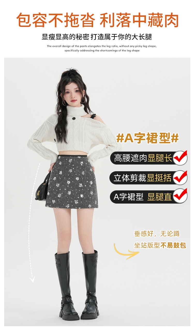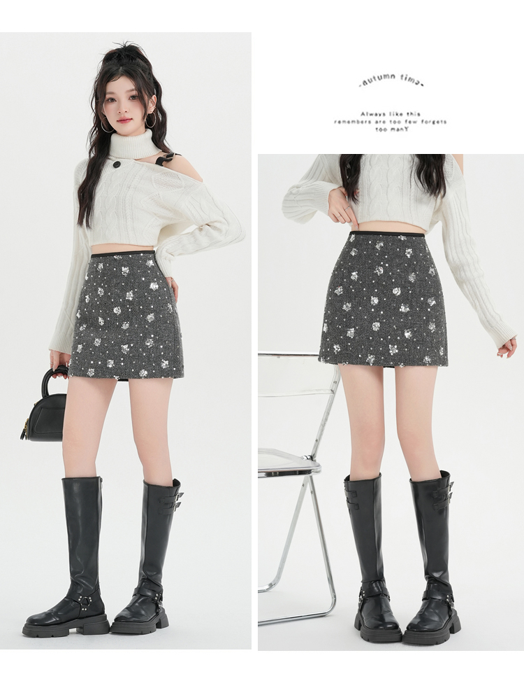 실사 신년 착용 가져 가라. 스팽글 모직 반신 스커트 여성 겨울 새로운 품격 하이웨이스트 타이트 스커트 한 마디 미니 스커트 트렌디