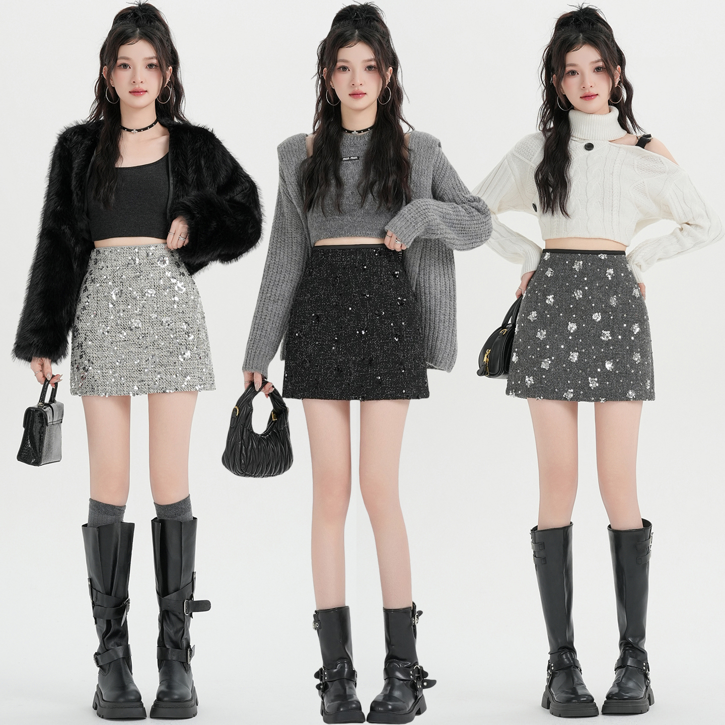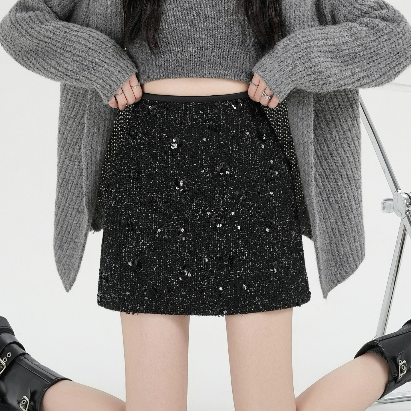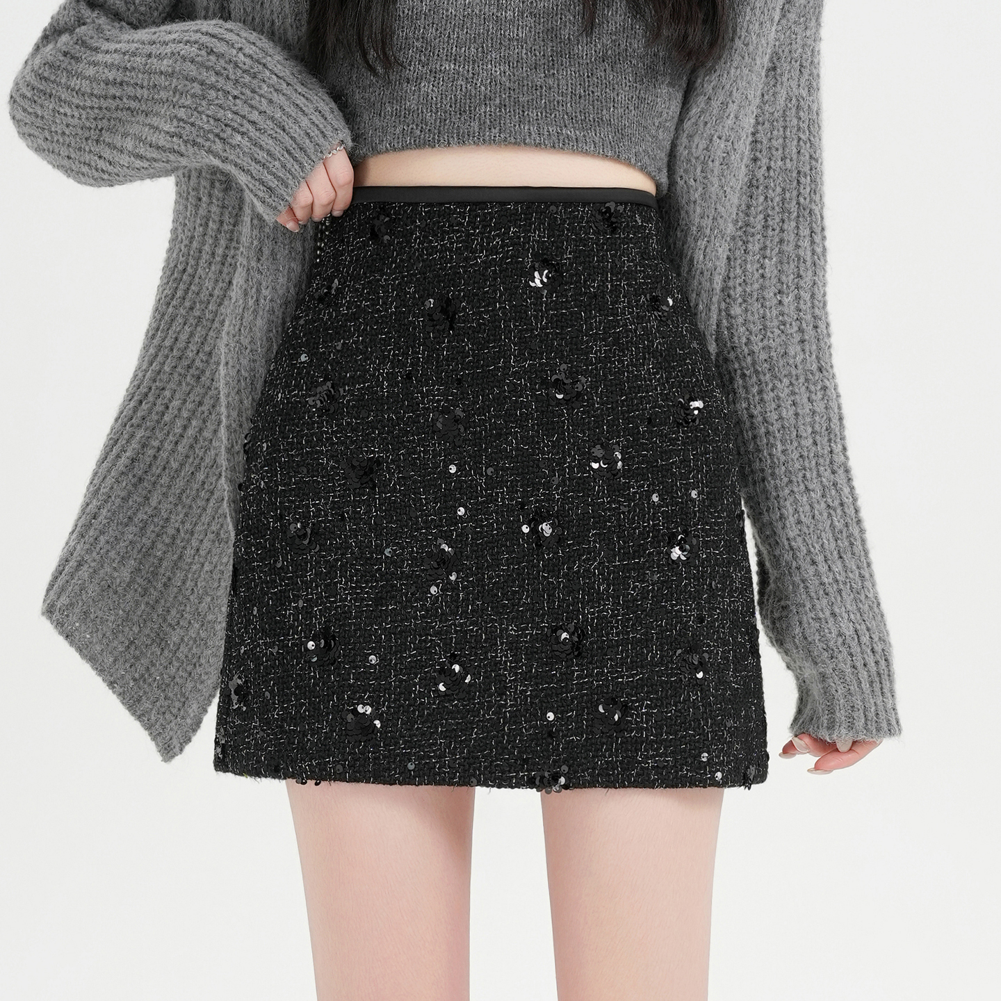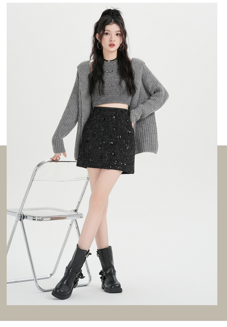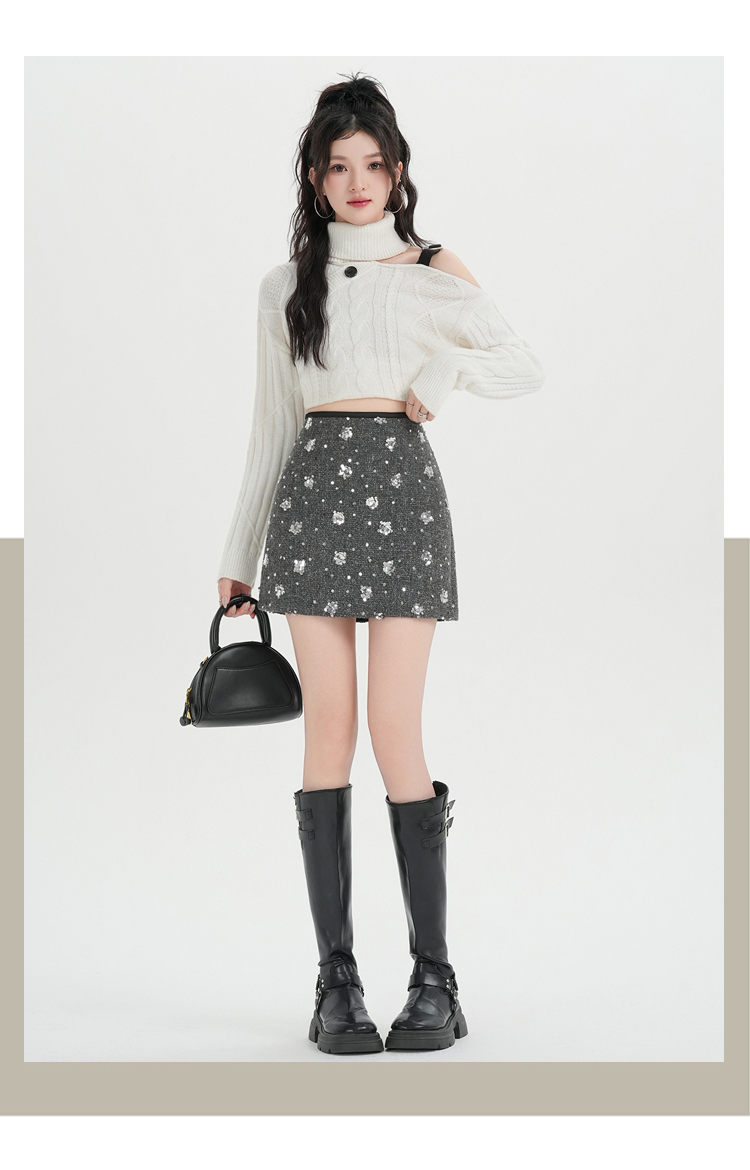 실사 신년 착용 가져 가라. 스팽글 모직 반신 스커트 여성 겨울 새로운 품격 하이웨이스트 타이트 스커트 한 마디 미니 스커트 트렌디