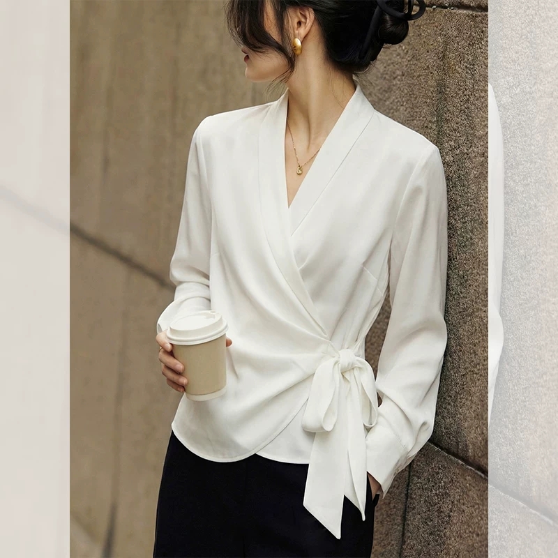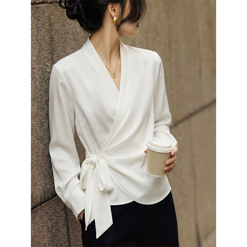 화이트 여성 셔츠 조기 봄 2026 새로운 오픈 가디건 경력 셔츠 캐주얼 루즈핏 다용도 폴로 칼라 긴팔 맨위