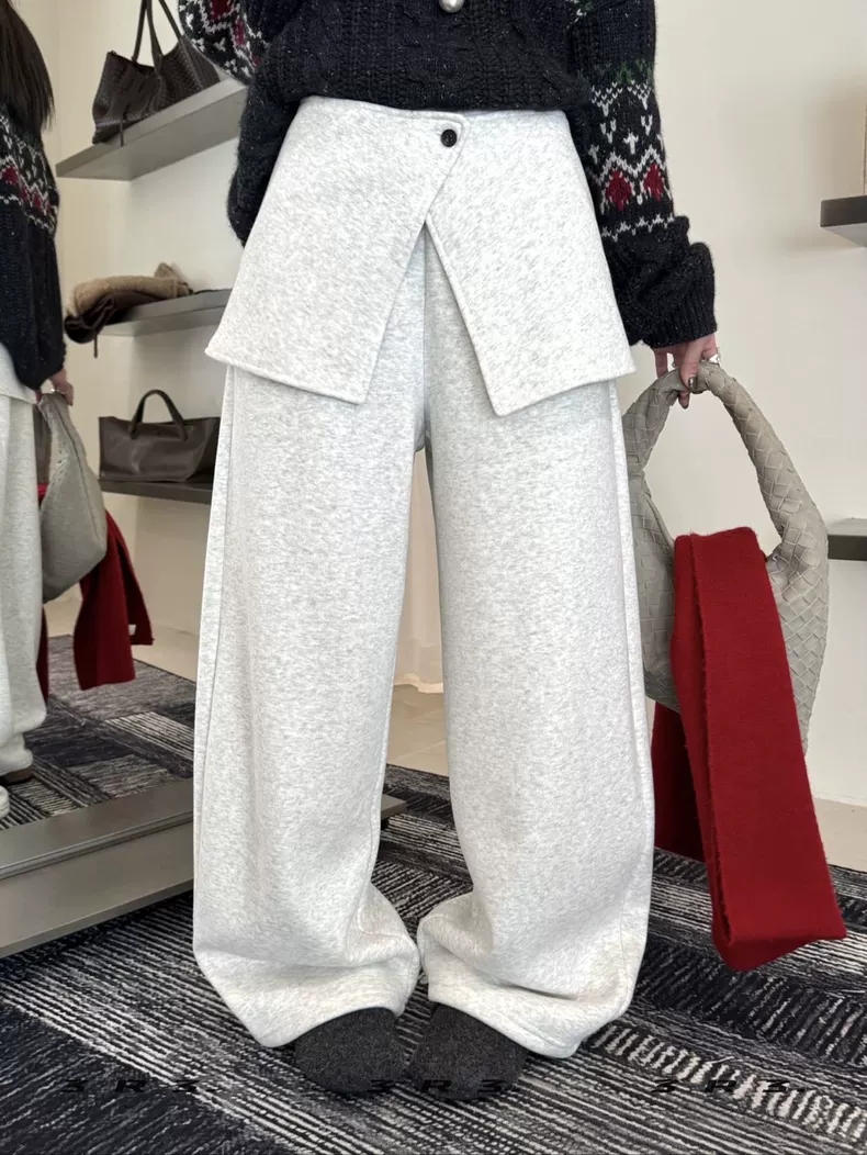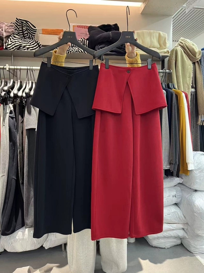 한 싱글 새로운 2026 새로운 패션 사실 투피스 세트 넓은 다리 조거 둘 착용 캐주얼 모통이 칼 바지
