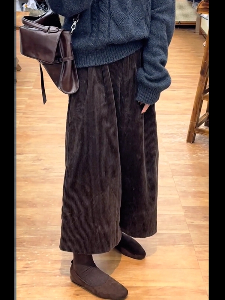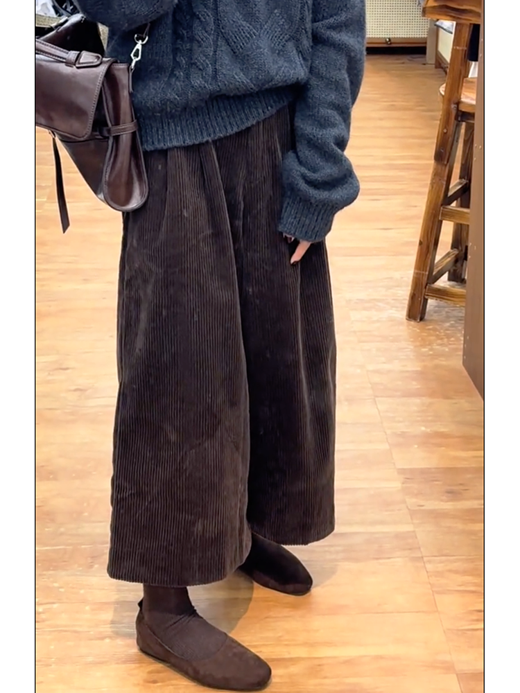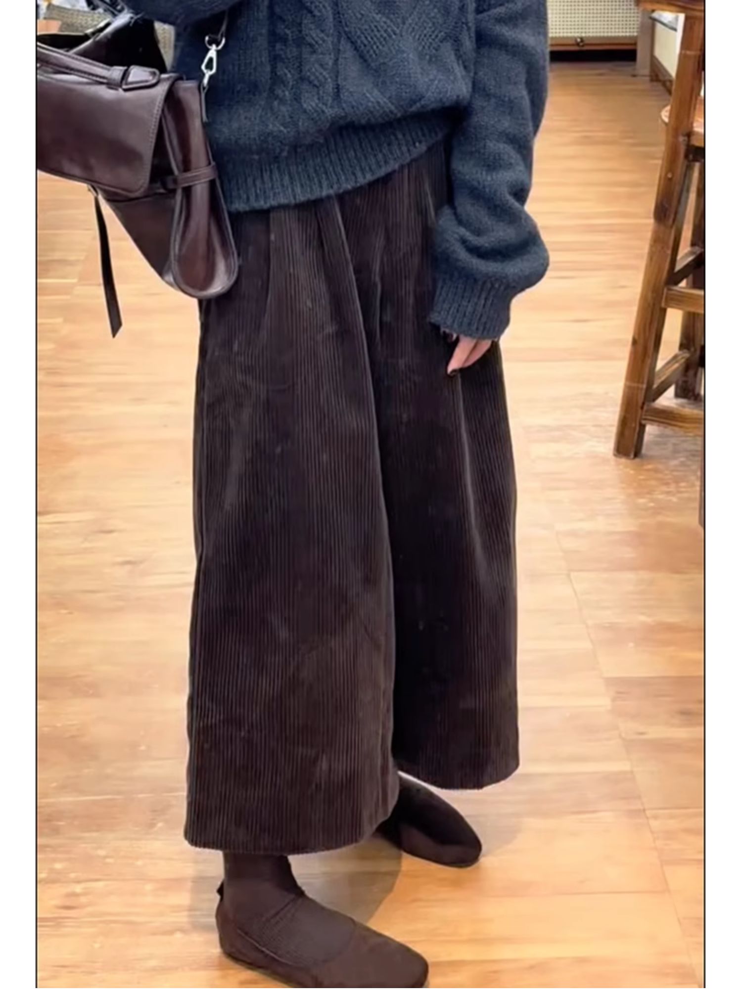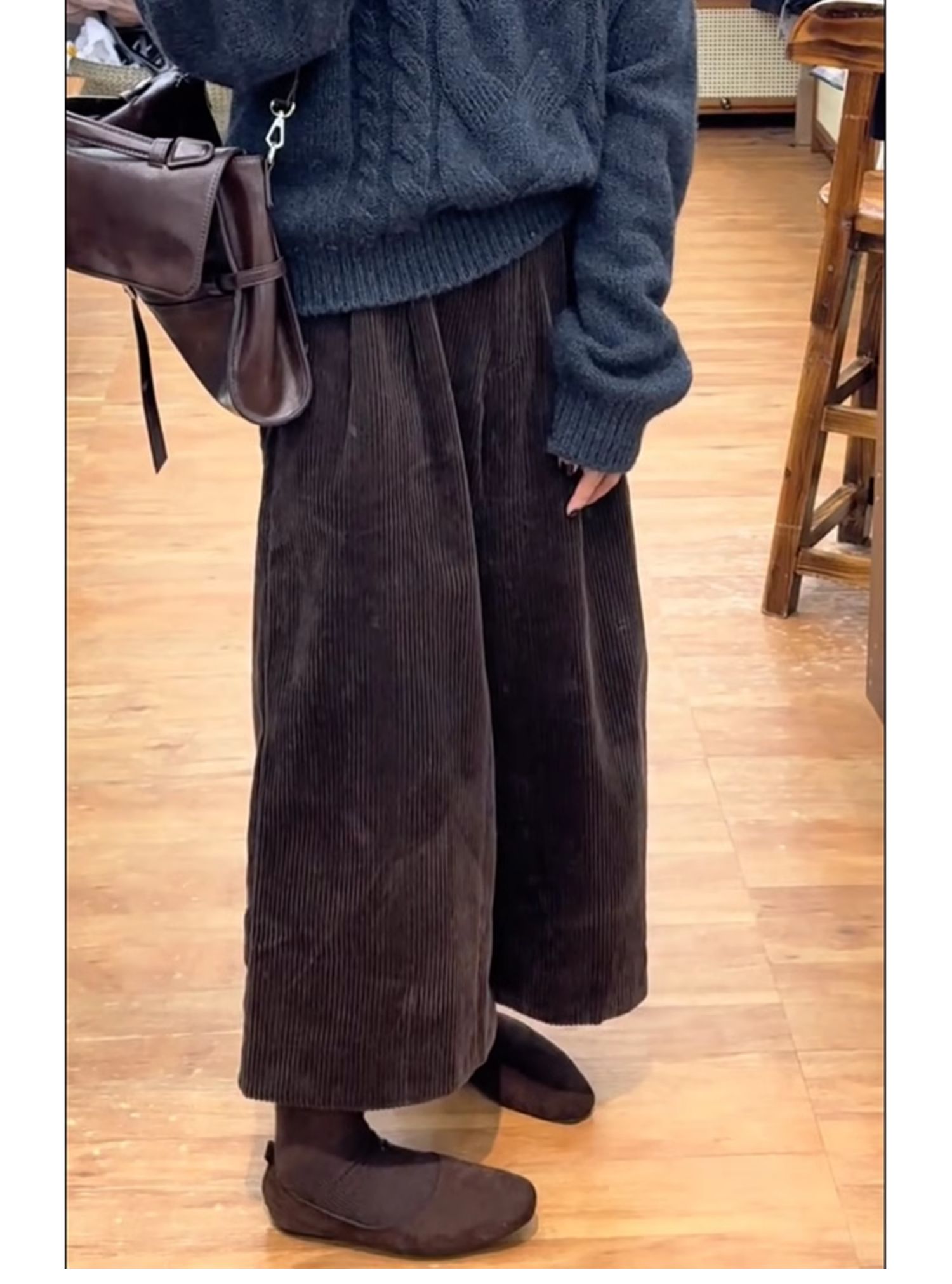 이른 봄 레트로 품격 느긋한 느슨함 센스 코듀로이 와이드 레그 팬츠 패션 미니멀리즘 다용도 표지 고기 캐주얼 바지