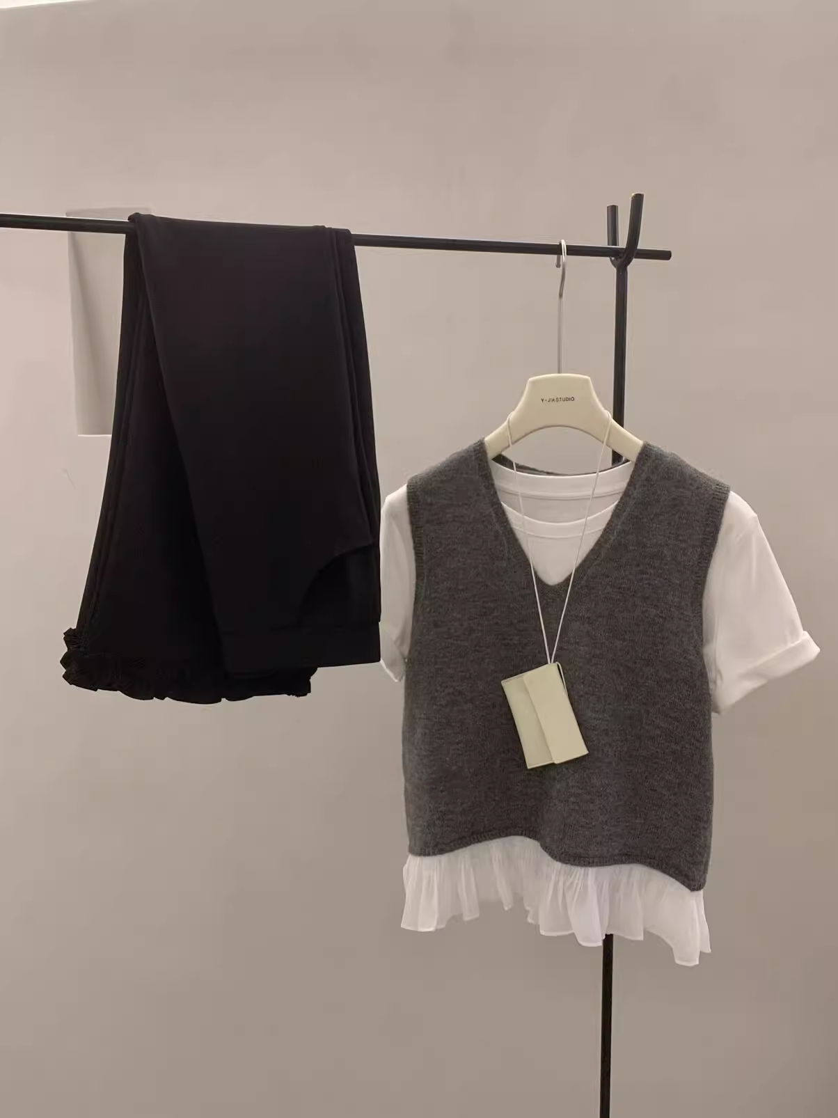 정가 있음 보호 나비 매듭 홀로우 아웃 니트 조끼 여성 여름 디자인 센스 연령 감소 다용도 품격 쇼트 스타일 맨위