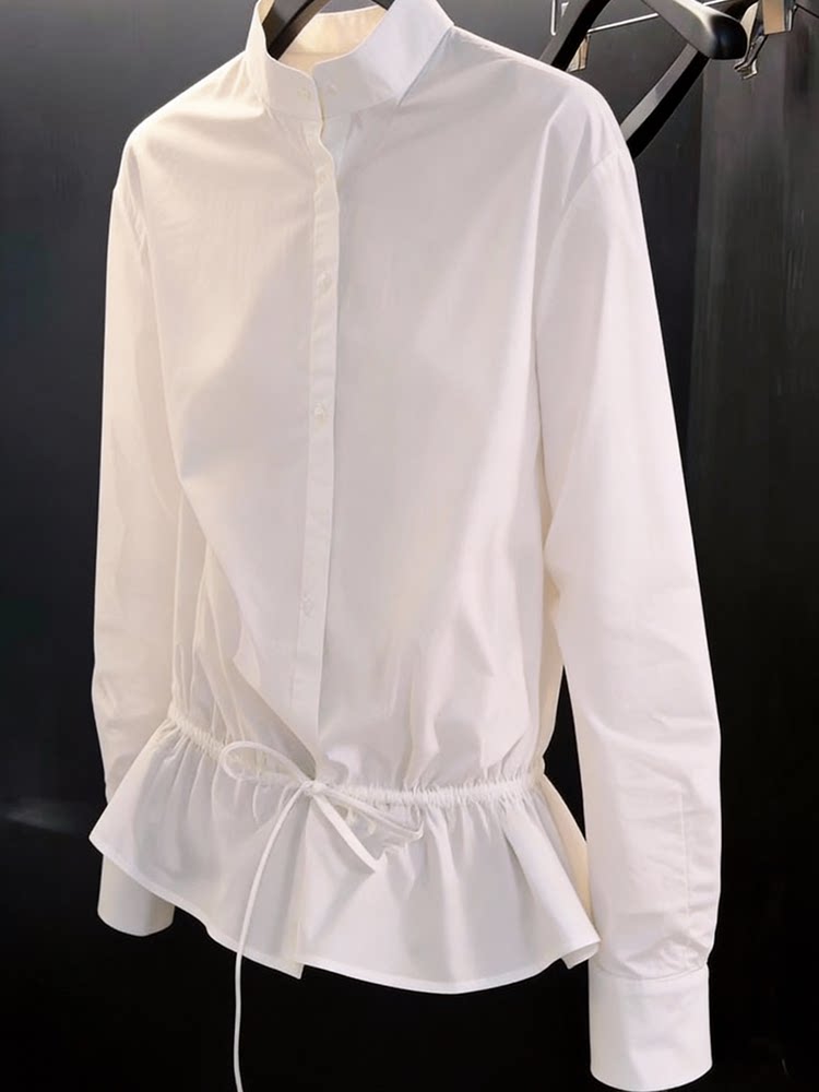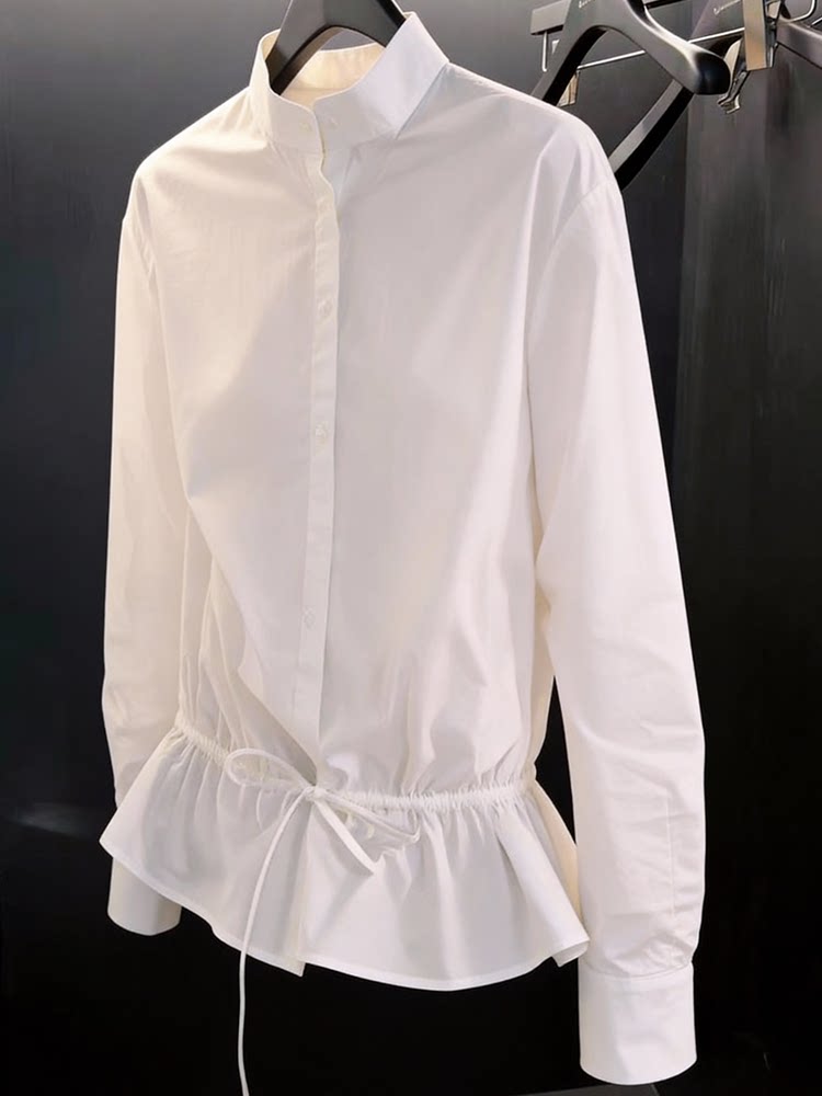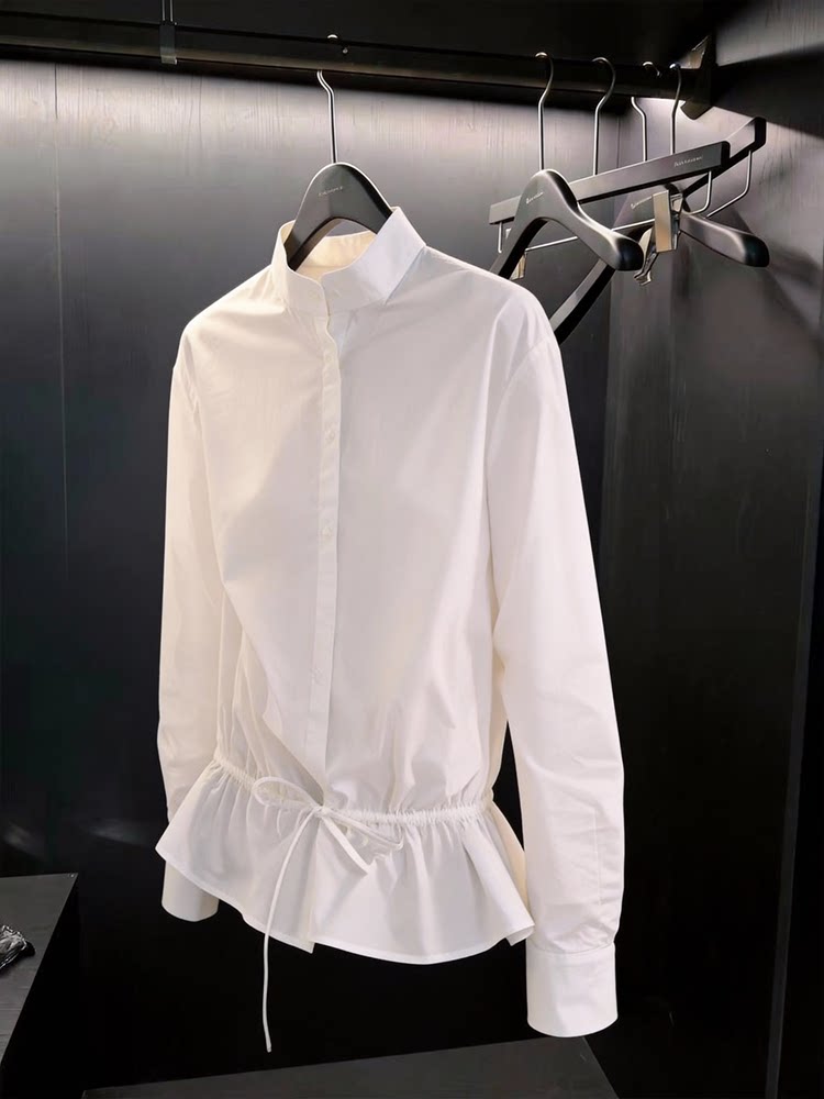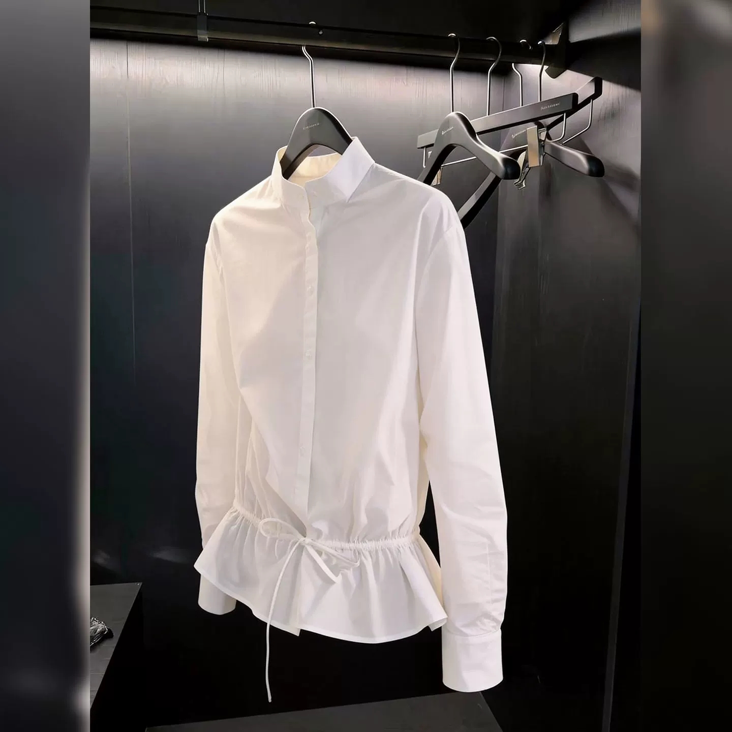 프랑스식 V넥 레이스업 허리 수축 셔츠 여성 긴 소매 화이트 고급 센스 슬림해 보이는 품격 다용도 출퇴근 연령 감소 맨위
